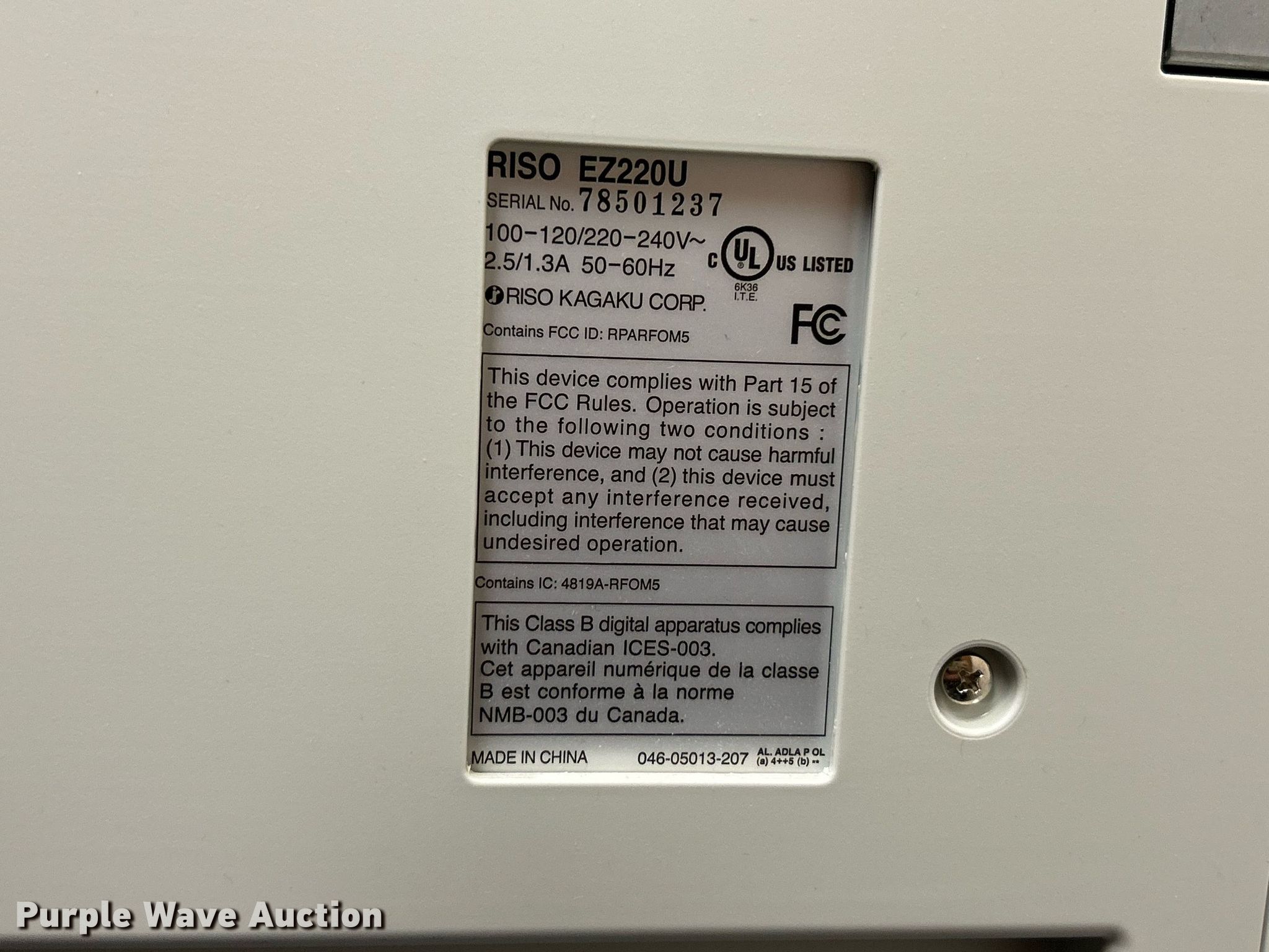 Office equipment. (2) copiers Ricoh, HP, Non-operational units, (2) cameras Kodak Printer, Canon, Unknown operating conditions, Riso EZ 220 U risograph, Insignia NS-LCD32 TV and more. Franklin County, MO. 400 E Locust St, Room 209. Union, MO 63084