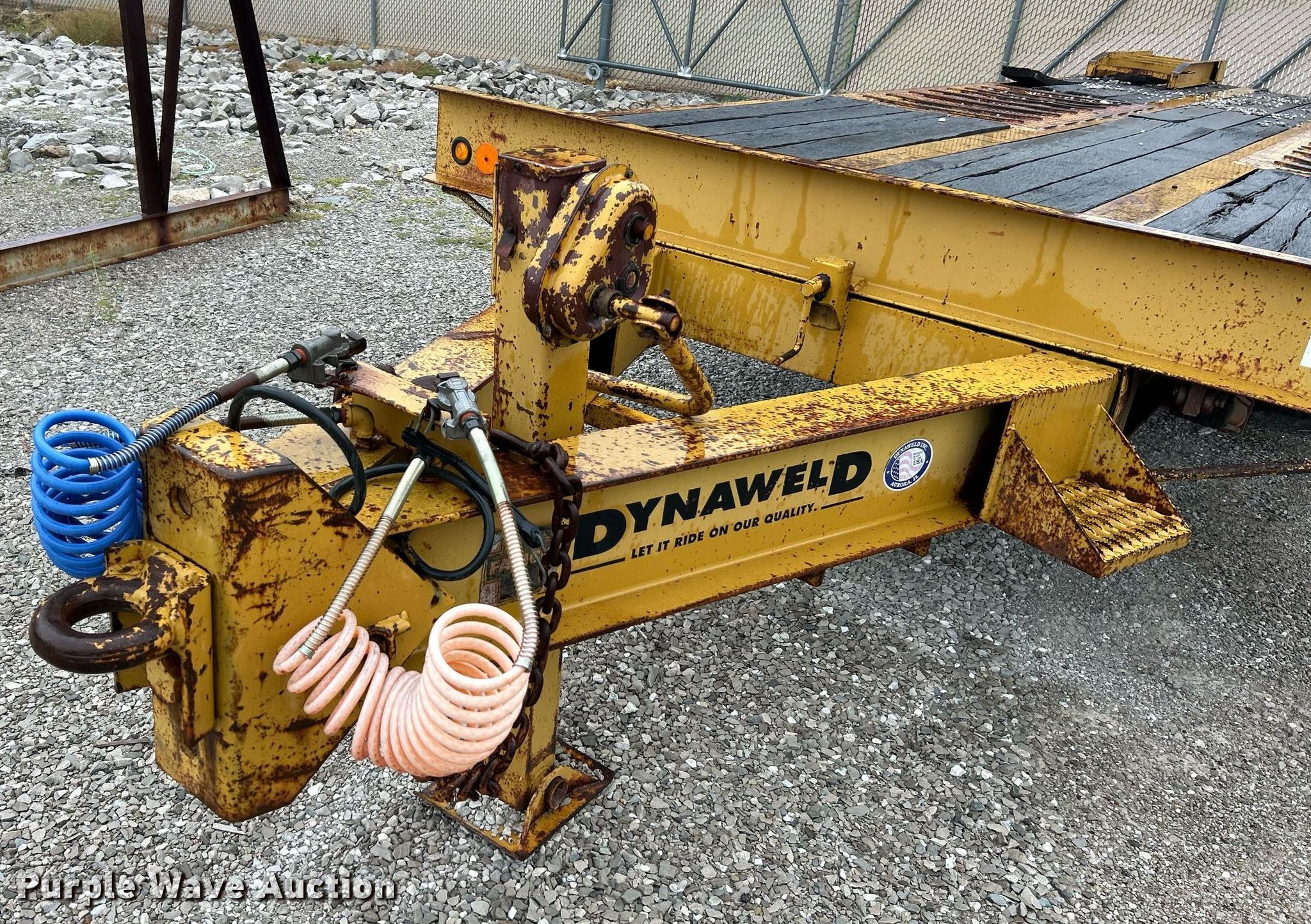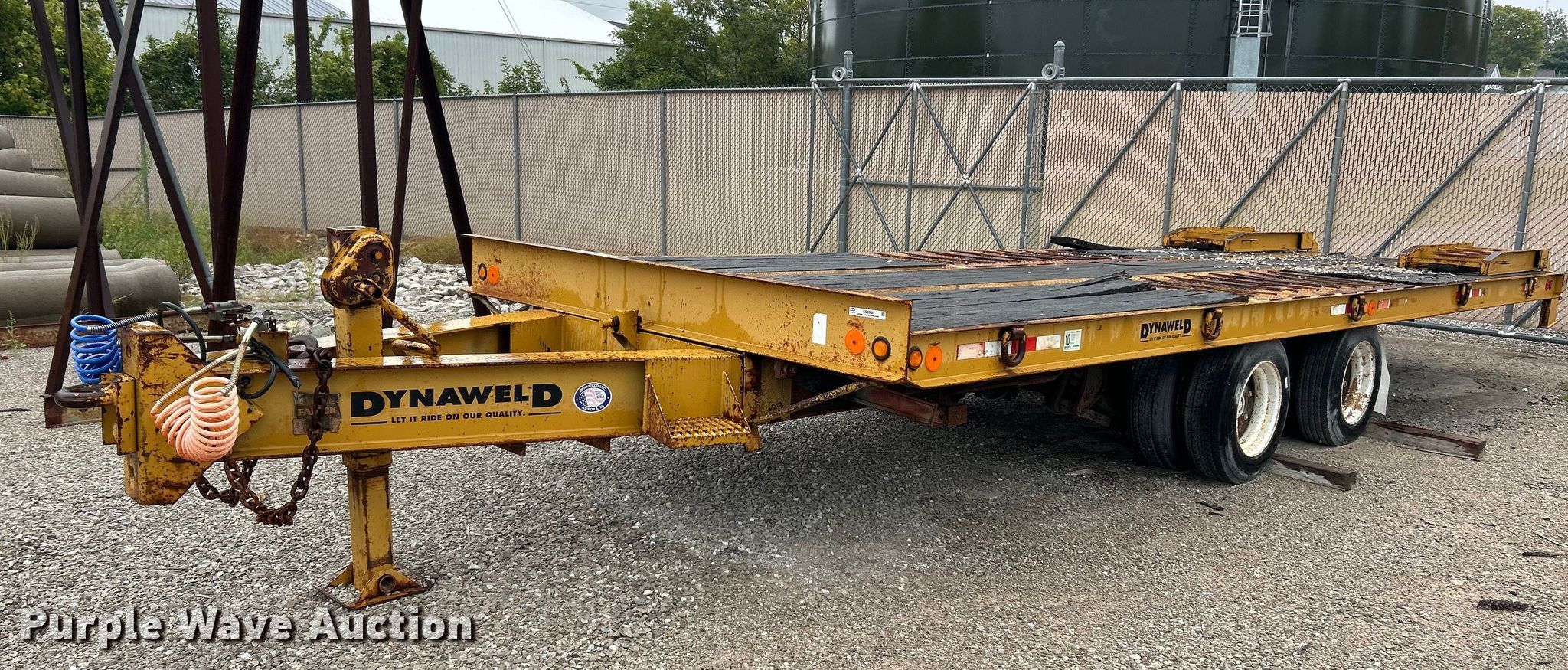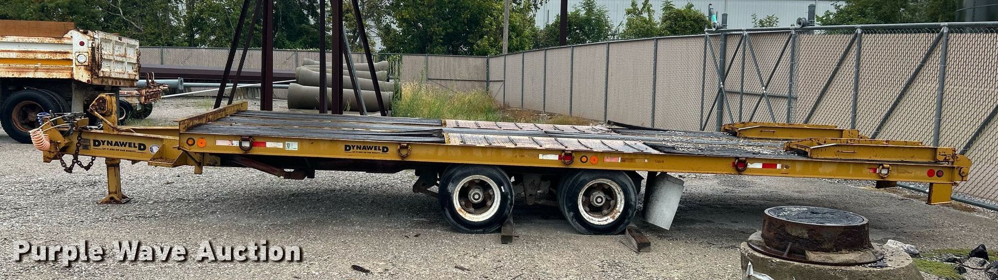1996 Dynaweld tilt deck equipment trailer. VIN: 4U181AEX5T1X33118. Dimensions Overall: 31' 6" L x 102" W, Deck: 25' L x 102" W, Ramps: Manual Length: 5'. Features Deck type: Wood. Chassis Hitch: Pintle, Landing gear: Single, Suspension: Spring, Brakes: Air, Axles: Tandem, GVWR: 50,000 lbs, GAWR: 20,000 lbs. Tires Steel wheels, Size: 215/75R17.5. Illinois title. Title distribution may be delayed up to 14 days from verification of funds. City of Waterloo, IL. Waterloo, IL 62298