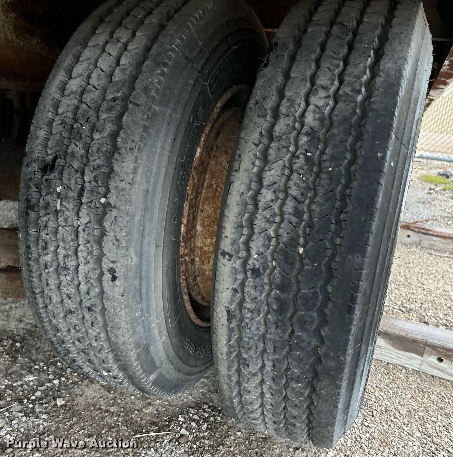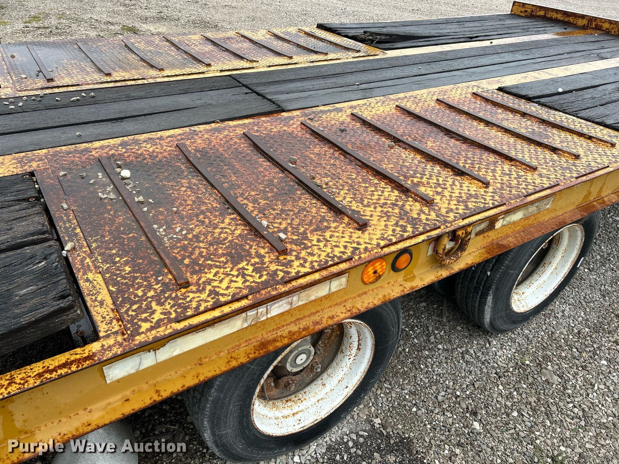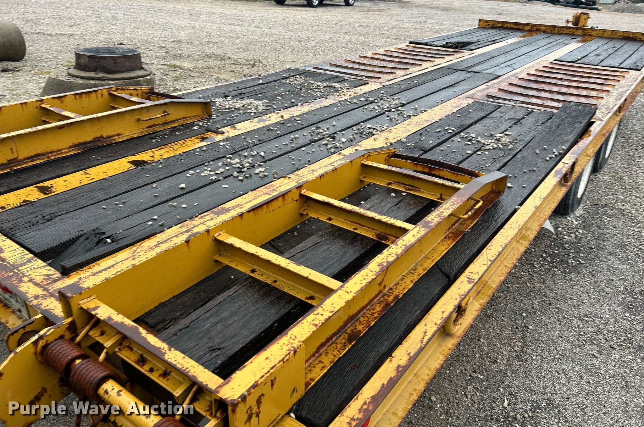 1996 Dynaweld tilt deck equipment trailer. VIN: 4U181AEX5T1X33118. Dimensions Overall: 31' 6" L x 102" W, Deck: 25' L x 102" W, Ramps: Manual Length: 5'. Features Deck type: Wood. Chassis Hitch: Pintle, Landing gear: Single, Suspension: Spring, Brakes: Air, Axles: Tandem, GVWR: 50,000 lbs, GAWR: 20,000 lbs. Tires Steel wheels, Size: 215/75R17.5. Illinois title. Title distribution may be delayed up to 14 days from verification of funds. City of Waterloo, IL. Waterloo, IL 62298