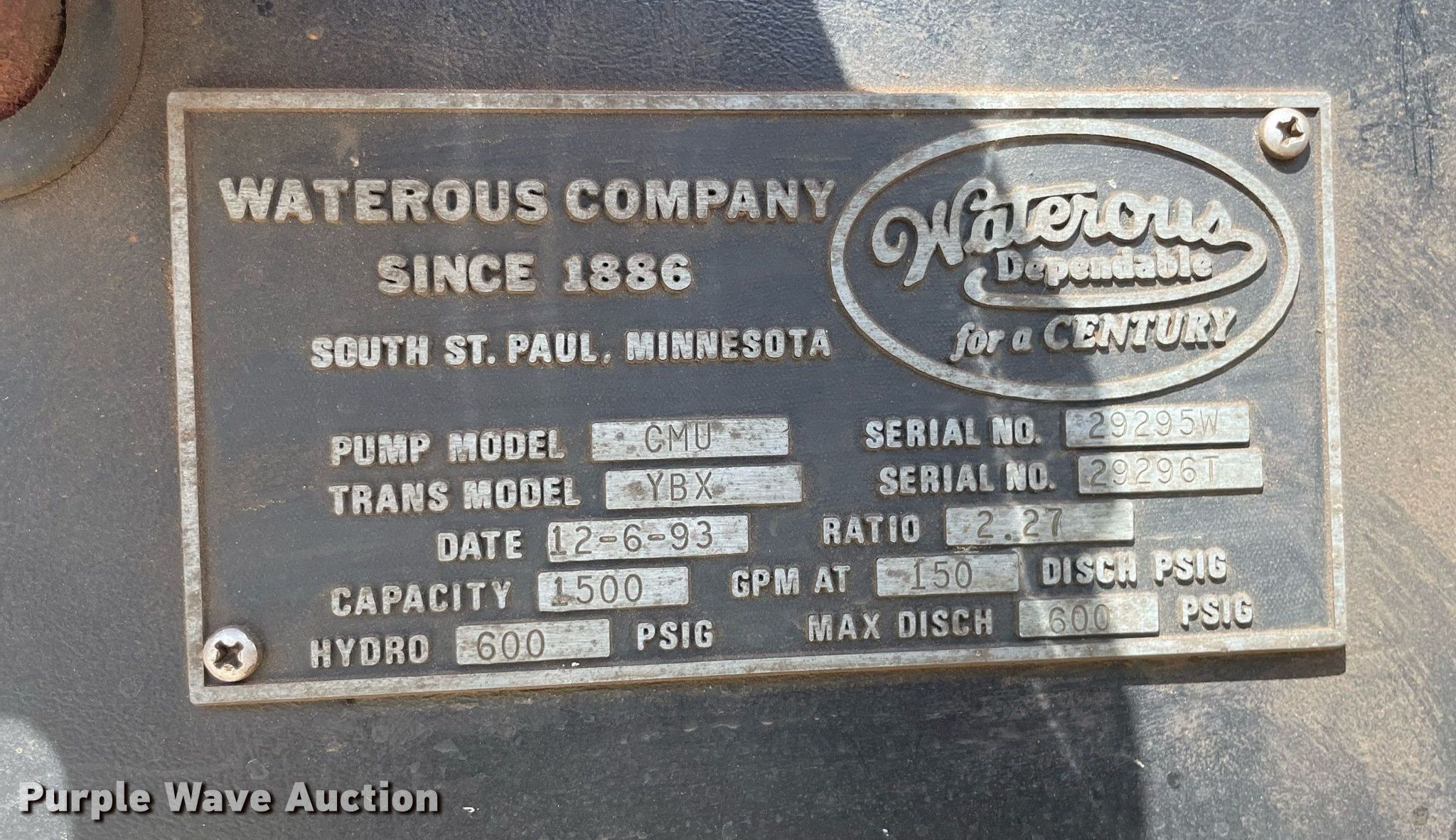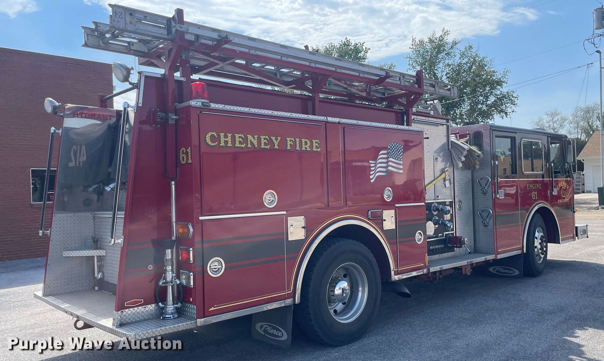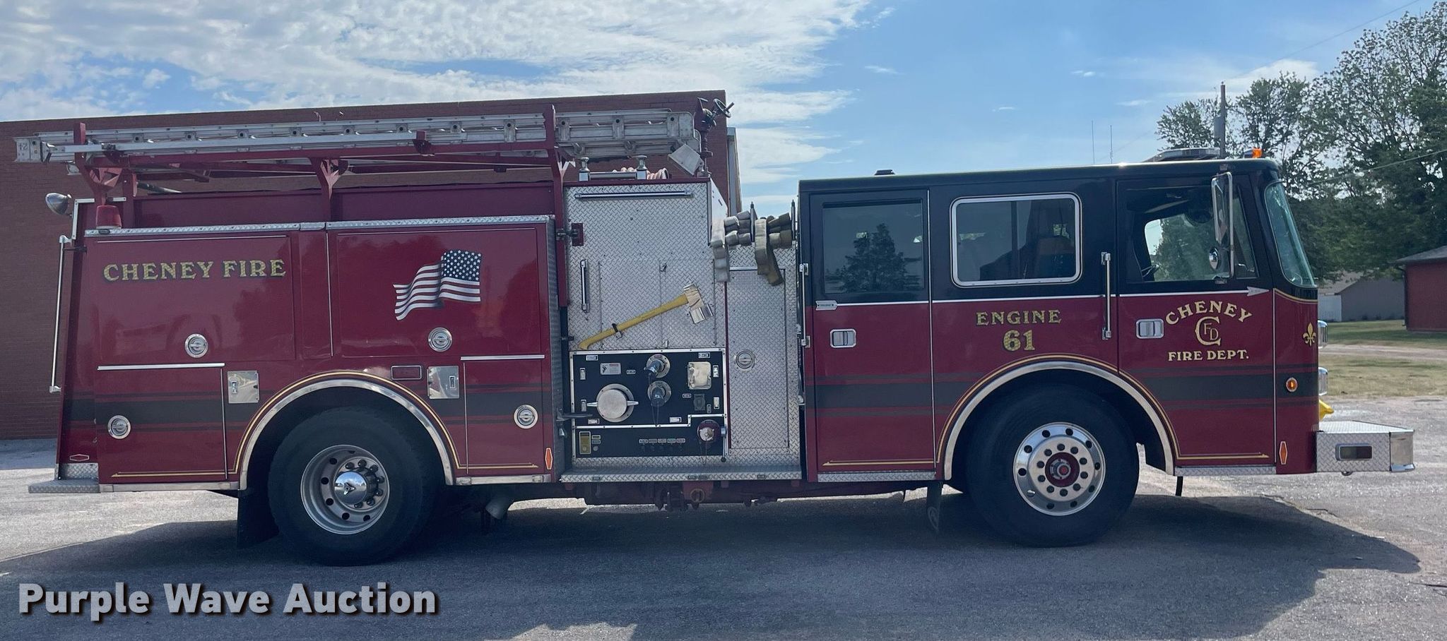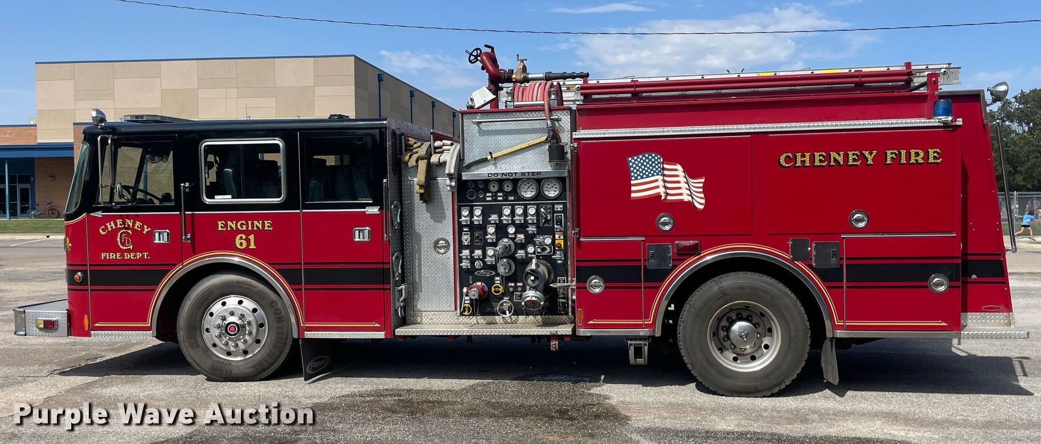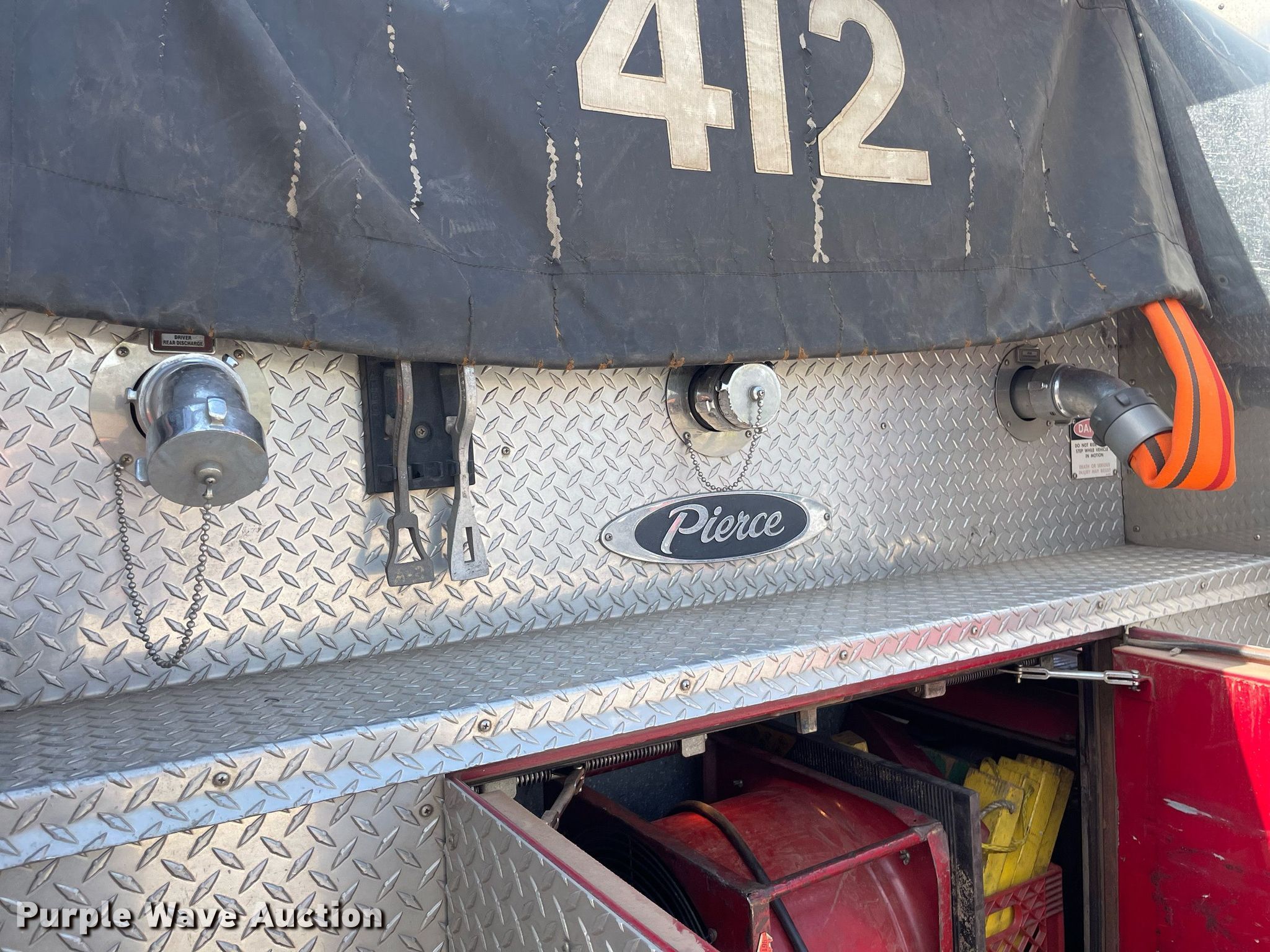 1994 Pierce Arrow fire truck. Miles: 59,230 on odometer, Hours: 5,952 on meter, Miles or hours may vary, unit still in use, VIN: 4P1CA02D1RA000307. Engine Detroit Diesel Series 92, Displacement: 9.2L, Cylinders: 6, Fuel type: Diesel. Transmission Automatic. Chassis Axles: Single, Suspension: Spring, Brakes: Air, GVWR: 38,400 lbs. Interior Heat. Features Fire truck body Elevated deck gun, Hose real, Pump 1,510 gpm, Ground ladder, Generator Honda EM5000SX, Fuel type: Gas, Watts: 5,000, PA/ siren controls, Automatic tire chains. Tires Size: 12R22.5. Notes Elevated deck gun gate valve not included , Hose and contents not included. Kansas title. Title distribution may be delayed up to 14 days from verification of funds. 525 North Main Street. Cheney, KS 67025