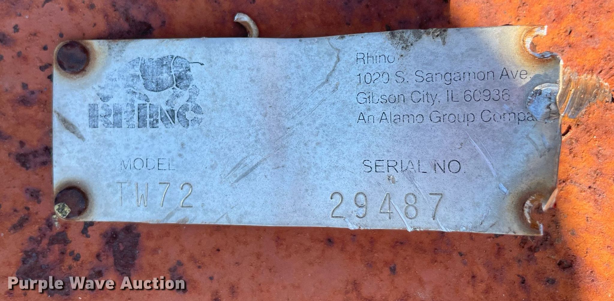 Purple Wave is selling a used Mower, Cutter, Shredder in Texas. This item is a Rhino TW72 rotary mower with the following: Serial: 29487