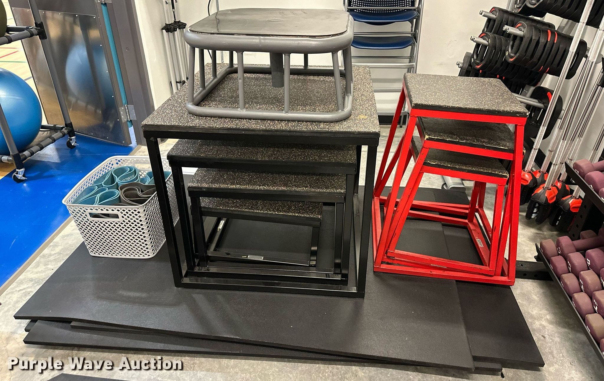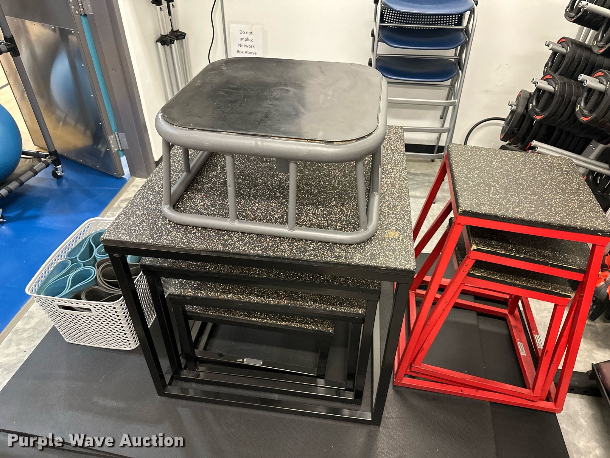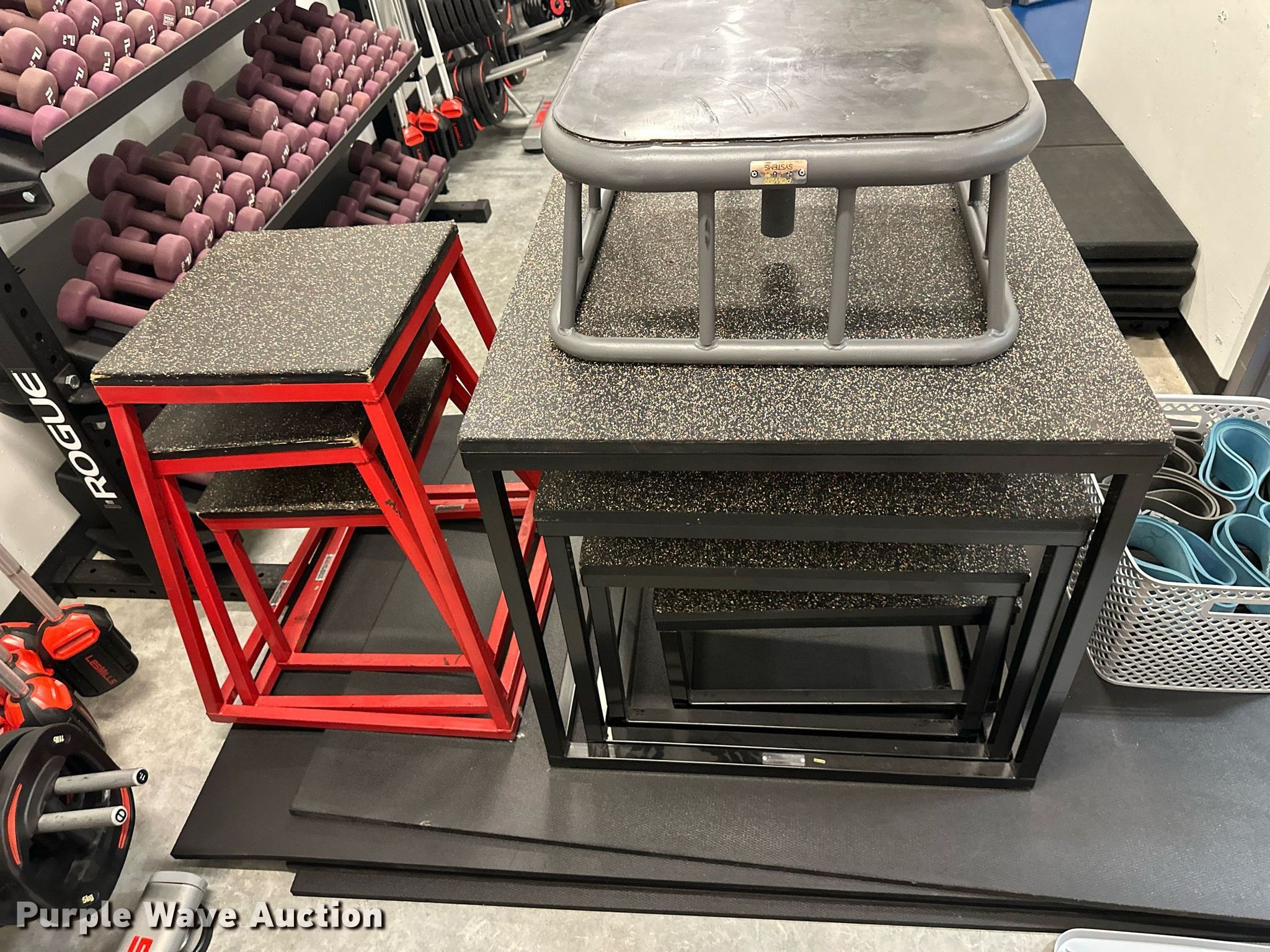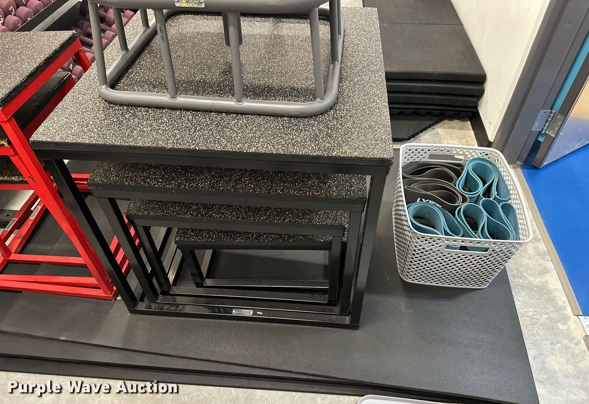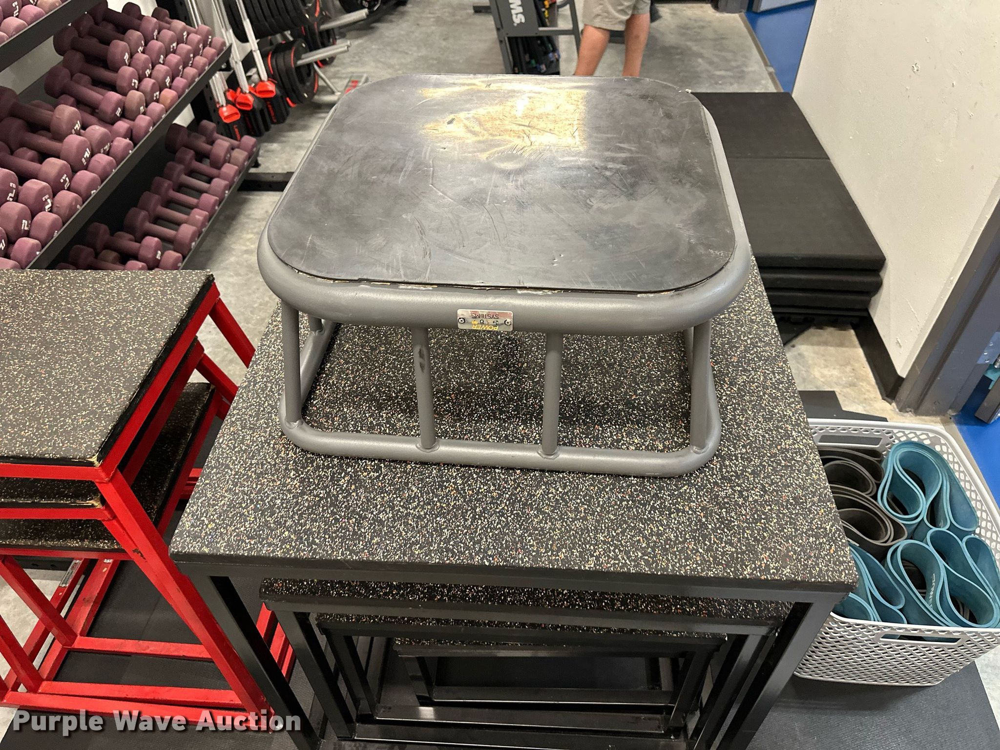 Purple Wave is selling a used Sporting Goods in Kansas. This item is a Sporting goods with the following: (8) step units and more, Tag exercise machine