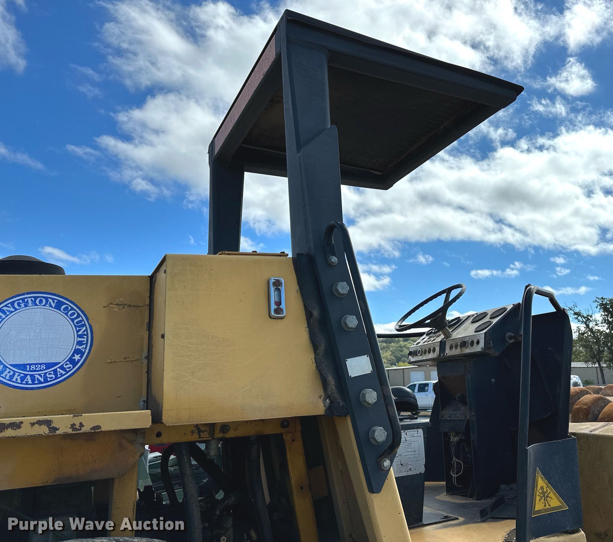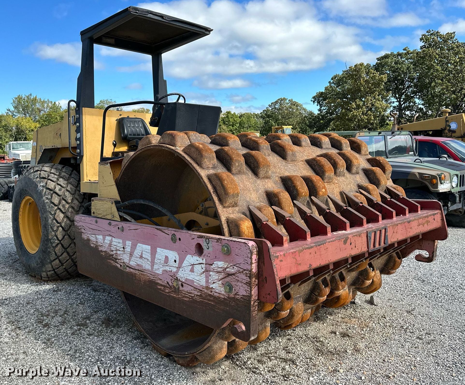 1994 Dynapac CA251D single drum roller. Hours: 3,023 on meter, Serial: 58311803, Unit #: 10-6-9. Engine Cylinders: 6, Fuel type: Diesel. Transmission Hydrostatic, Two speed travel. Operators station OROPS. Features Drum: Padfoot, Vibratory system: Single, Two speed, Front drum Width: 84", Diameter: 67", Drum scrapers: Front. Tires Size: 23.1-26. Notes Rear end leaks, Drive solenoid issues, Starter solenoid issues, Two speed travel button missing. Washington County, AR. 2615 Brink Dr. Fayetteville, AR 72701
