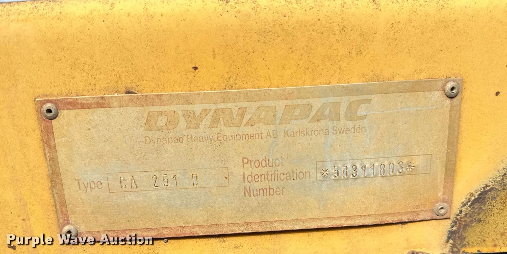 Purple Wave is selling a used Single Drum Roller Compactor in Arkansas. This item is a 1994 Dynapac CA251D single drum roller with the following: Hours: 3,023 on meter, Serial: 58311803, Unit #: 10-6-9