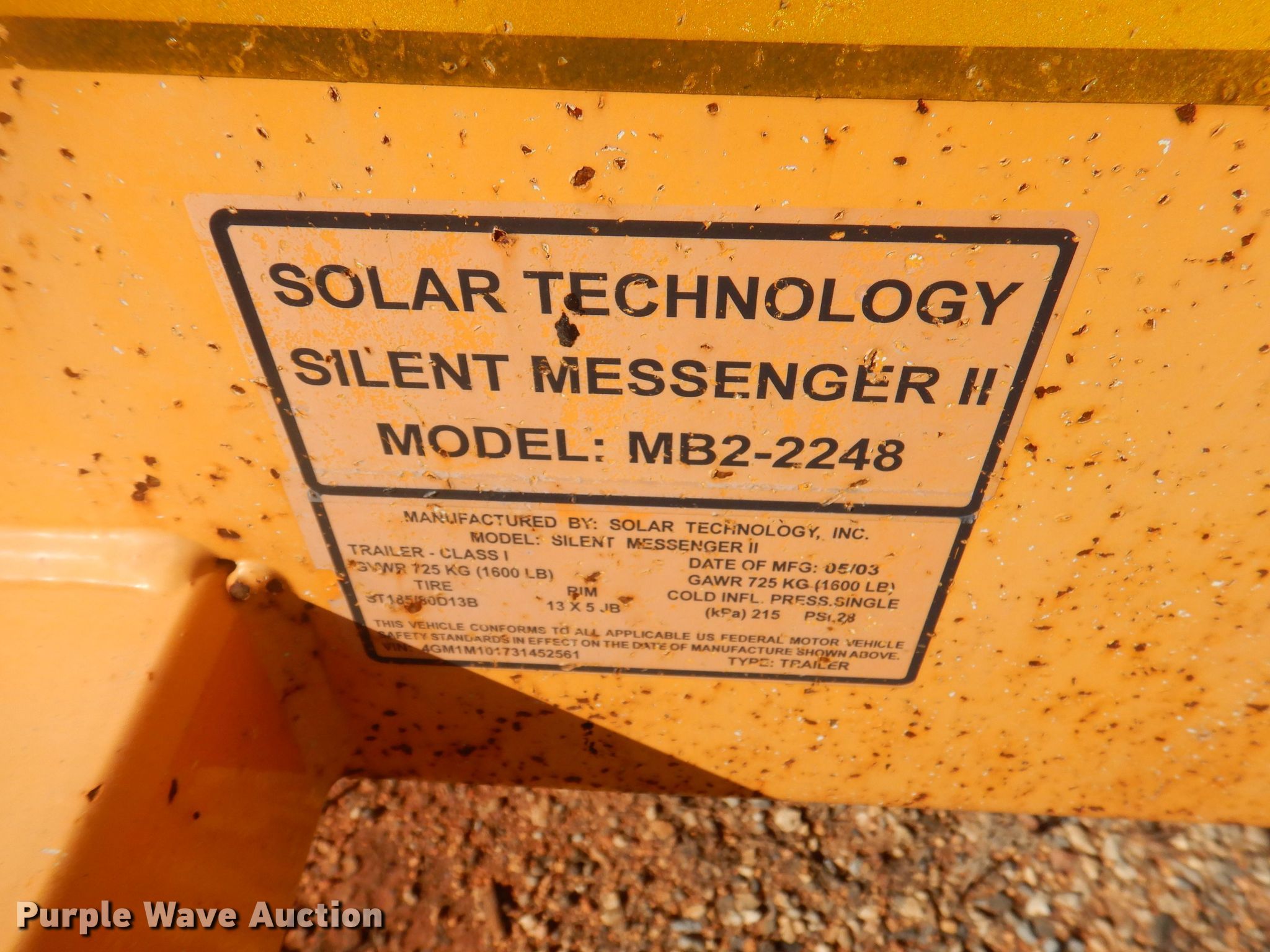Purple Wave is selling a used Trailer Other in Arkansas. This item is a 2003 Solartech Silent Messenger II message board trailer with the following: VIN: 4GM1M101731452561, Unit #: 10-30-2