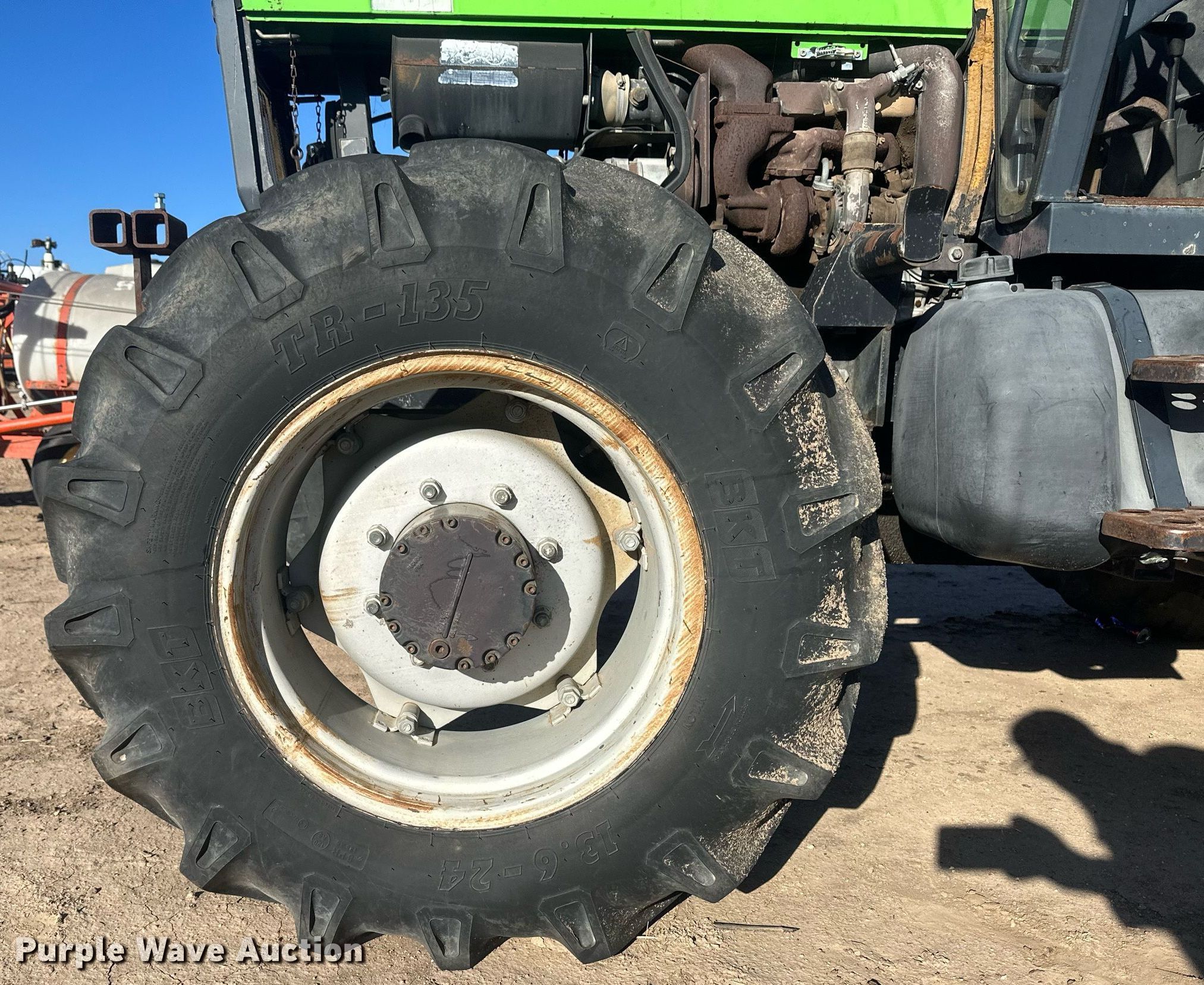 1990 Deutz Allis 7085 MFWD tractor. Hours: 6,165 on meter, Serial: 74357484. Engine Cylinders: 4, Fuel type: Diesel. Transmission Synchro, 20F - 5R. Features PTO: 540, 1000, Three point Top link, Hydraulic remote sets Rear: 3. Tires Front: 13.6-24, Rear: 18.4/15-34. Notes Door missing, Transmission issues , Non-operational unit. 1587 Cottonwood. Sublette, KS 67877