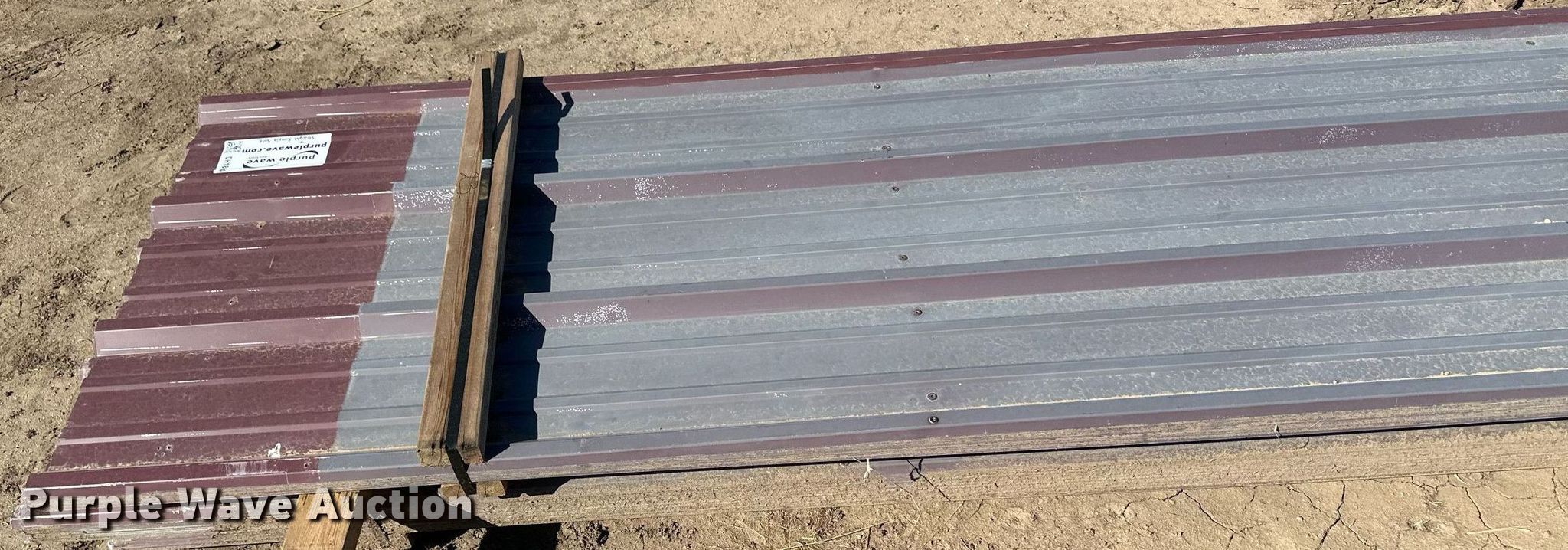 Purple Wave is selling a used Building Materials in Kansas. This item is a (73) sheets of 20' 9" L x 36" W metal siding/roofing with the following: (73) sheets of 20' 9" L x 36" W metal siding/roofing. 1587 Cottonwood. Sublette, KS 67877