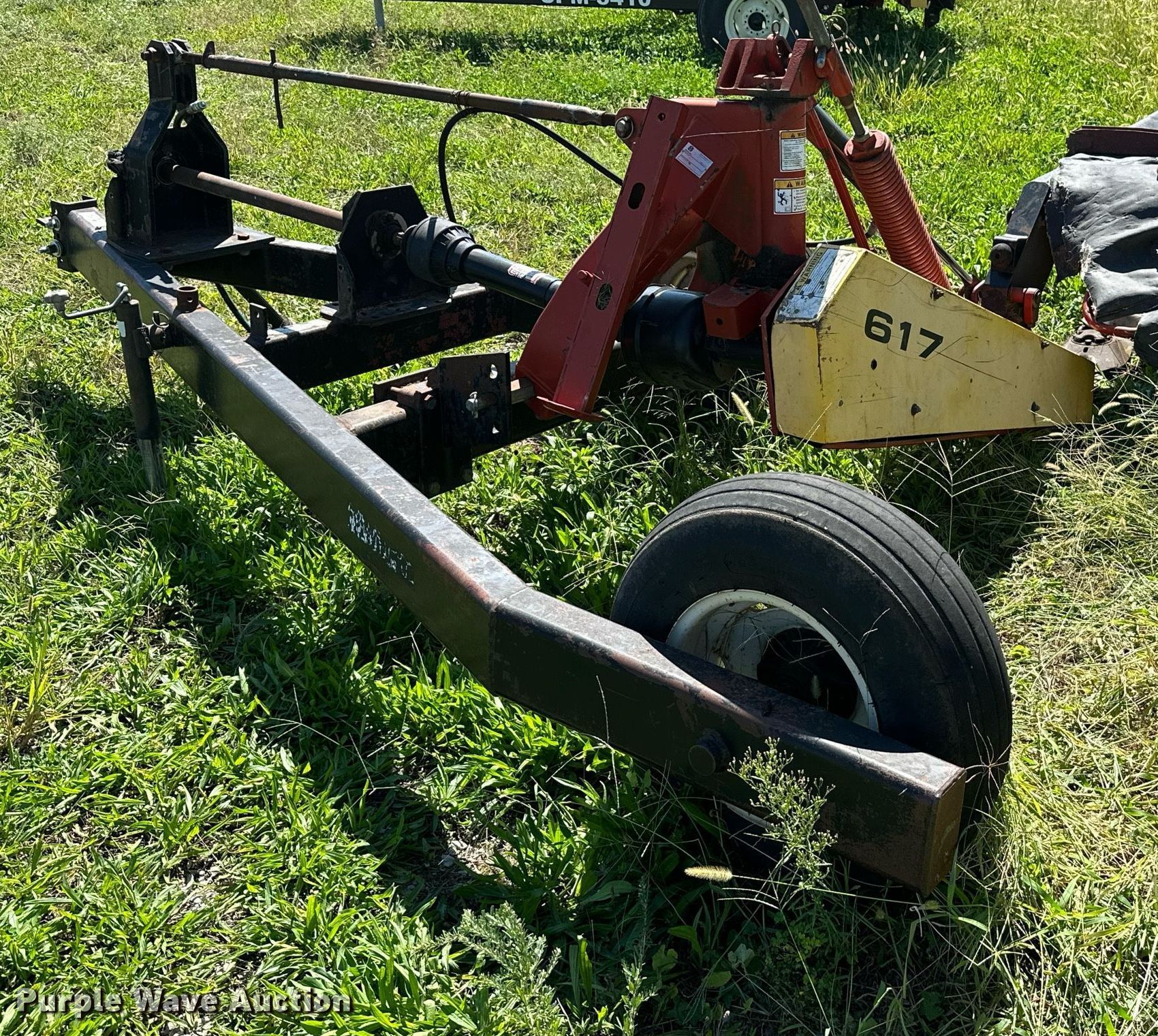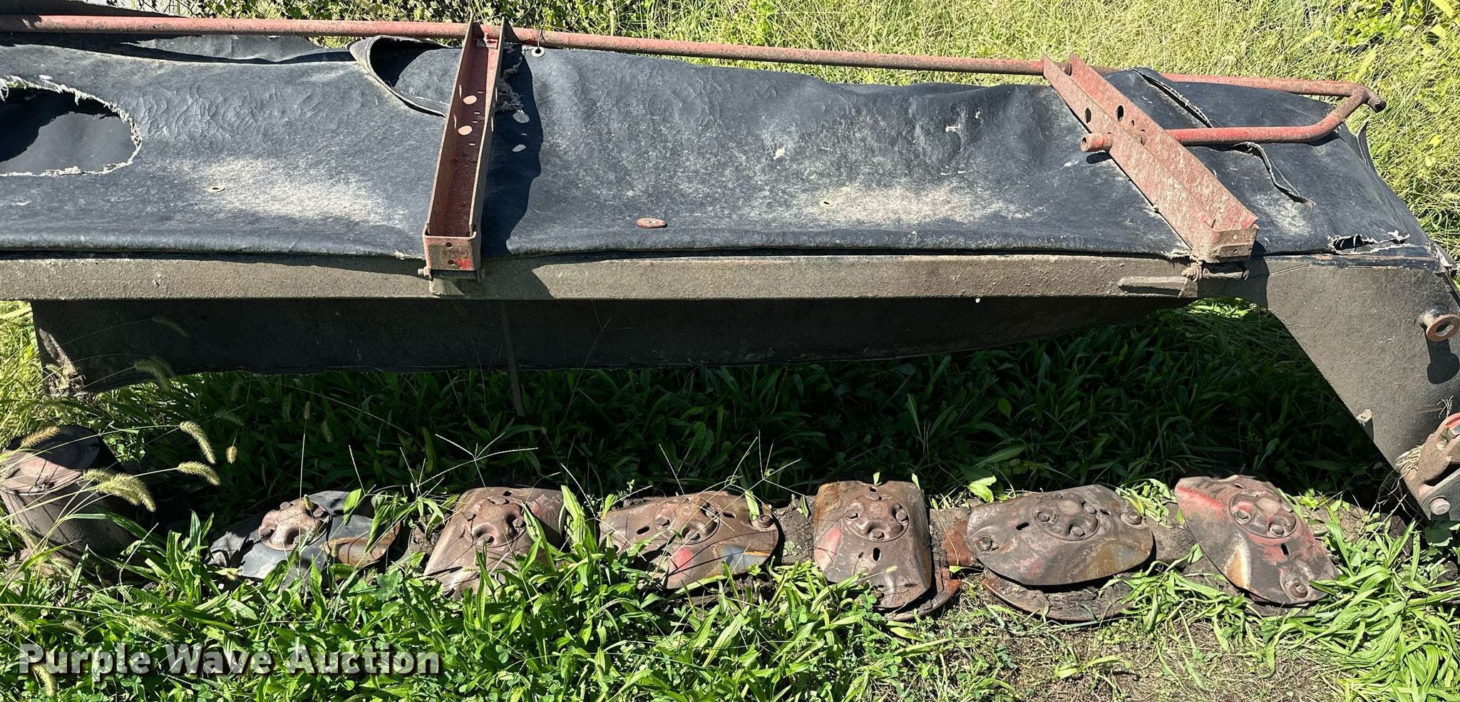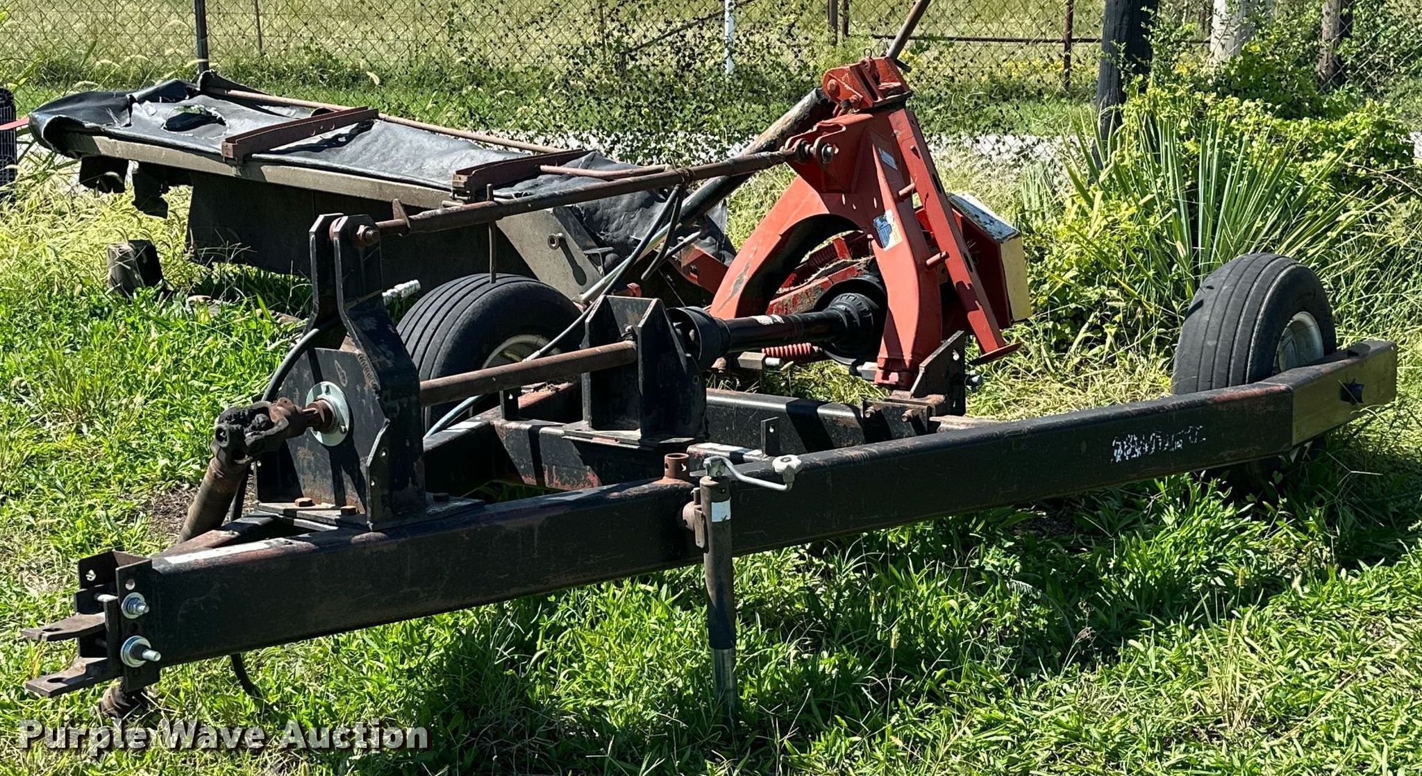 New Holland 617 disc mower. Serial: Y7B150925. Features Width: 9', Hydraulic fold, PTO: 540. Tires Size: 11L-15. Notes Possible gearbox issues, Non-operational unit. Foreman's Body Shop. 437990 E. Highway 60. Vinita, OK 74301