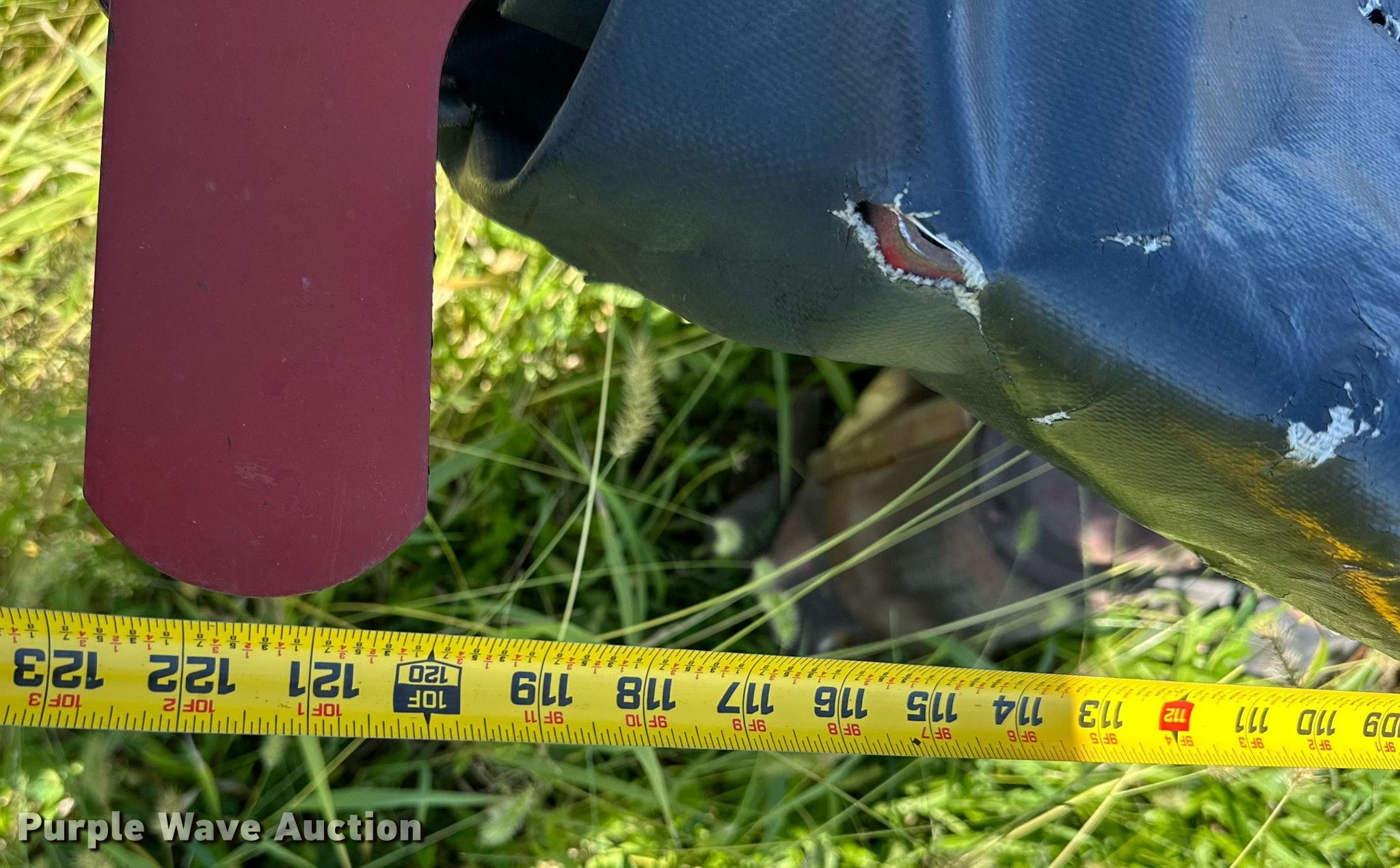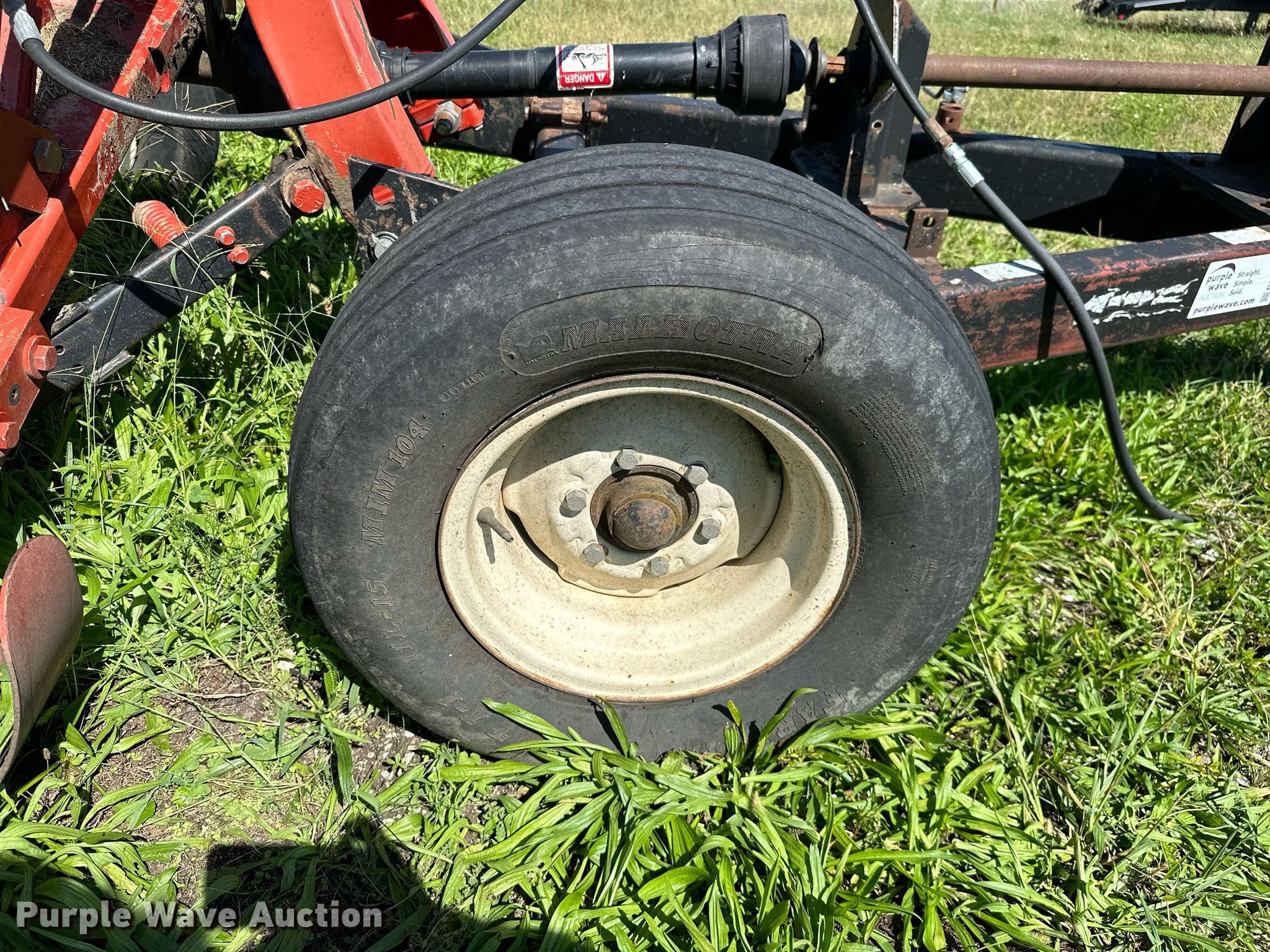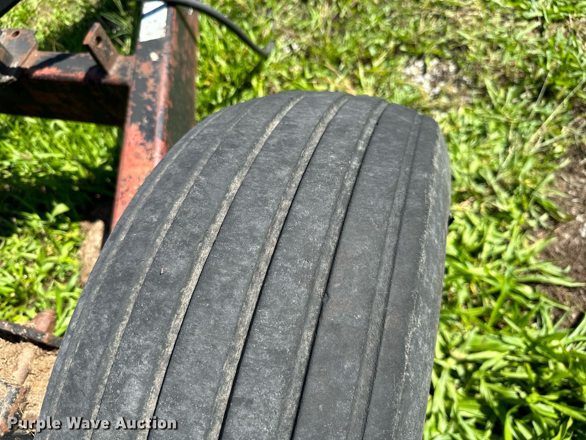 New Holland 617 disc mower. Serial: Y7B150925. Features Width: 9', Hydraulic fold, PTO: 540. Tires Size: 11L-15. Notes Possible gearbox issues, Non-operational unit. Foreman's Body Shop. 437990 E. Highway 60. Vinita, OK 74301