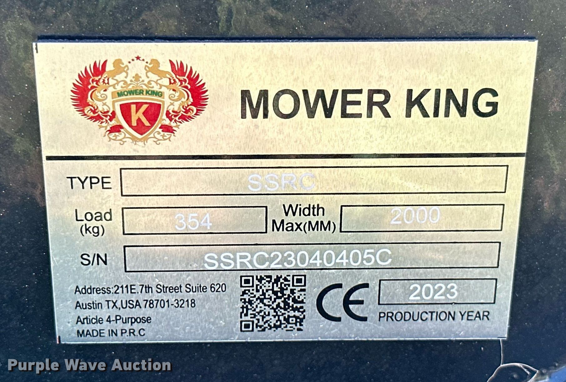 Purple Wave is selling a used Skid Steer Attach. in Kansas. This item is a 2023 Mower King SSRC skid steer rotary mower with the following: Serial: SSRC23040405C, Width: 72", Unused