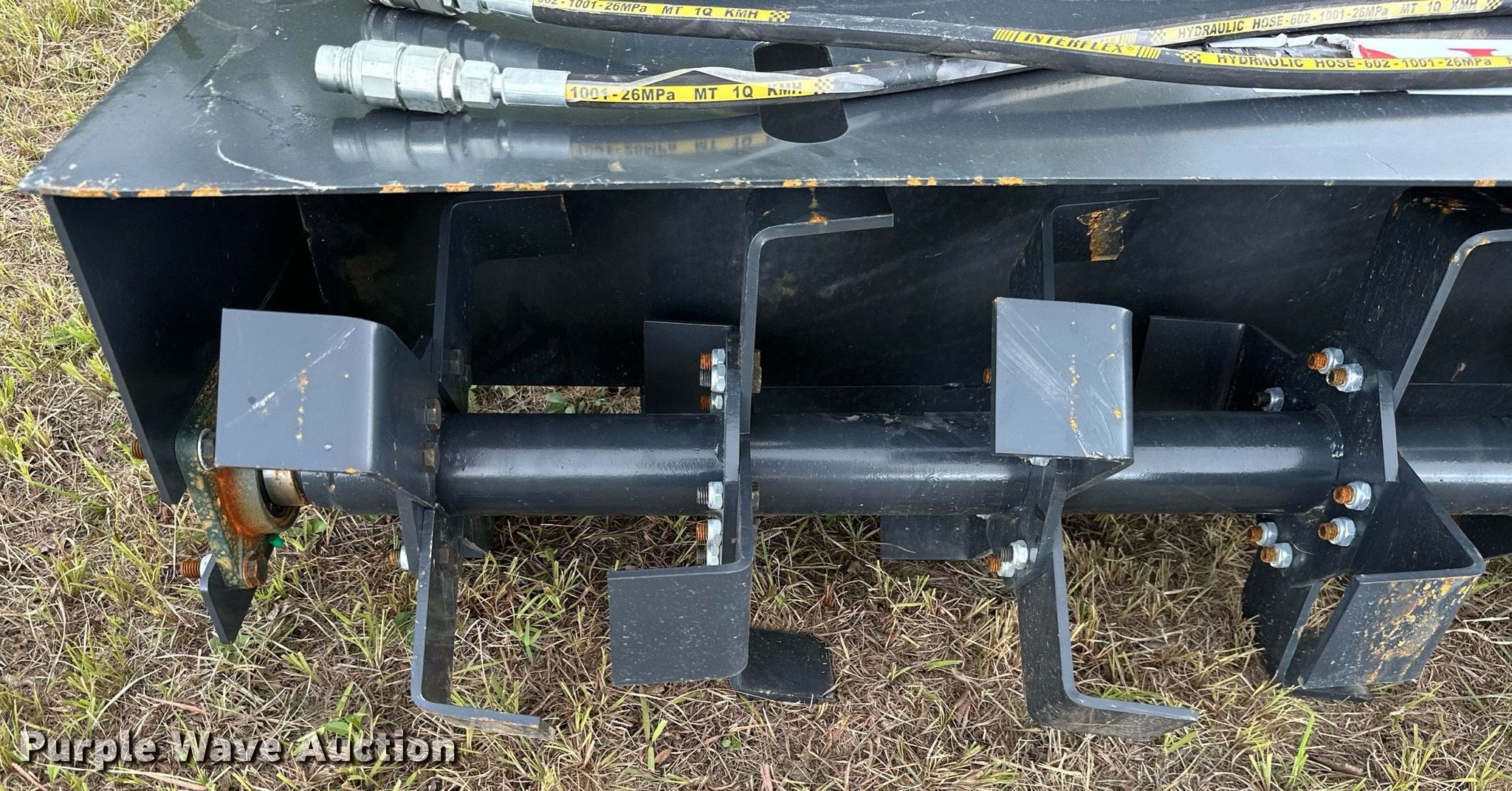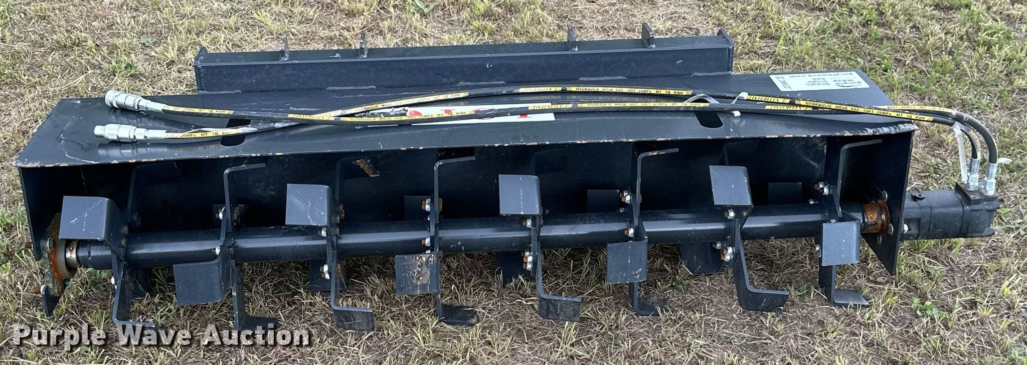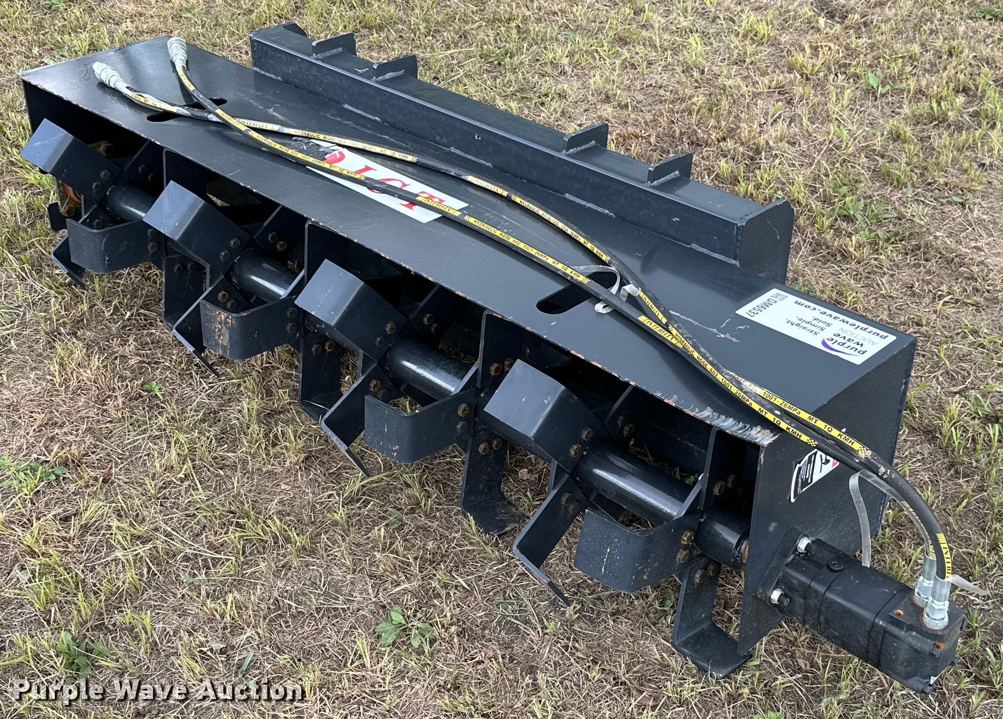 Purple Wave is selling a used Skid Steer Attach. in Kansas. This item is a JCT 72" W skid steer tiller with the following: Unused