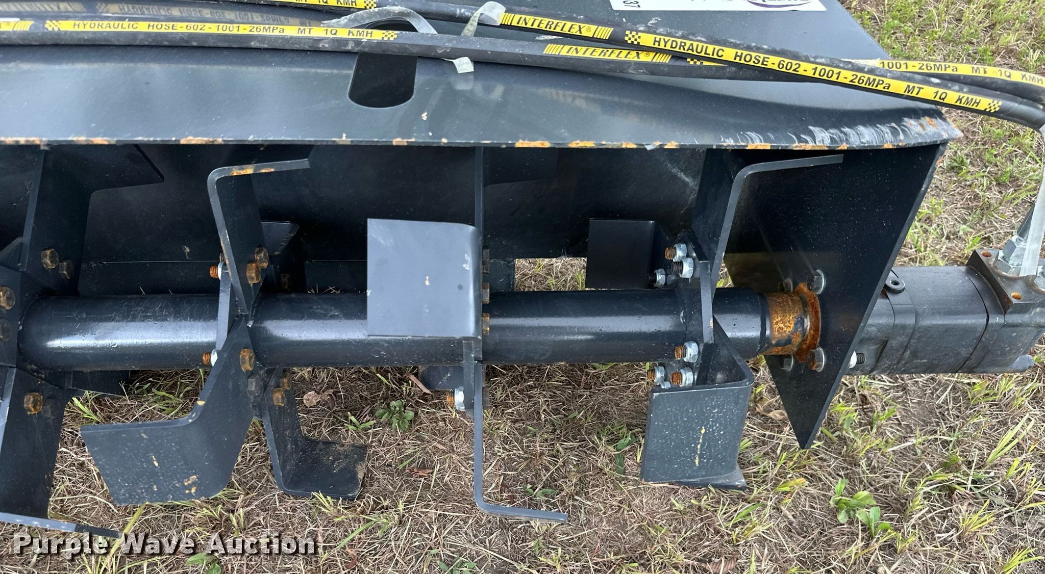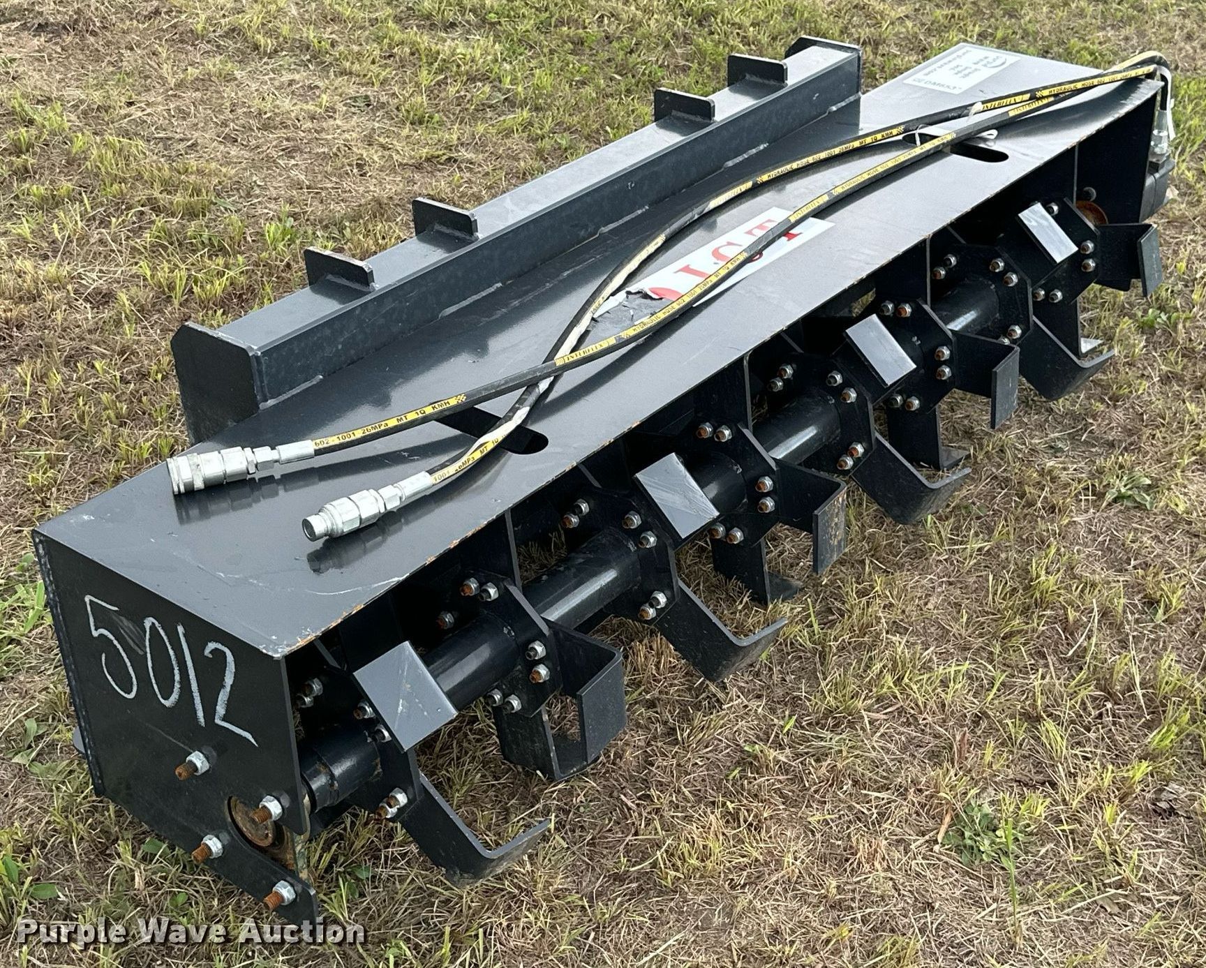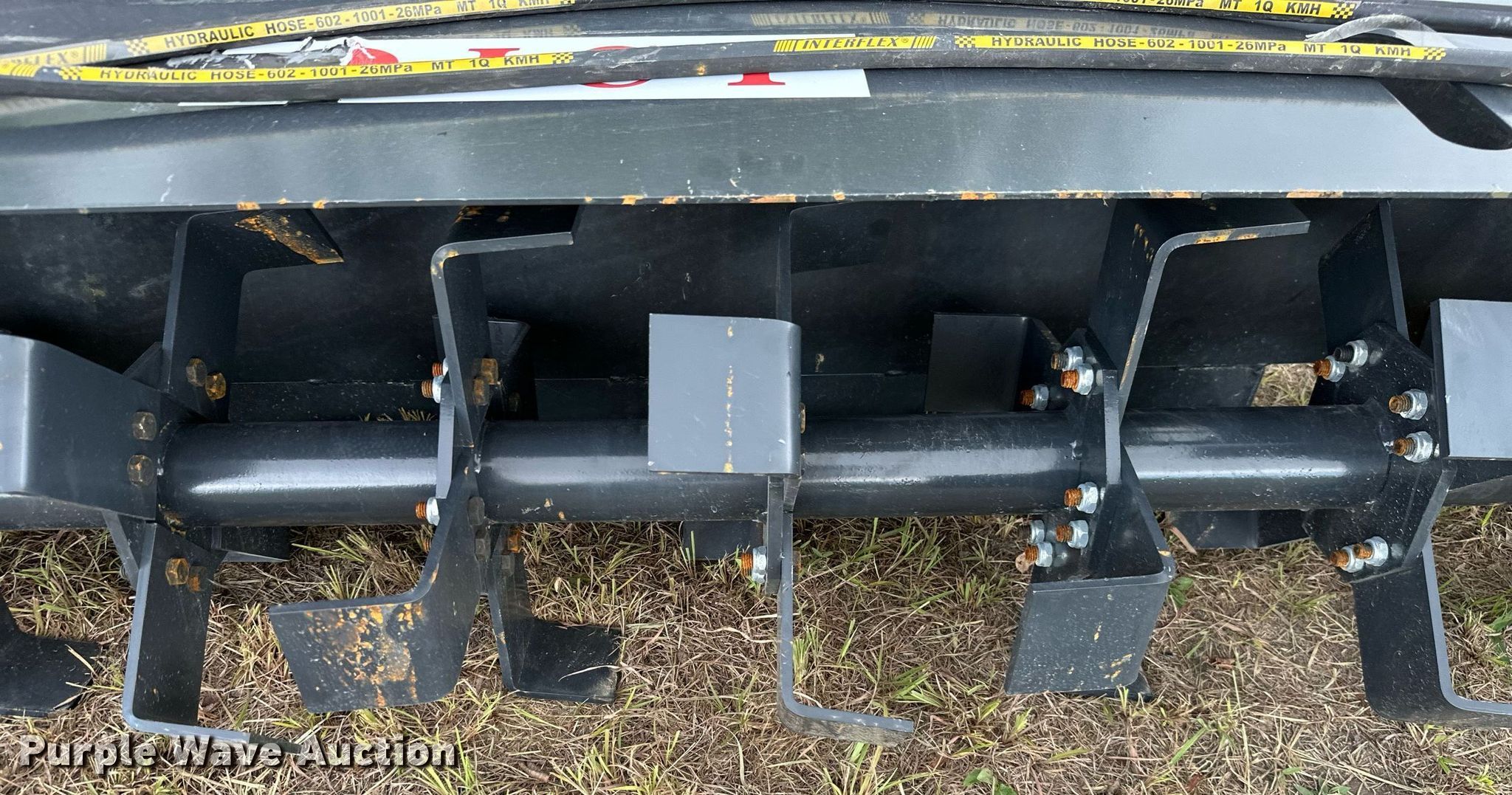 Purple Wave is selling a used Skid Steer Attach. in Kansas. This item is a JCT 72" W skid steer tiller with the following: Unused