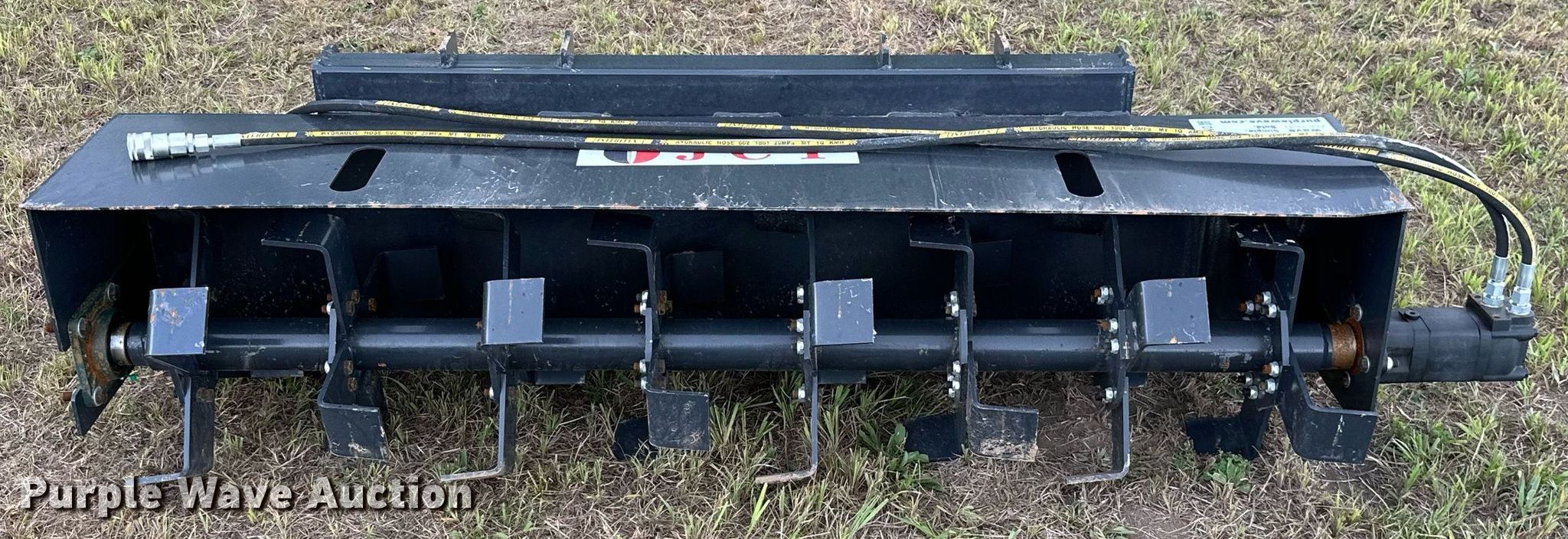 Purple Wave is selling a used Skid Steer Attach. in Kansas. This item is a JCT 72" W skid steer tiller with the following: Unused
