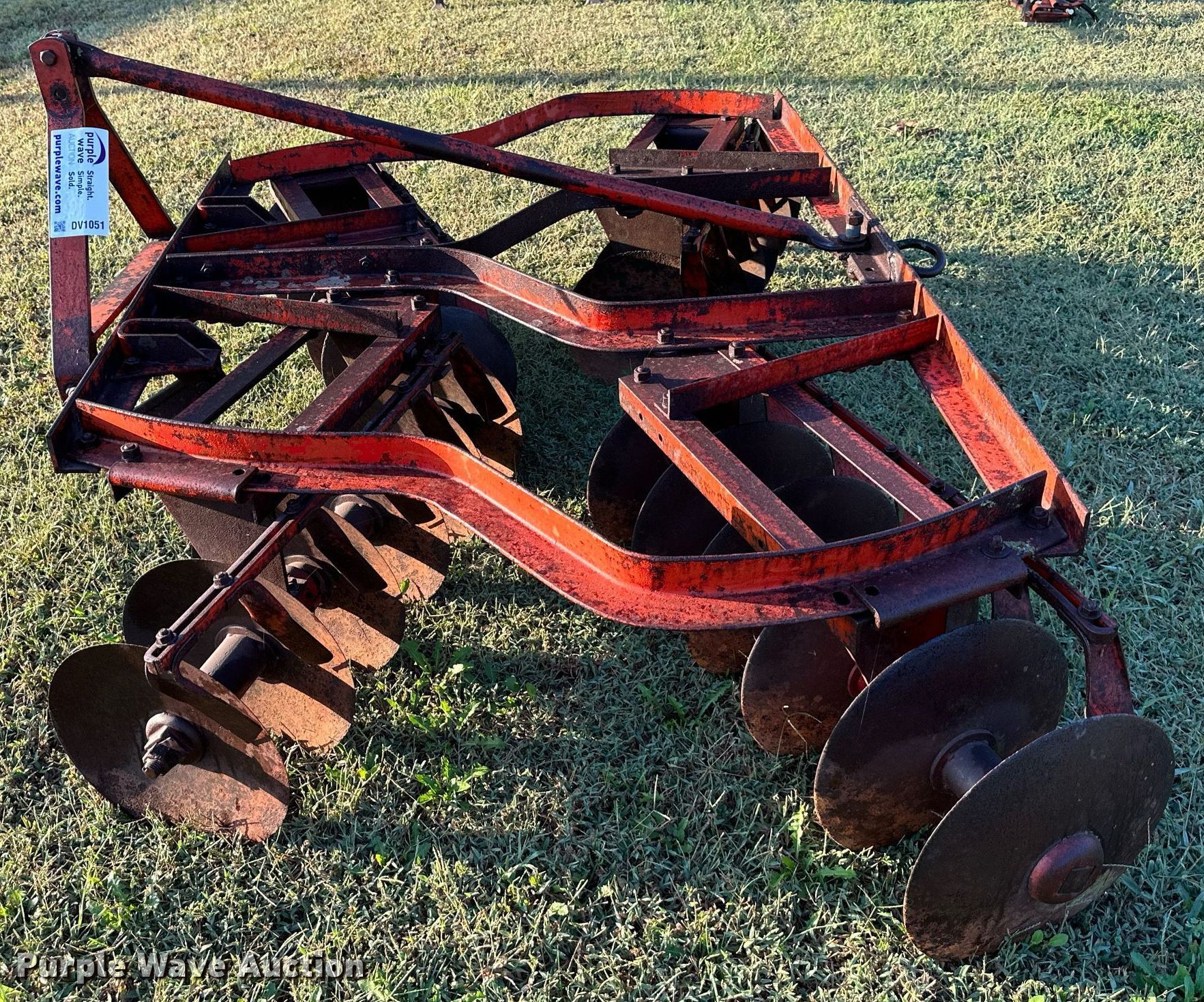 Purple Wave is selling a used Disk in Kansas. This item is a Tandem disk with the following: Overall width: 7' 6"