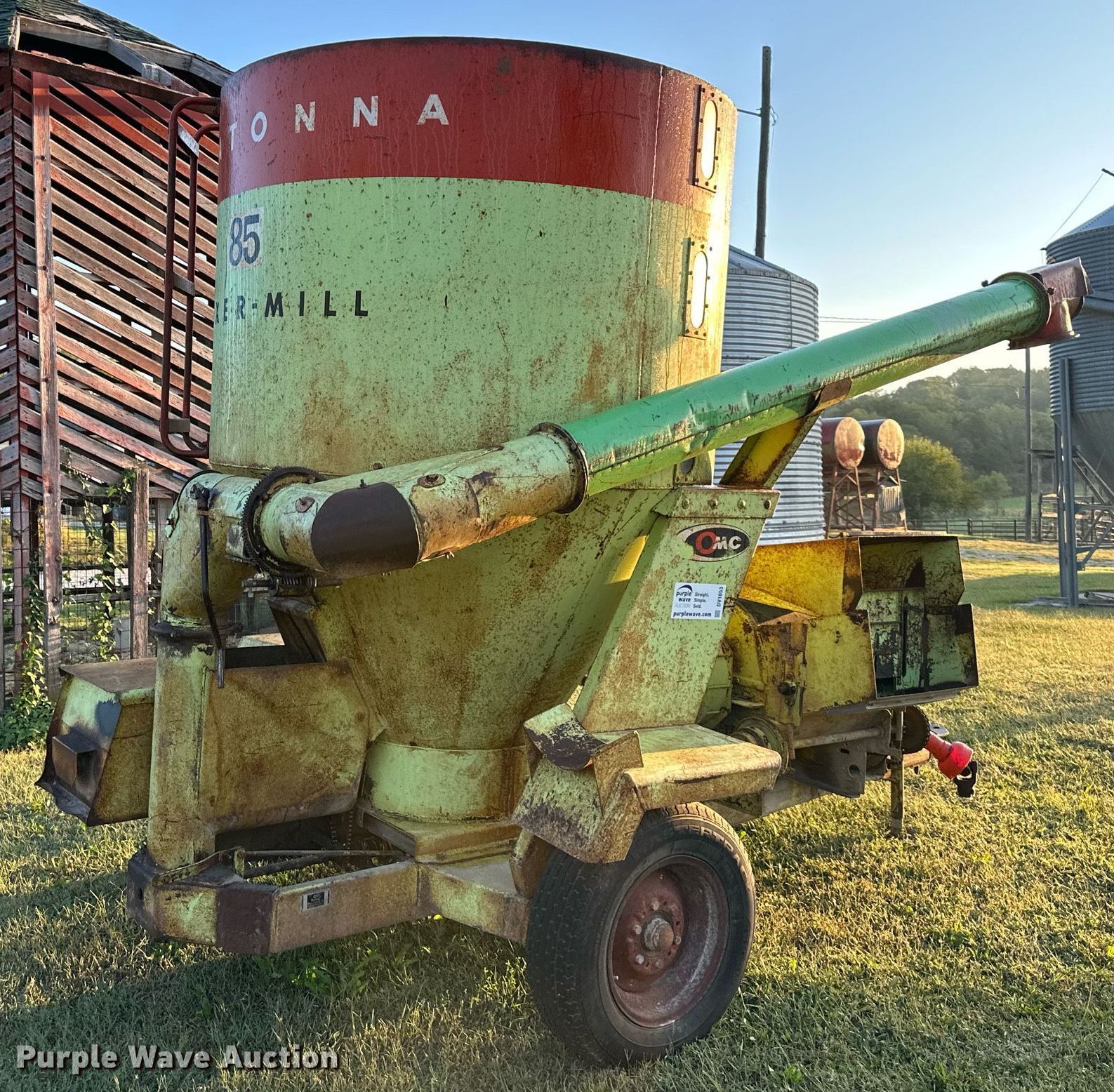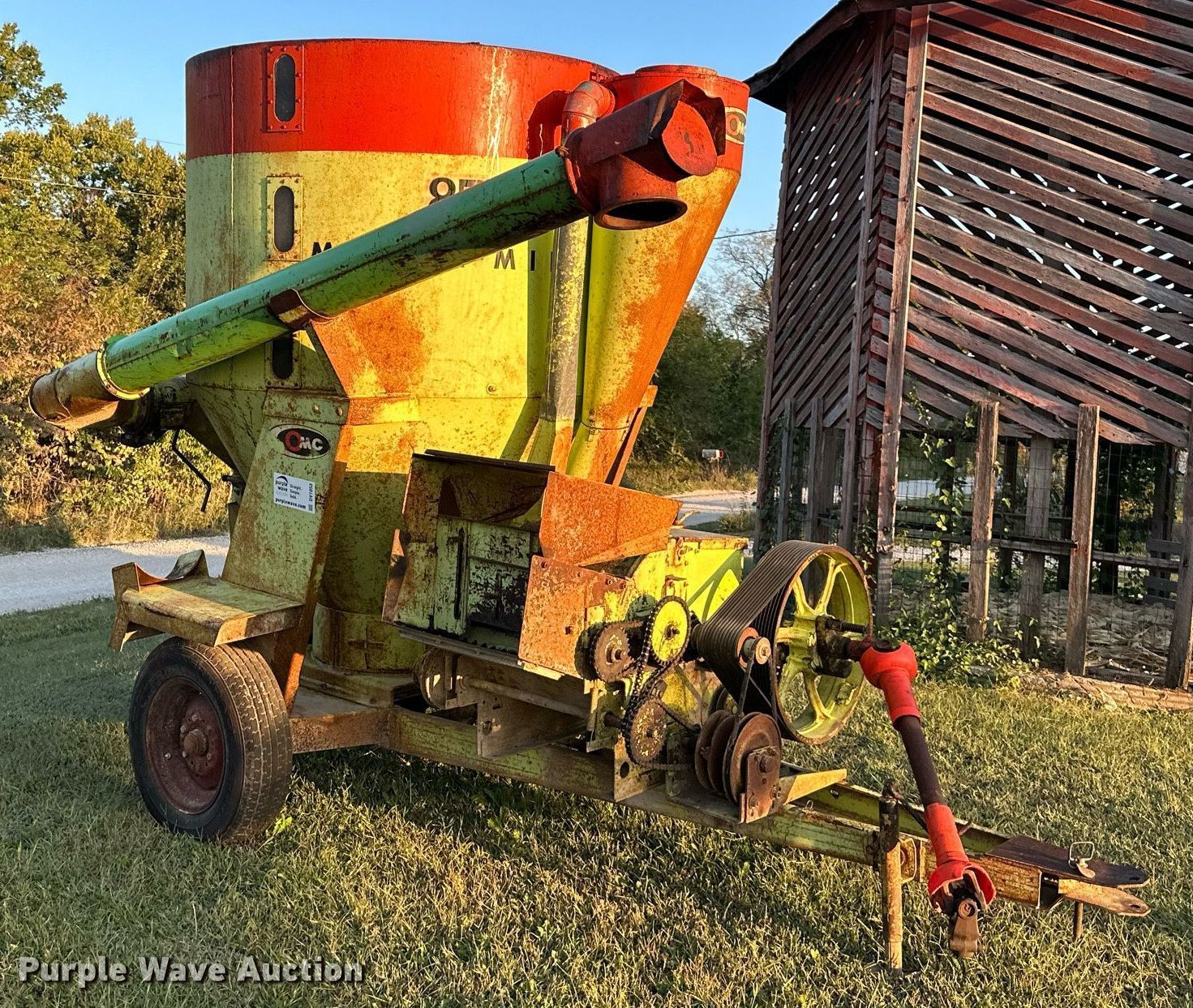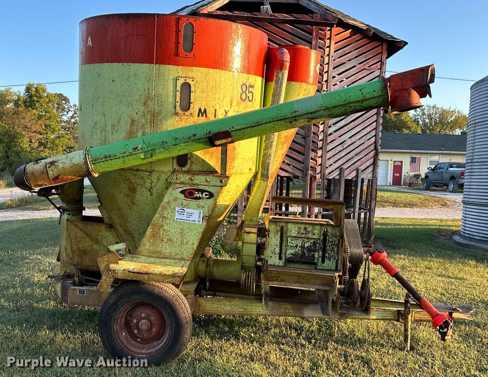 Purple Wave is selling a used Feed Mixer or Bale Processor in Kansas. This item is a OMC 85 Mixer Mill feed grinder/mixer with the following: PTO: 540, Auger, Diameter: 6", Discharge: Side, Chute: Manual, Door: Manual