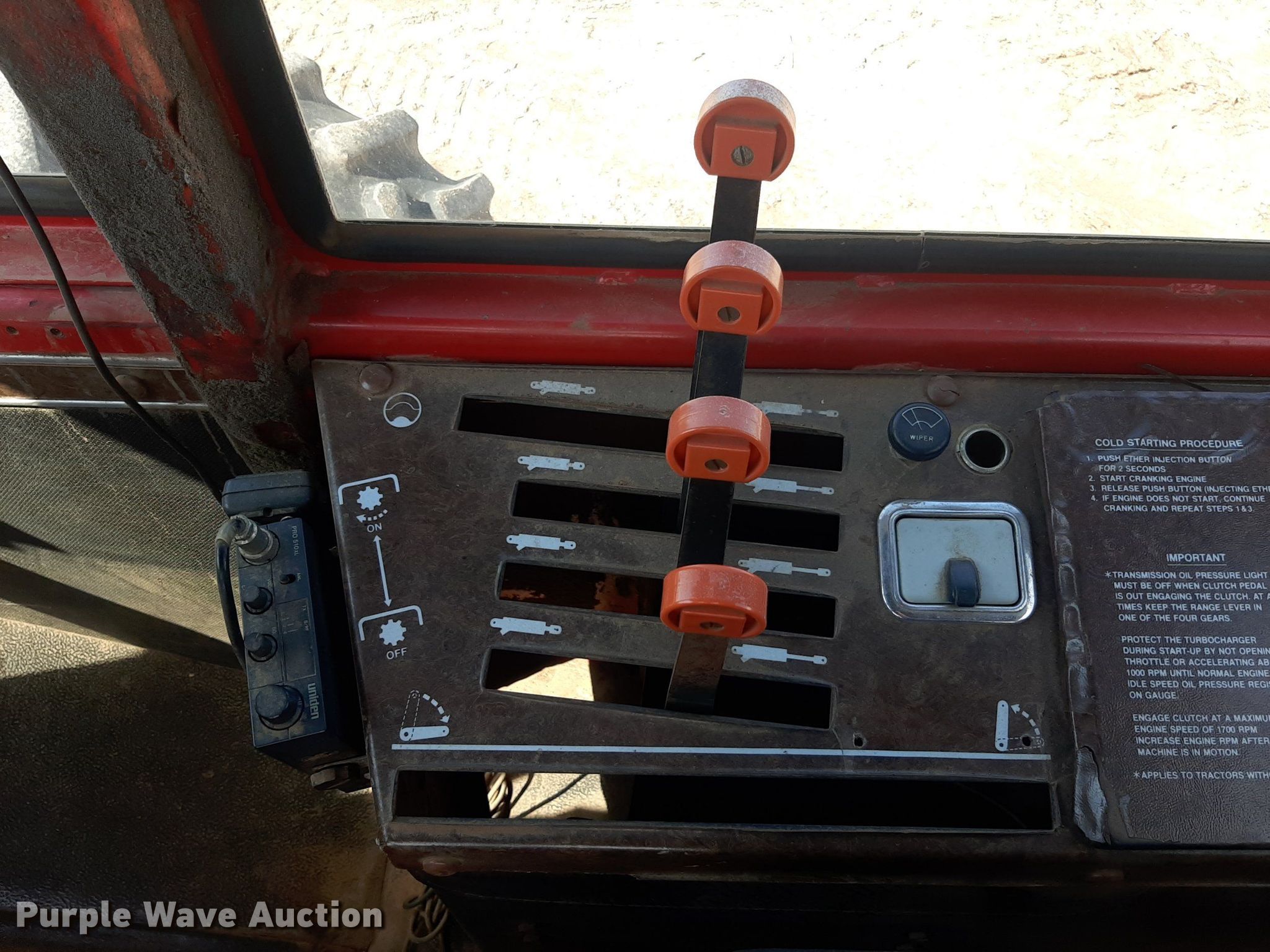 1984 Versatile 875 4WD tractor. Hours: 9,173 on meter, Serial: 059056. Engine Cylinders: 6, Fuel type: Diesel. Transmission Manual, 12F - 4R. Operators station AC, Heat. Features Seven pin outlet, Rear: 4. Tires Size: 20.8R38, Duals. Notes Tire leaks, Non-operational parking brake. Jerry and Charlene Vap Trust. Ponca City, OK 74601