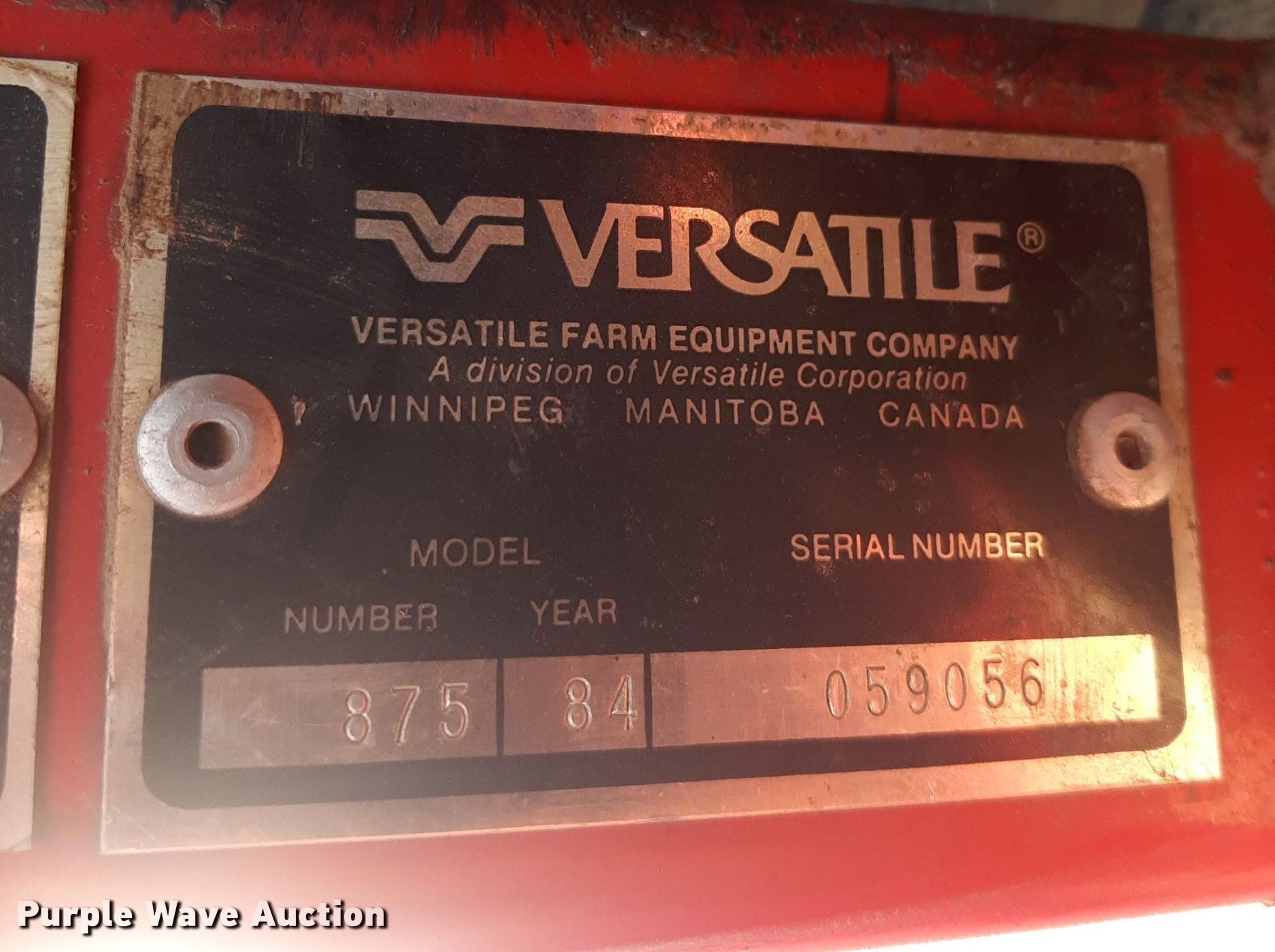 Purple Wave is selling a used Articulated 4-Wheel Drive Tractor in Oklahoma. This item is a 1984 Versatile 875 4WD tractor with the following: Hours: 9,173 on meter, Serial: 059056