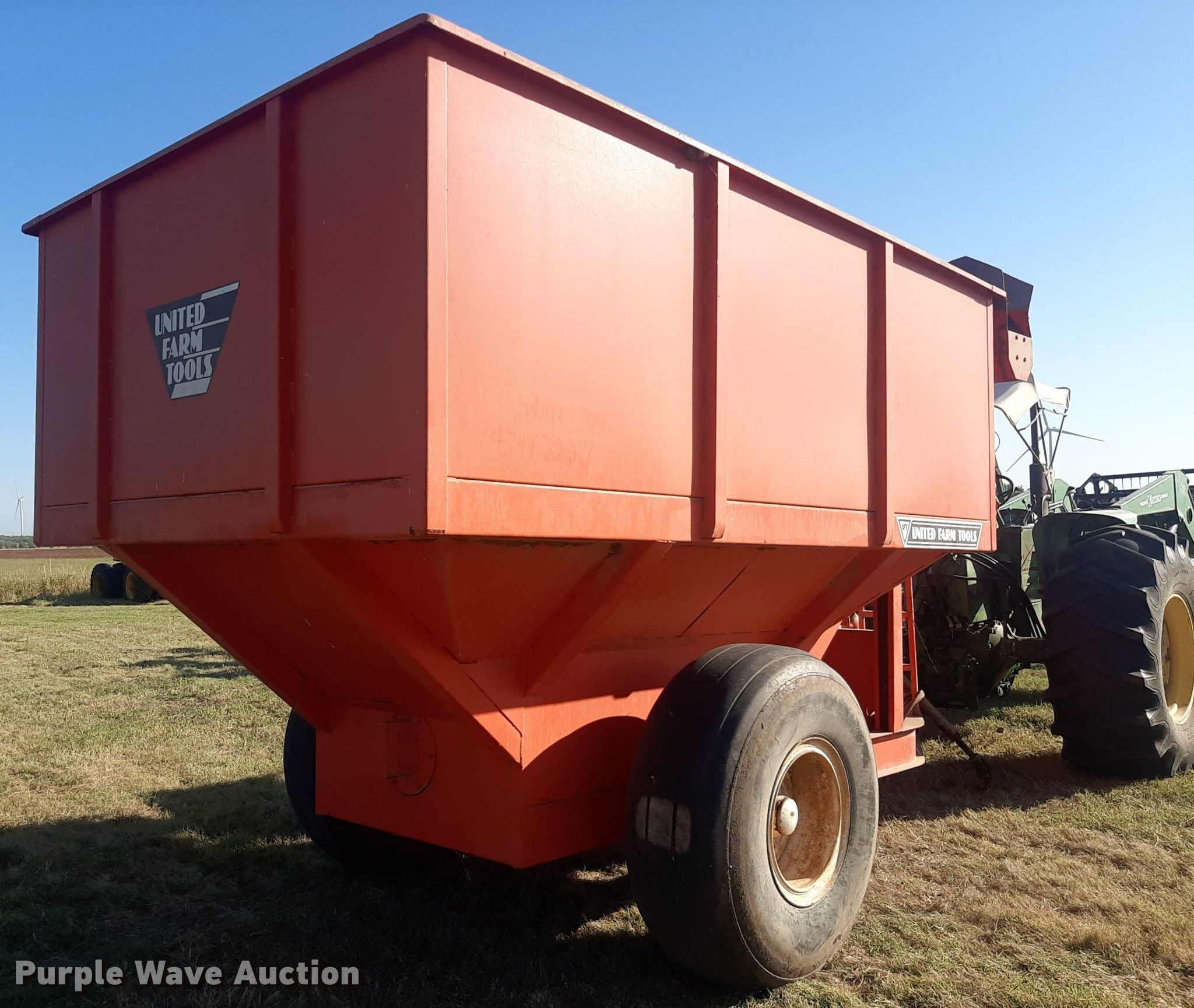 Purple Wave is selling a used Grain Cart or Gravity Wagon in Oklahoma. This item is a United Farm Tools grain cart with the following: Serial: 20216