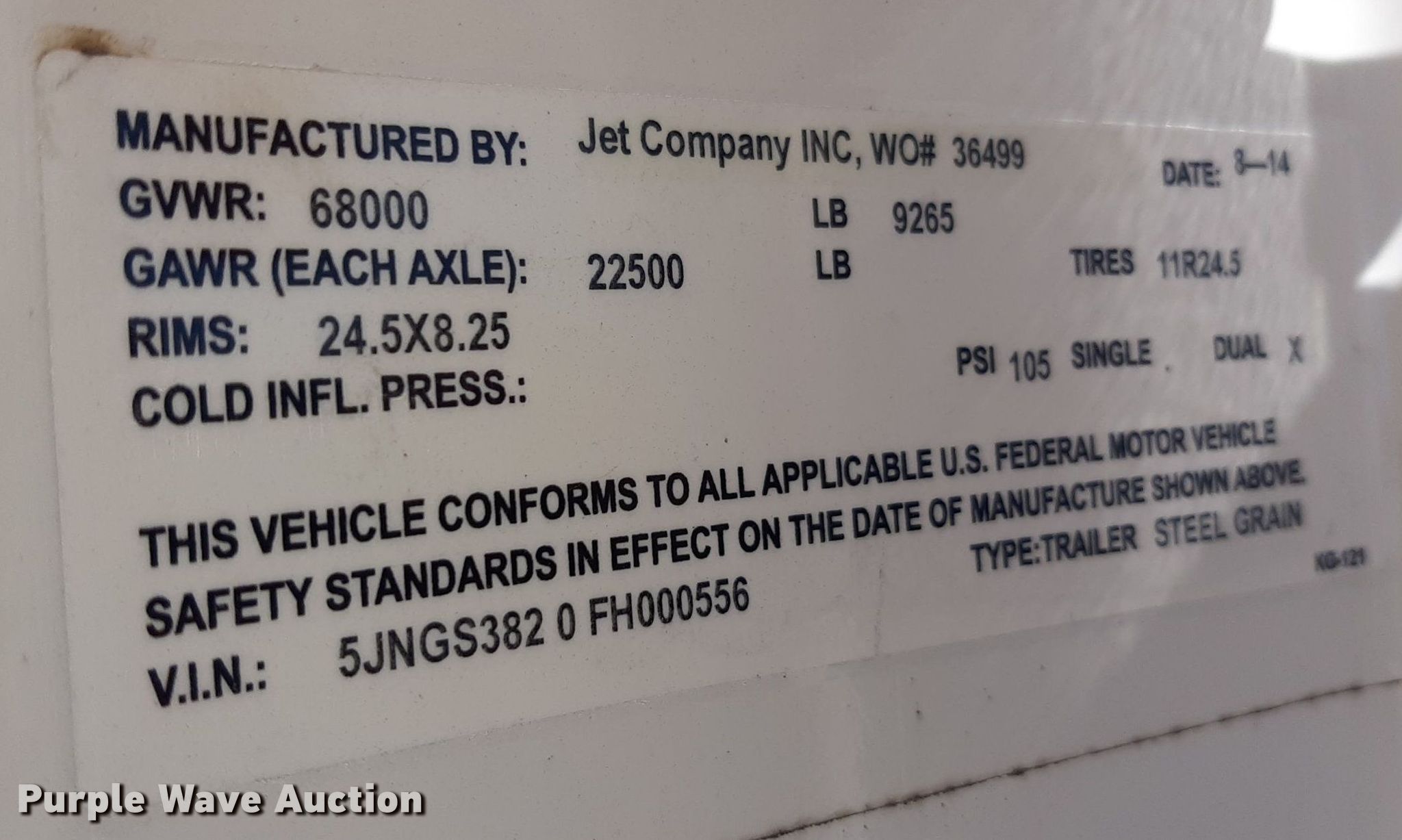 Purple Wave is selling a used Grain or Commodity Trailer in Oklahoma. This item is a 2015 Jet Company grain trailer with the following: VIN: 5JNGS3820FH000556