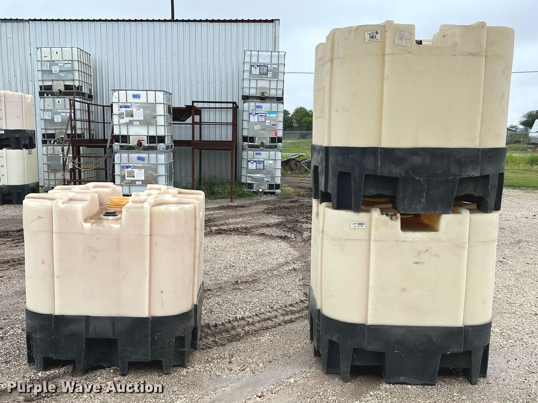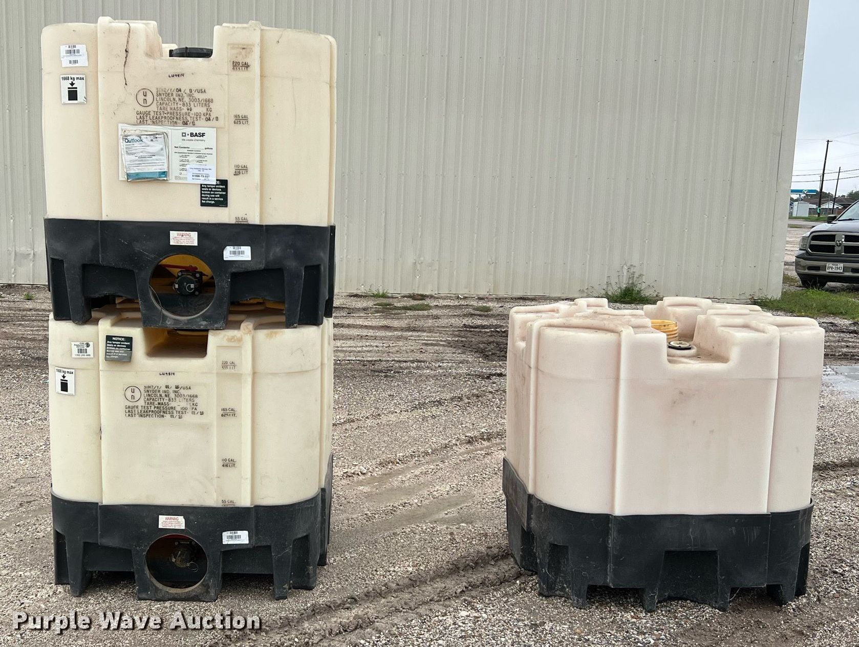 Purple Wave is selling a used Tanks in Texas. This item is a (3) Snyder 220 gallon totes with the following: Outlets: 2", Totes have not been cleaned, possible chemical residue