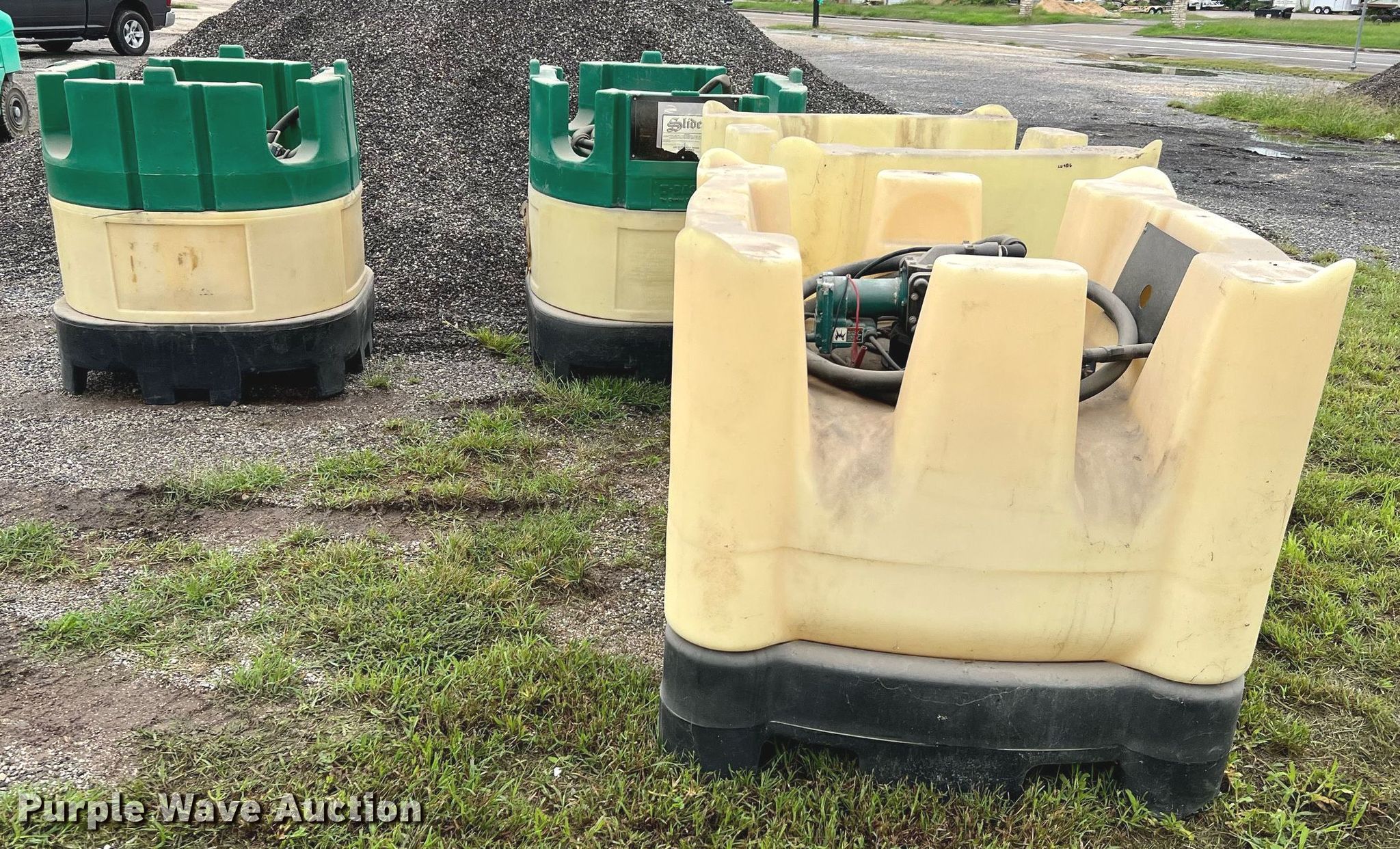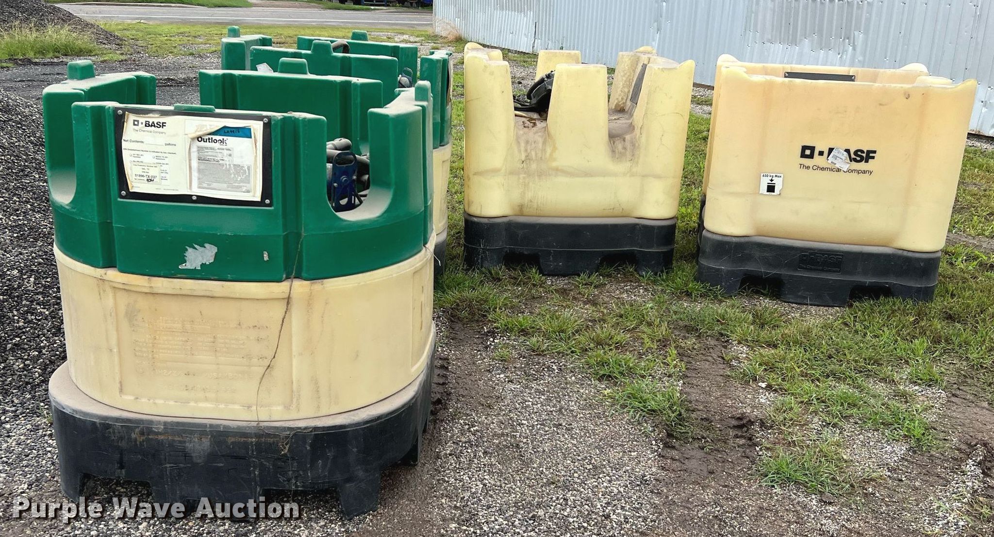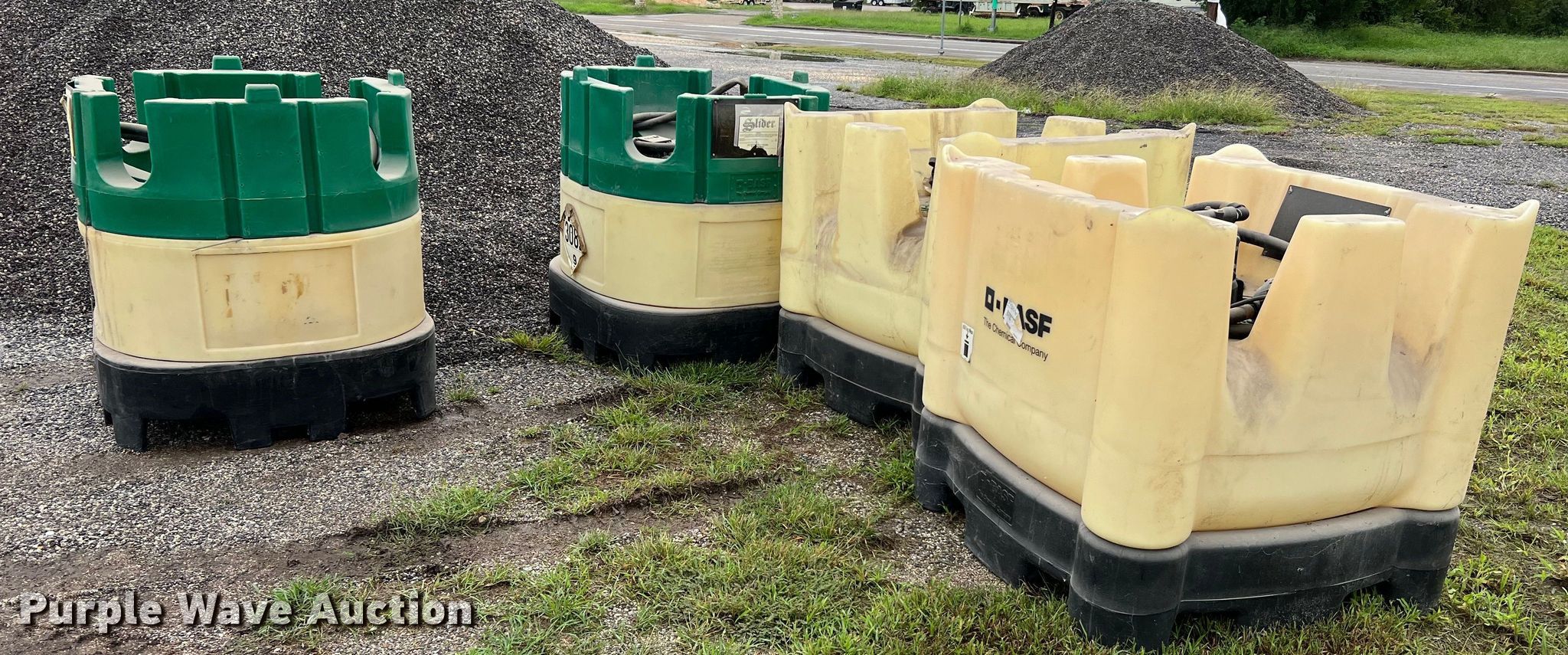 Purple Wave is selling a used Tanks in Texas. This item is a (4) 120 gallon totes with the following: Pumps, Unknown operating condition, Totes have not been cleaned, possible chemical residue