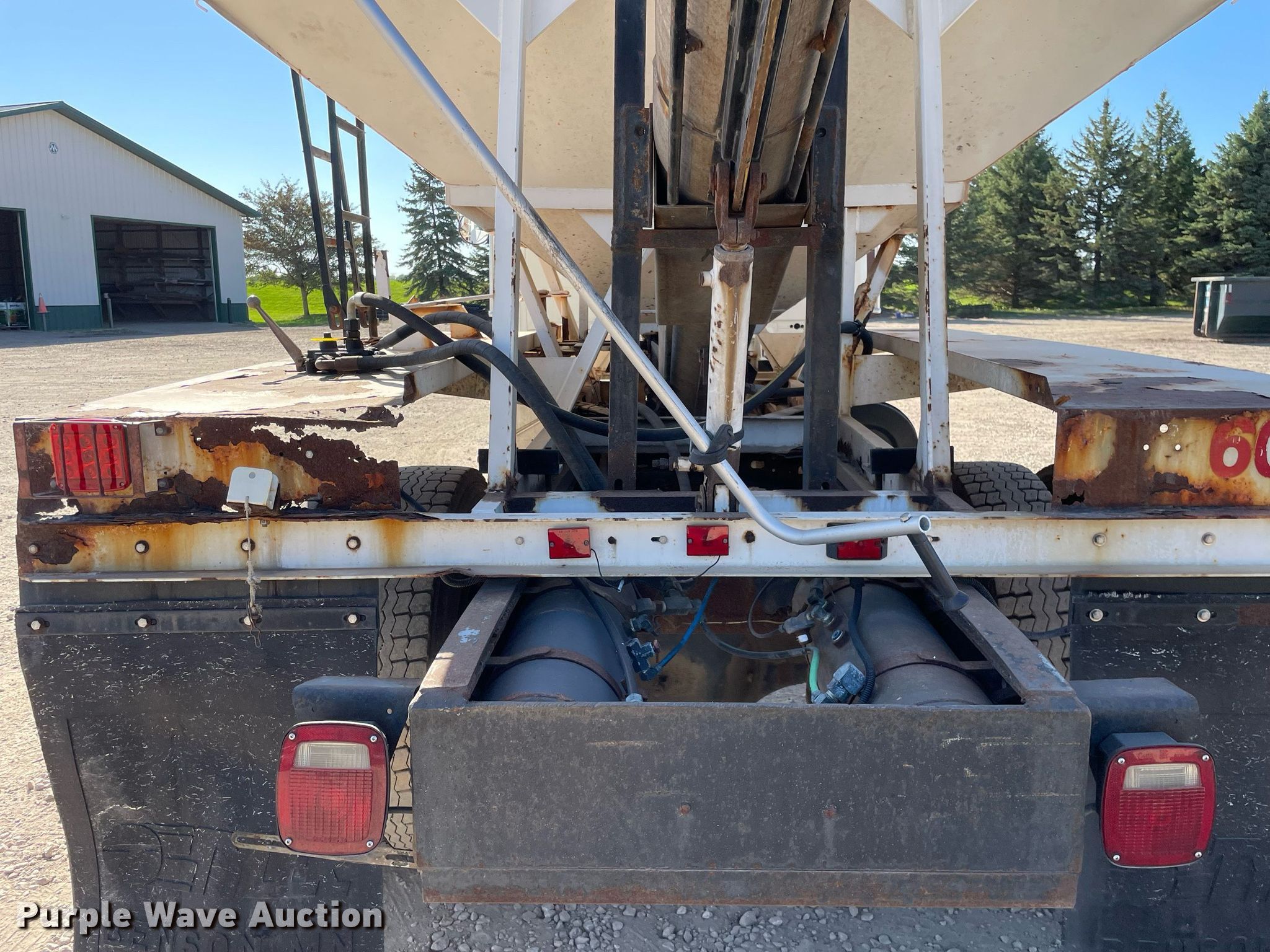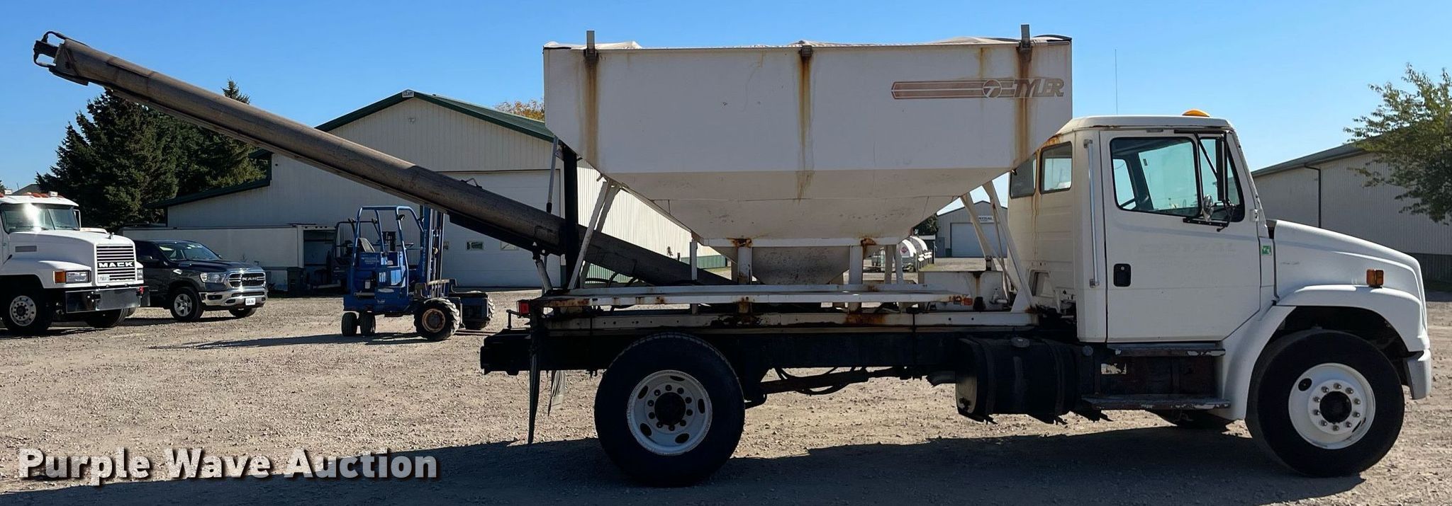 1999 Freightliner FL70 feed delivery truck. Miles: 132,636 on odometer, VIN: 1FV6HJAA2XHB76289, Unit #: 60. Engine Caterpillar 3126, Displacement: 7.2L, Cylinders: 6, Fuel type: Diesel. Transmission Automatic. Chassis Axles: Single, Suspension: Air, Brakes: Air, PTO, GVWR: 33,000 lbs. Interior AC, Heat, Heated mirrors, Cruise control. Features Delivery bed Tyler , Compartments: 2, Discharge auger Diameter: 10", Length: 20', Rear, Tarp, Ground controls. Tires Size: 11R22.5. Illinois title. Title distribution may be delayed up to 14 days from verification of funds. Central Sod Farms Inc.. 25605 West 111th Street. Plainfield, IL 60585
