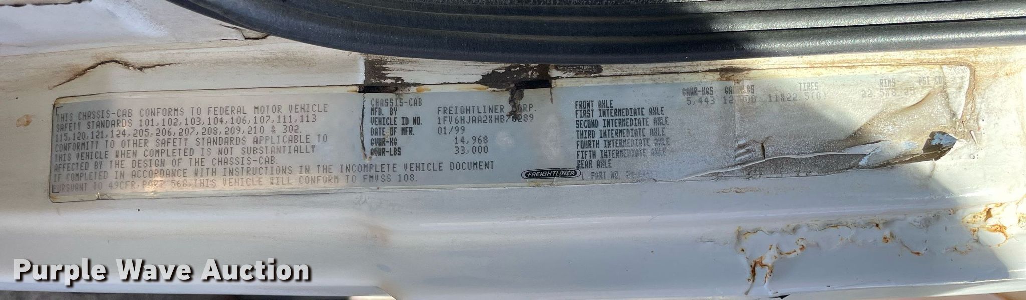 Purple Wave is selling a used Fertilizer or Feed Delivery Truck in Illinois. This item is a 1999 Freightliner FL70 feed delivery truck with the following: Miles: 132,636 on odometer, VIN: 1FV6HJAA2XHB76289, Unit #: 60