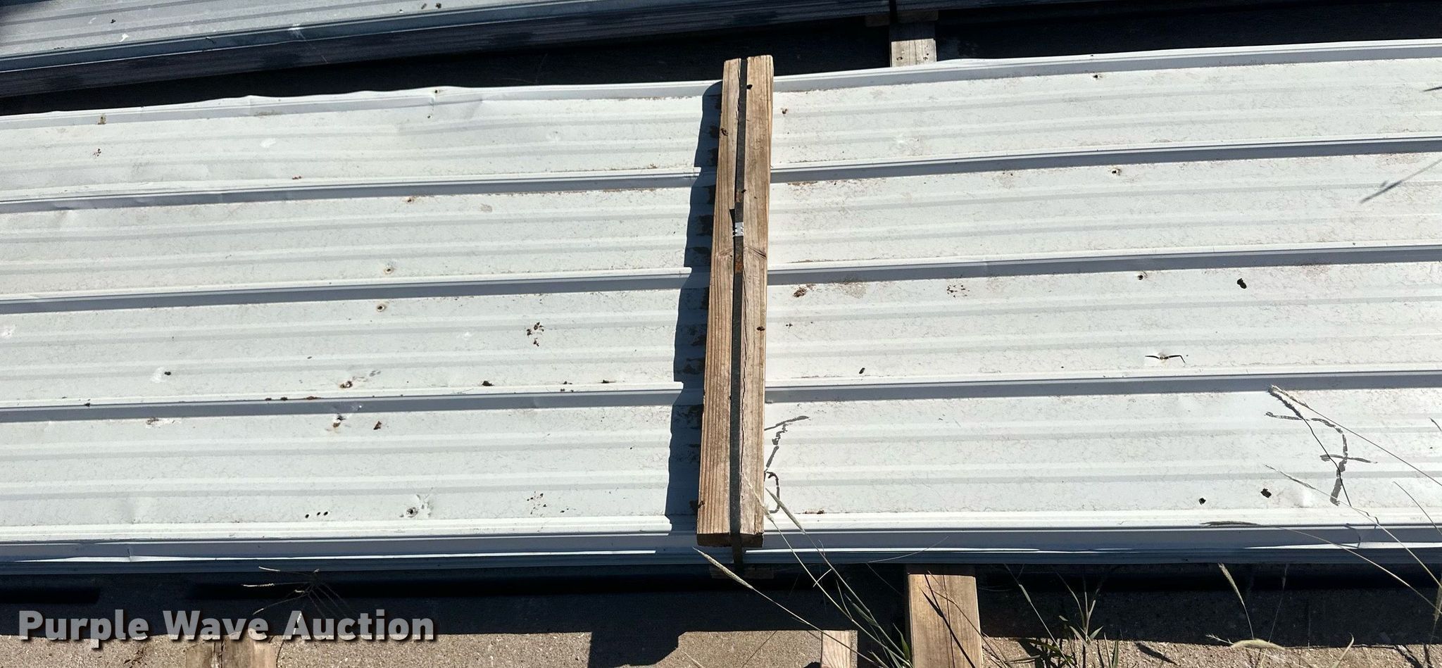 Purple Wave is selling a used Building Materials in Kansas. This item is a Approximately 35 sheets of metal siding/roofing with the following: 20' L x 36" W