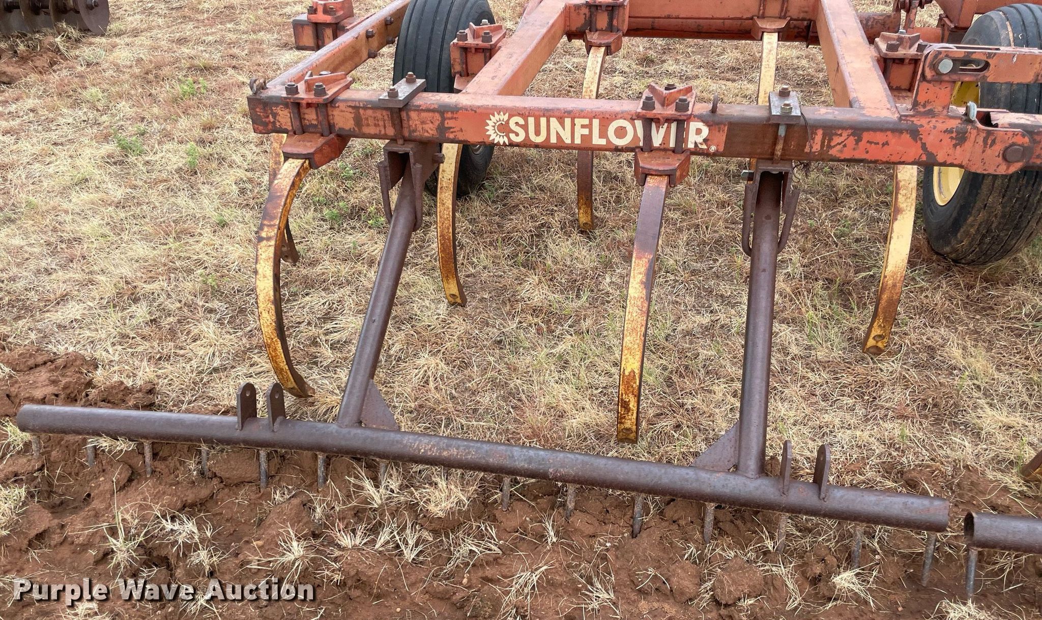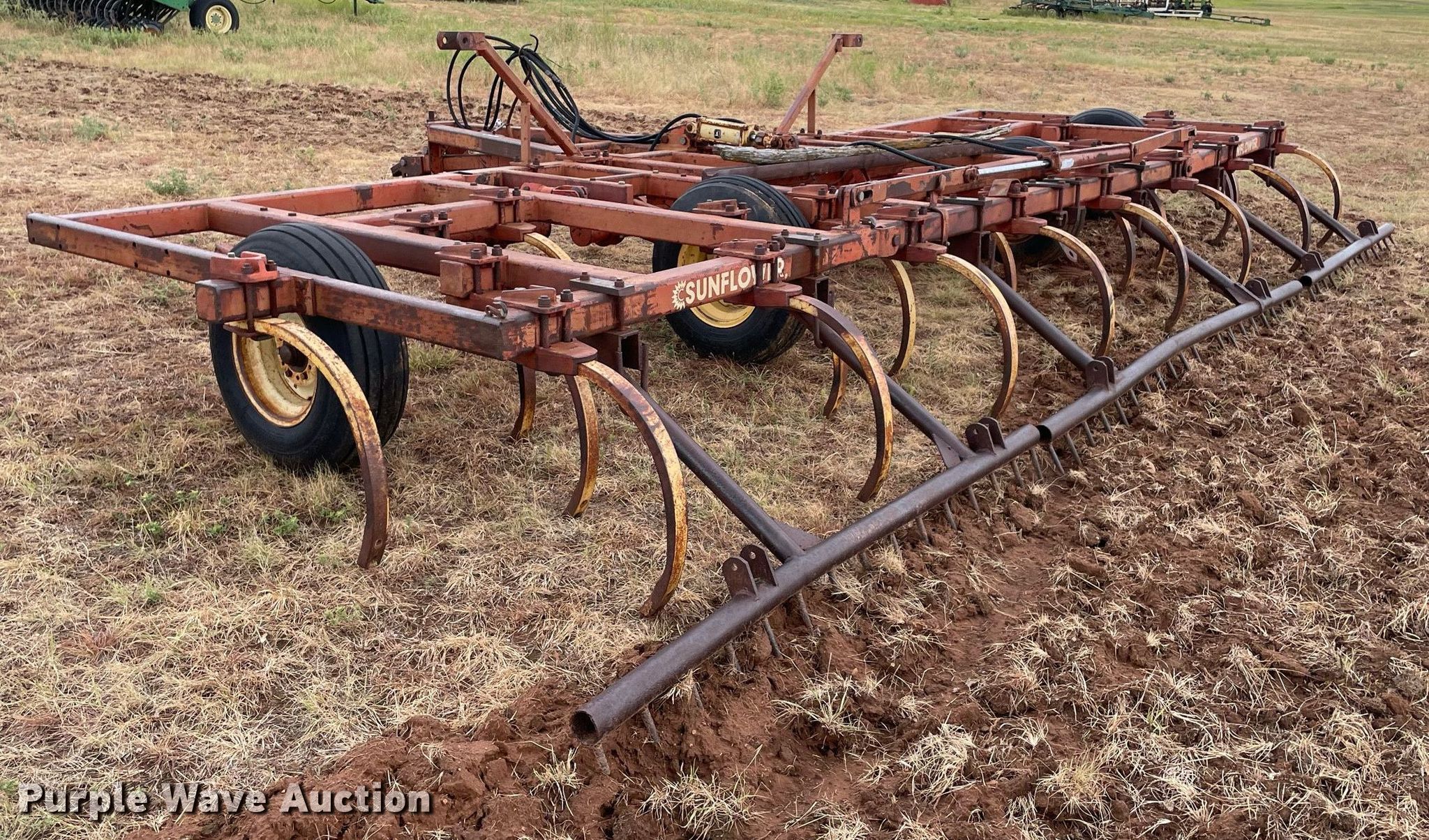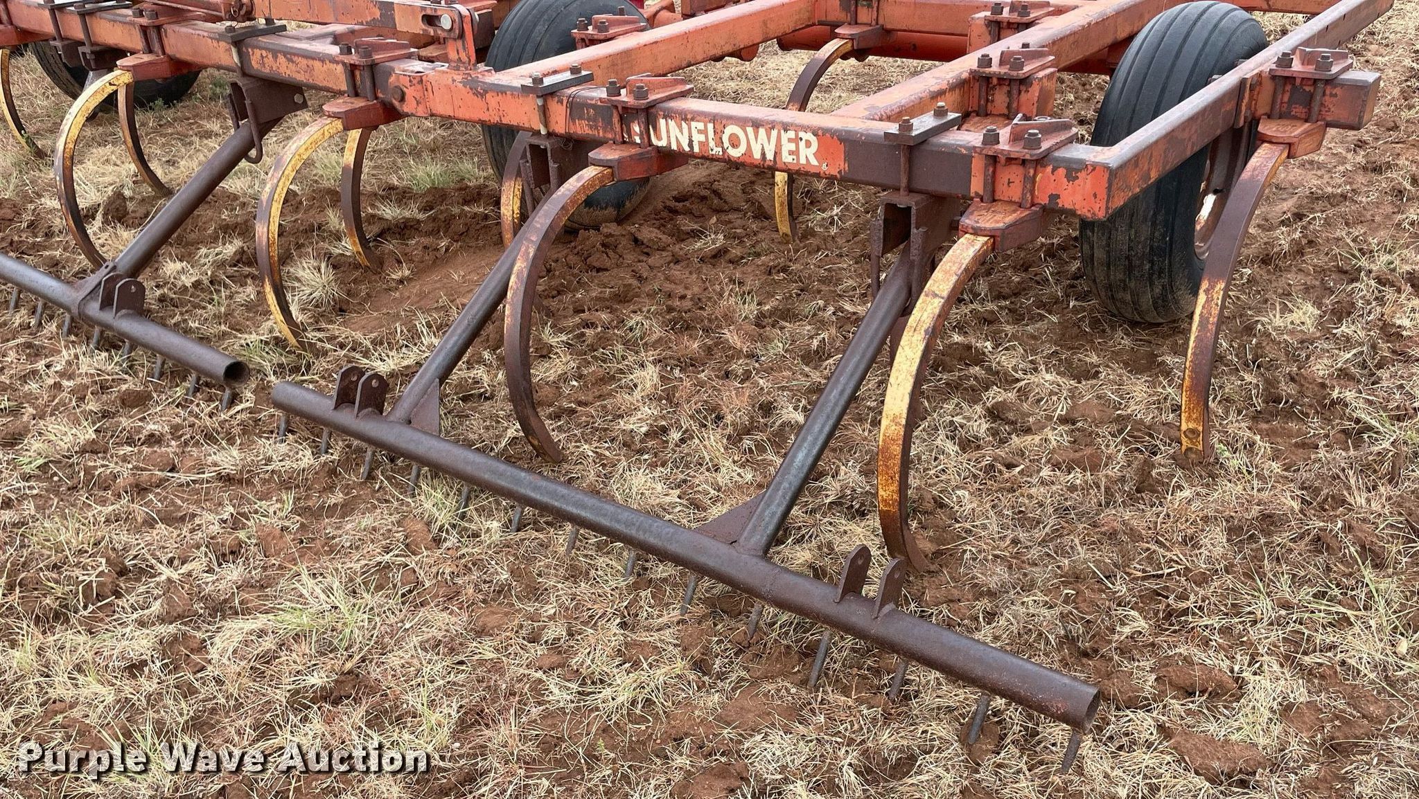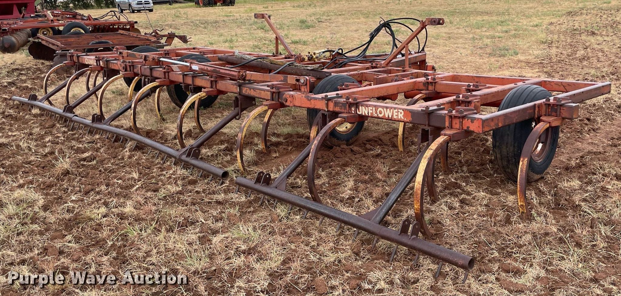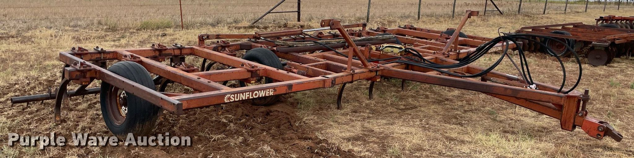 Sunflower 79FC-24 chisel. Overall width: 22', Serial: 0424. Features Shanks: 22, Operation Hydraulic lift, Hydraulic fold, Attachments Spike tooth harrow. Tires Tire size: 9.5L-15. 249648 E 1820 Rd. Chattanooga, OK 73528