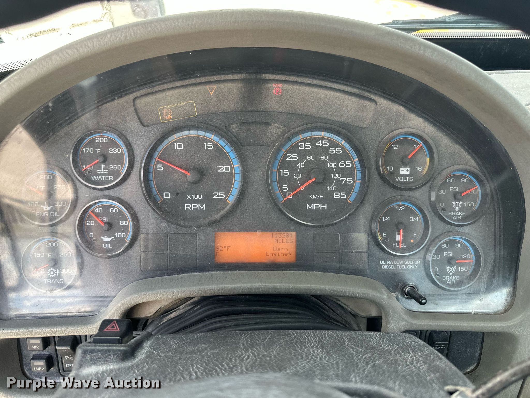 2011 International 8600 semi truck. Miles: 113,284 on odometer, Hours: 15,967 on meter, VIN: 1HSHXSHR8BJ335637, Unit #: 33. Engine International MaxxForce 11, Displacement: 10.5L, Cylinders: 6, Fuel type: Diesel. Transmission Manual. Chassis Axles: Tandem, Differential lock: Inter-axle, Suspension: Air Dump valves, Brakes: Air. Interior AC, Heat, Power windows, Power locks, Cruise control, Air ride cab. Features Fifth wheel type: Air operated, Sliding, Fuel tank: Dual. Tires Size: 295/75R22.5. Notes Dash warning indicator: Check engine. New Mexico title. Title distribution may be delayed up to 14 days from verification of funds. Mymar Terminal Service LLC. 1705 South Industrial Drive. Portales, NM 88130