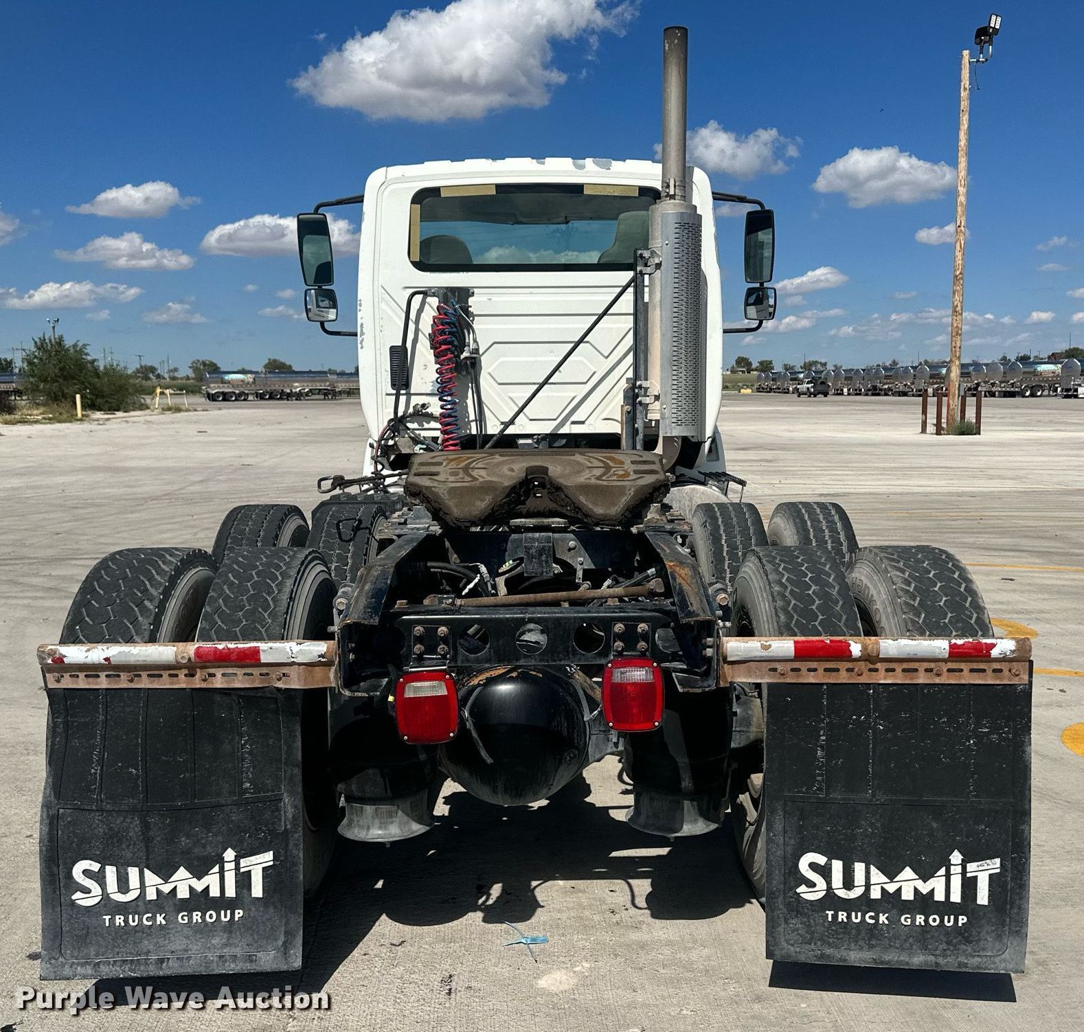 2005 International 8600 semi truck. Miles: 370,927 on odometer, Hours: 23,844 on meter, VIN: 1HSHXAHR95J005794, Unit #: 26. Engine Cummins ISM, Displacement: 10.8L, Cylinders: 6, Fuel type: Diesel, Engine brake. Transmission Manual, Speed: 10. Chassis Axles: Tandem, Differential lock: Inter-axle, Suspension: Air Dump valves, Brakes: Air. Interior AC, Heat, Cruise control, Air ride cab. Features Fifth wheel type: Air operated, Sliding, Fuel tank: Dual. Tires Size: 295/75R22.5. Notes Dash warning indicator: ABS. Mymar Terminal Service LLC. 1705 South Industrial Drive. Portales, NM 88130