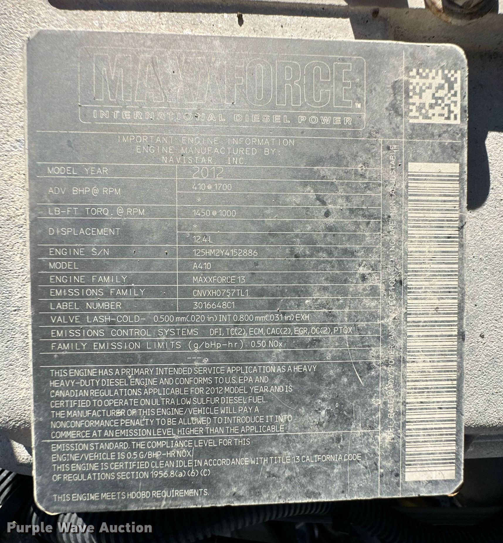 2013 International 8600 semi truck. Miles: Unknown, VIN: 1HSHXSJR6DJ258358, Unit #: 49. Engine International MaxxForce, Displacement: 12.4L, Cylinders: 6, Fuel type: Diesel, Engine brake. Transmission No transmission. Chassis Axles: Tandem, Differential lock: Inter-axle, Suspension: Air Dump valves, Brakes: Air. Interior AC, Heat, Power windows, Power locks, Cruise control, Air ride cab. Features Fifth wheel type: Air operated, Sliding, Fuel tank: Dual. Tires Size: 11R22.5. Notes Parts missing , Non-operational unit. New Mexico salvage title. Mileage has not been verified. Odometer discrepancy will be marked on the title. Title distribution may be delayed up to 14 days from verification of funds. Mymar Terminal Service LLC. 1705 South Industrial Drive. Portales, NM 88130