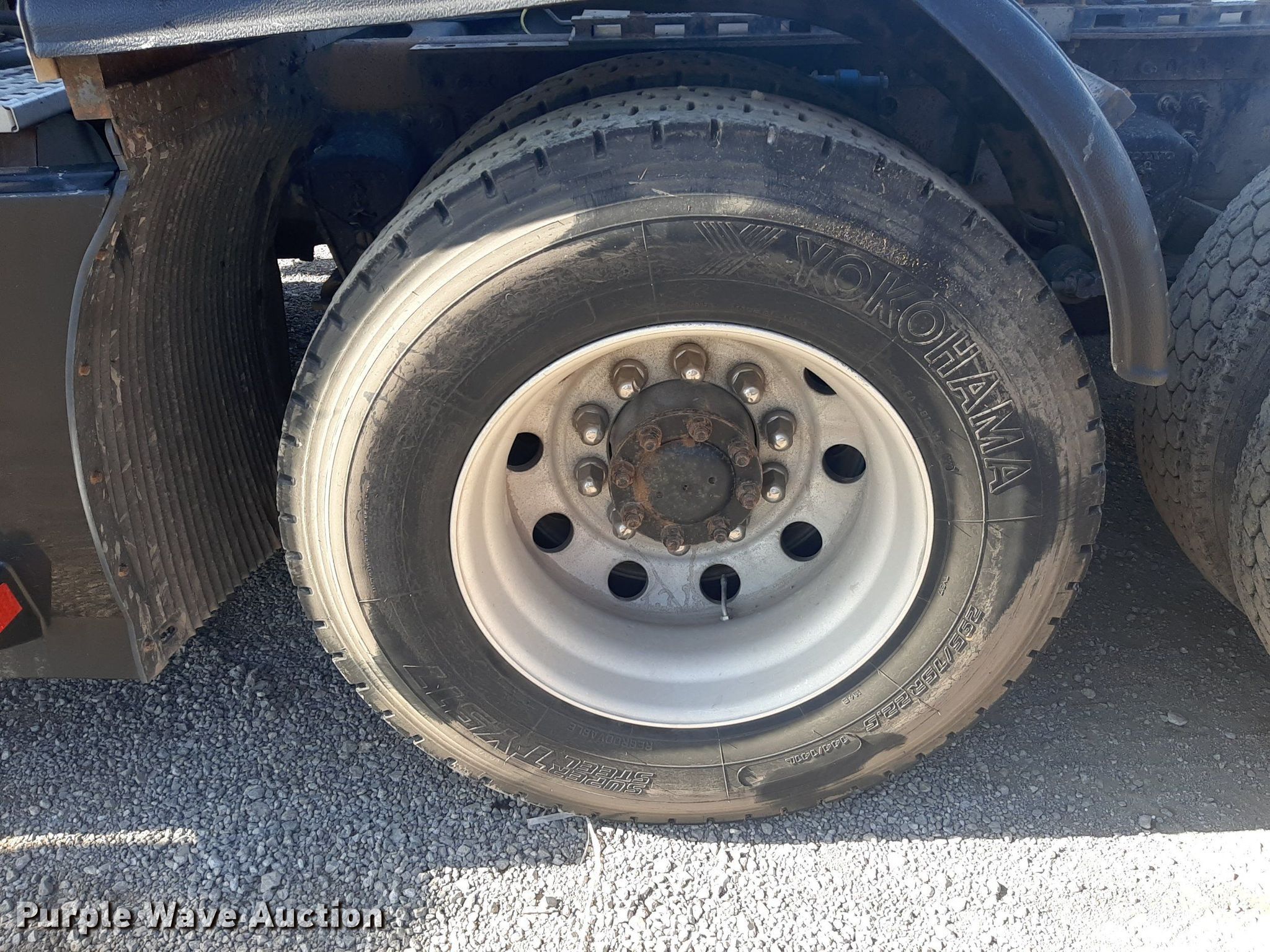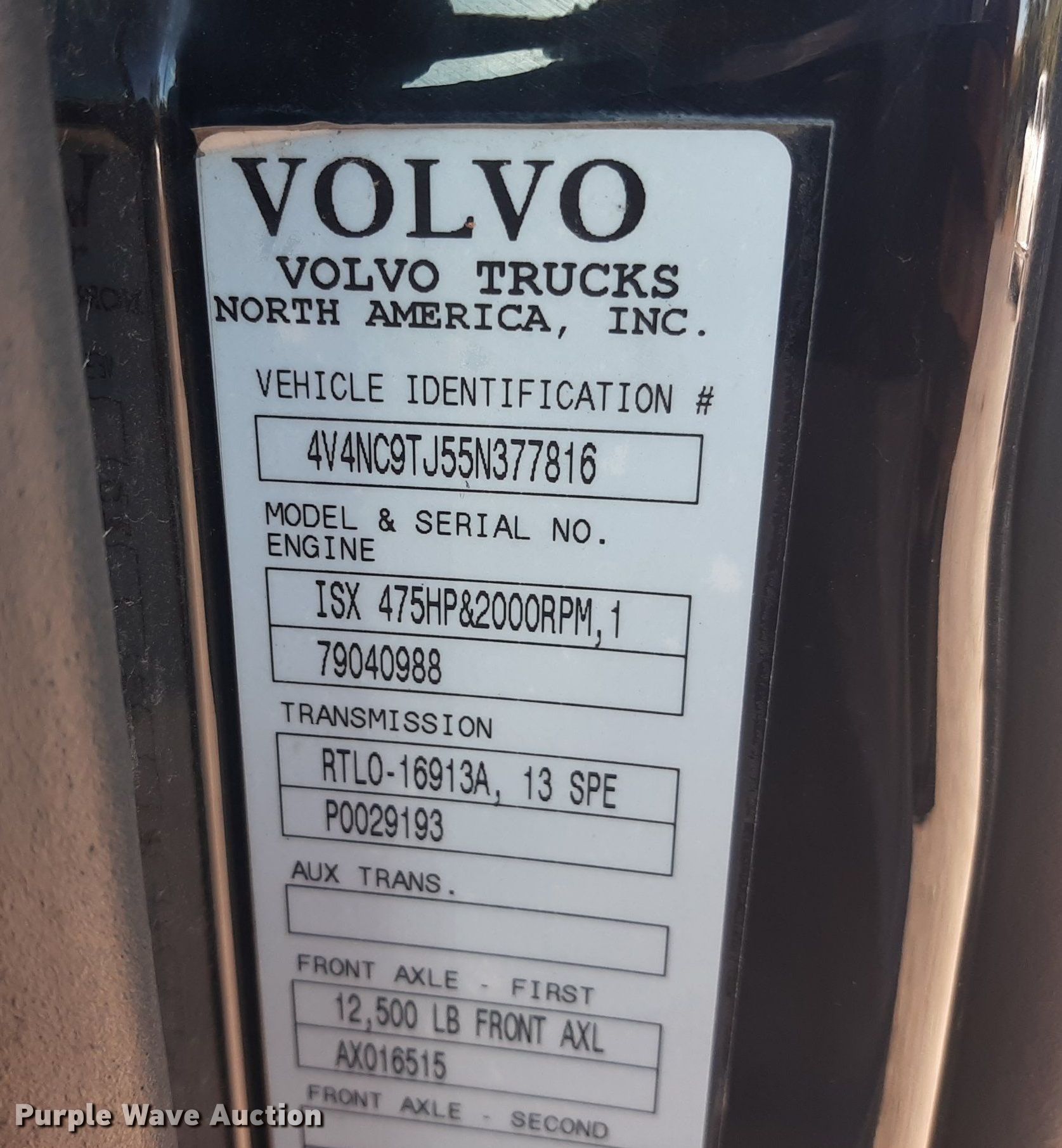 2005 Volvo VVN semi truck. Miles: 1,133,413 on odometer, VIN: 4V4NC9TJ55N377816. Engine Cummins , Cylinders: 6, Fuel type: Diesel. Transmission Manual, Speed: 13. Chassis Axles: Tandem, Differential lock: Inter-axle, Suspension: Air Dump valves, Brakes: Air, GVWR: 50,351 lbs FAWR: 12,350 lbs, IAWR: 19,000 lbs, RAWR: 19,000 lbs. Interior AC, Heat, Heated mirrors, Power windows, Power locks, Cruise control, Air ride cab, Sleeper Sleeper length: 52", Beds: Fold out sofa, Single, Refrigerator, Rear climate control. Features Deck plate: Aluminum, Fifth wheel type: Air operated, Sliding, Fuel tank: Dual. Tires Front: 295/75R22.5. Notes Dash warning indicator: Check engine. Oklahoma title. Title distribution may be delayed up to 14 days from verification of funds. D & E Supply, LLC. 4401 South 93rd East Avenue. Tulsa, OK 74145