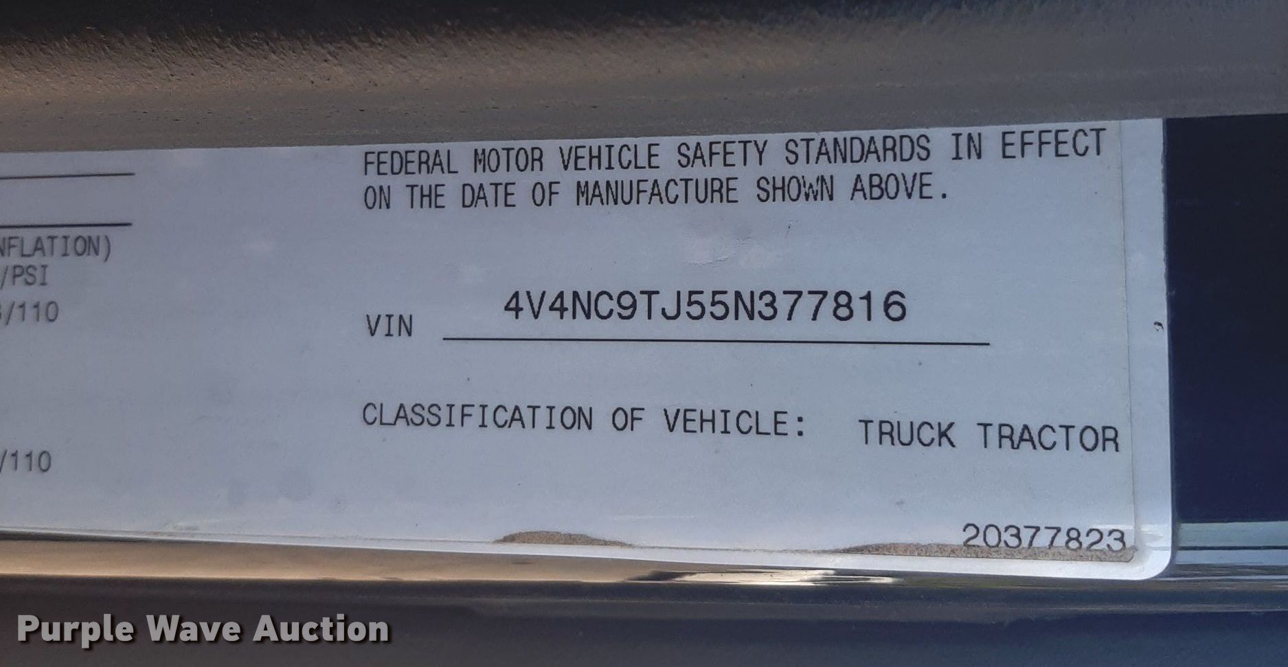 Purple Wave is selling a used Truck Tractor in Oklahoma. This item is a 2005 Volvo VVN semi truck with the following: Miles: 1,133,413 on odometer, VIN: 4V4NC9TJ55N377816