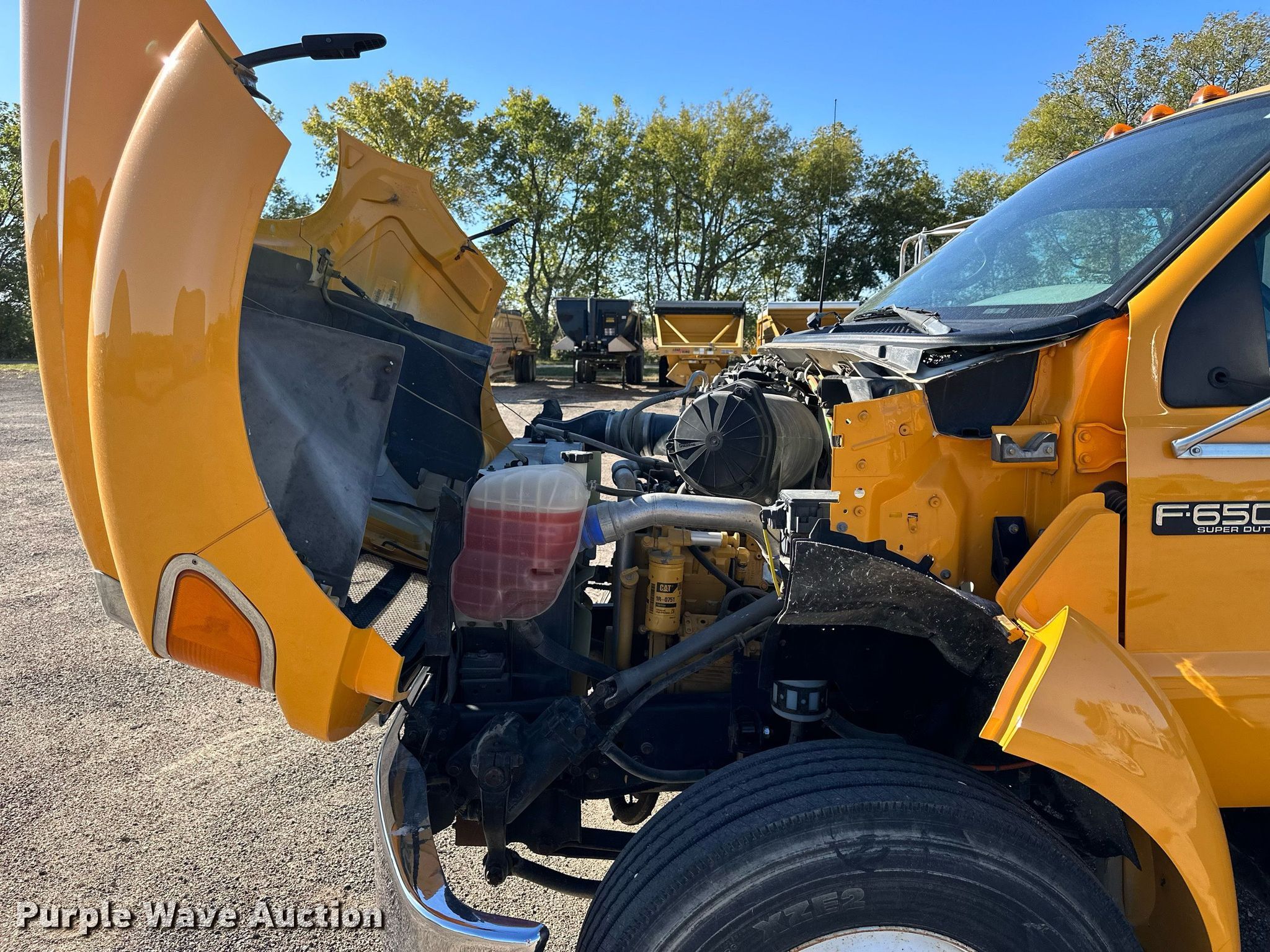 2005 Ford F650 Super Duty flatbed truck. Miles: 79,539 on odometer, VIN: 3FRWF65S75V126380. Engine Caterpillar C7 Acert, Serial: KAL64265, Displacement: 7.2L, Cylinders: 6, HP: 230, kW: 171.5. Transmission Manual, Speed: 6. Chassis Axles: Single, Suspension: Spring, Brakes: Air, GVWR: 26,000 lbs, Wheelbase: 401". Interior AC, Heat, Cruise control, Brake controller. Features Flatbed Reading, 150" L x 96" W. Tires Size: 11R22.5. Kansas title. Title distribution may be delayed up to 14 days from verification of funds. Midwest Concrete Materials, Inc.. 2099 South Manhattan Avenue. Manhattan, KS 66502