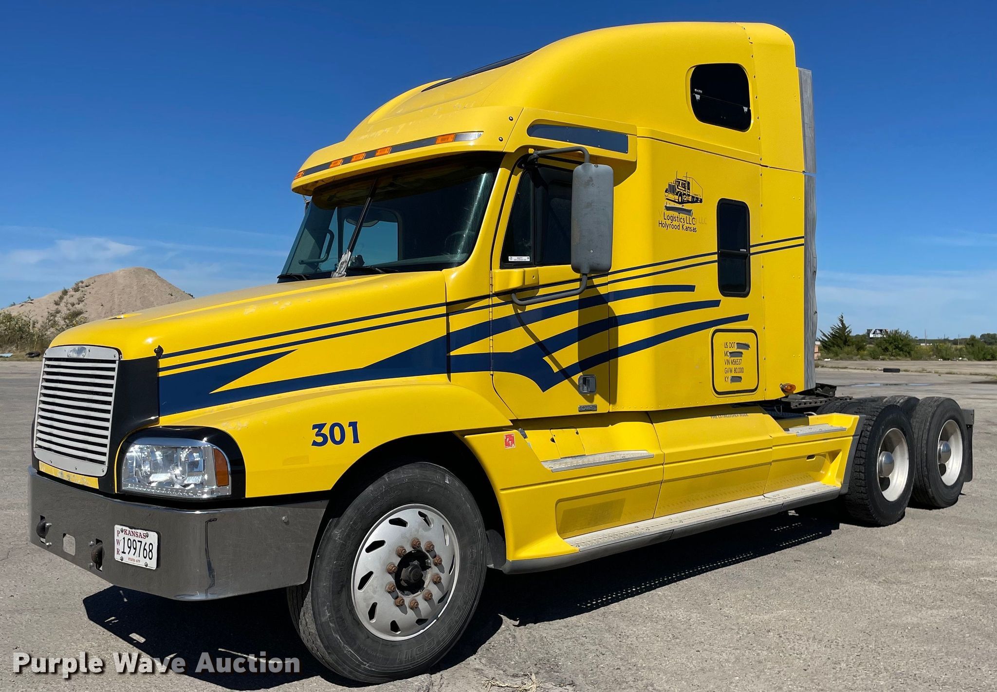 Purple Wave is selling a used Truck Tractor in Kansas. This item is a 2004 Freightliner Century Class S/T semi truck with the following: Miles: 535,158 on odometer, VIN: 1FUJBBCVX4LM56537, Unit #: 301