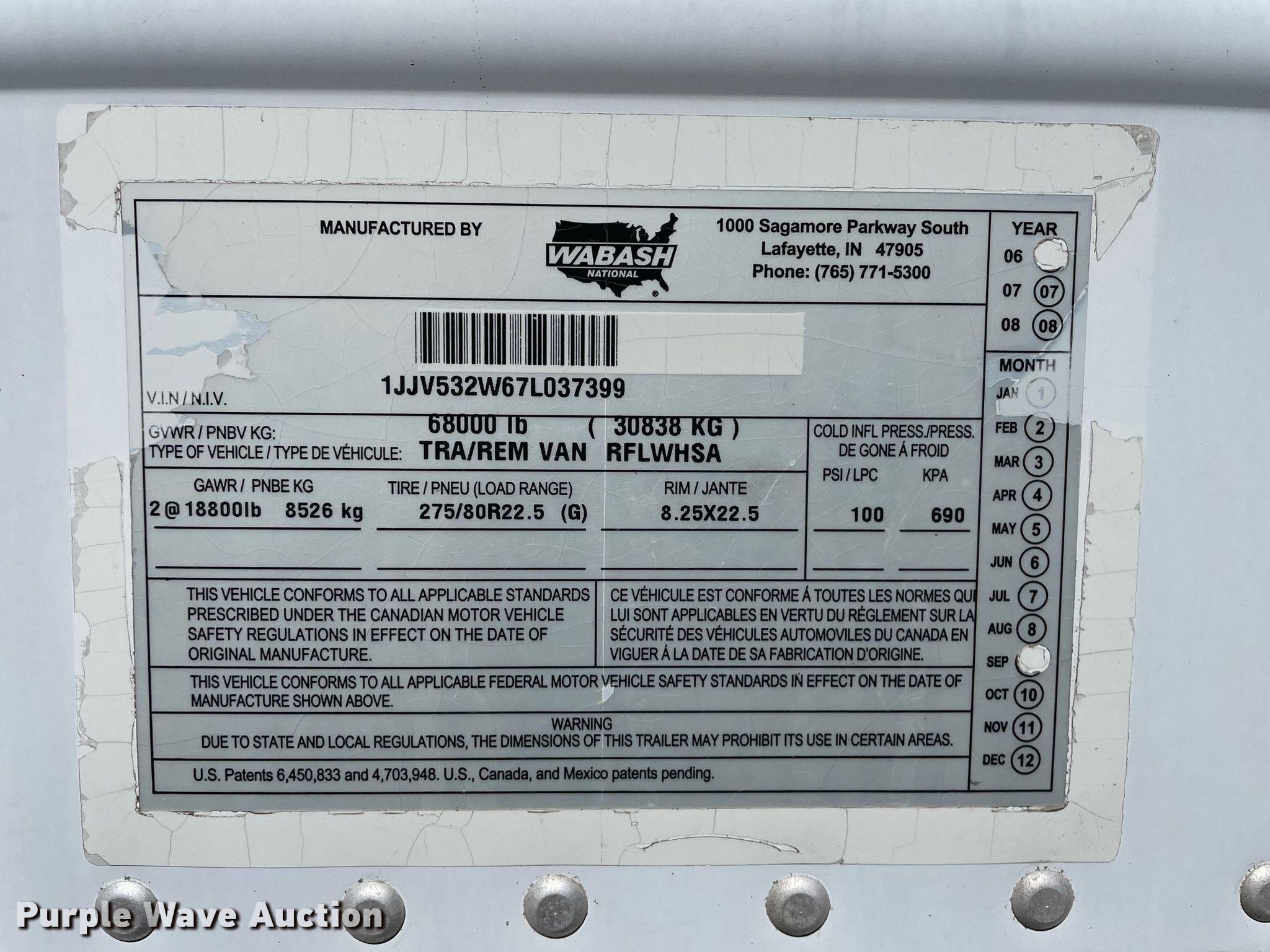 Purple Wave is selling a used Refrigerated Van Trailer in Kansas. This item is a 2007 Wabash refrigerated van trailer with the following: VIN: 1JJV532W67L037399