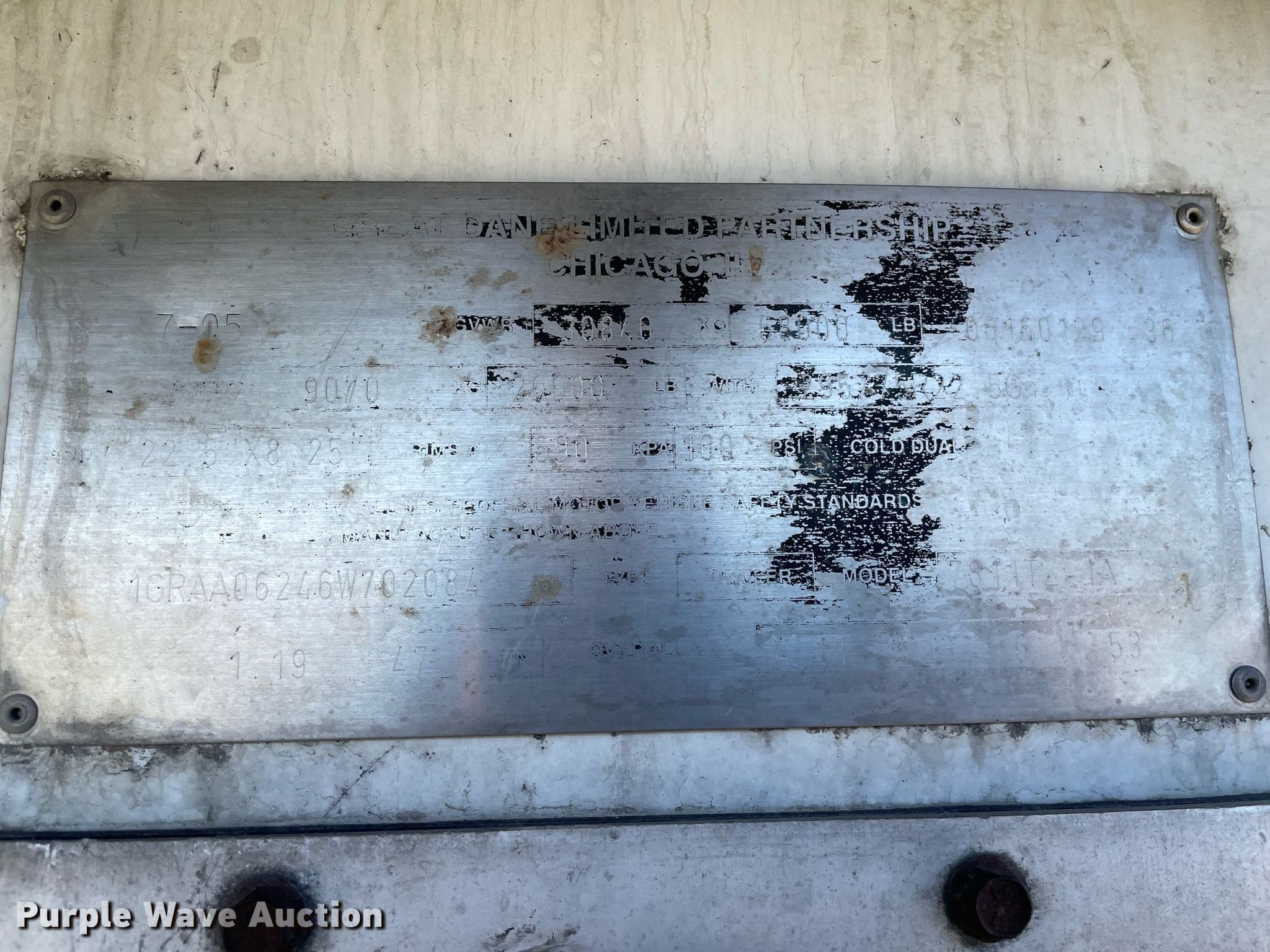 2006 Grate Dane 7811TZ 1A refrigerated van trailer. VIN: 1GRAA06246W702084. Dimensions Overall: 55' L x 102" W, Body: 53' L x 102" W, Interior height: 104". Features Deck type: Aluminum, E-track rail system, Refrigeration unit Carrier Transicold Ultima XTC X series, Hours: 22,152, Serial: 231. Chassis Landing gear: Dual, Suspension: Air, Brakes: Air, Axles: Tandem, Sliding, GVWR: 68,000 lbs. Tires Aluminum wheels, Size: 295/75R22.5. Notes Refrigeration unit issue, compressor oil leak. Kansas electronic title. Title has a lien that will be released following the close of the auction. A paper title will be printed once the lien is released. Title distribution may be delayed up to 30 days from verification of funds. Vessey Trucking. 800 E Pacific. Salina, KS 67401