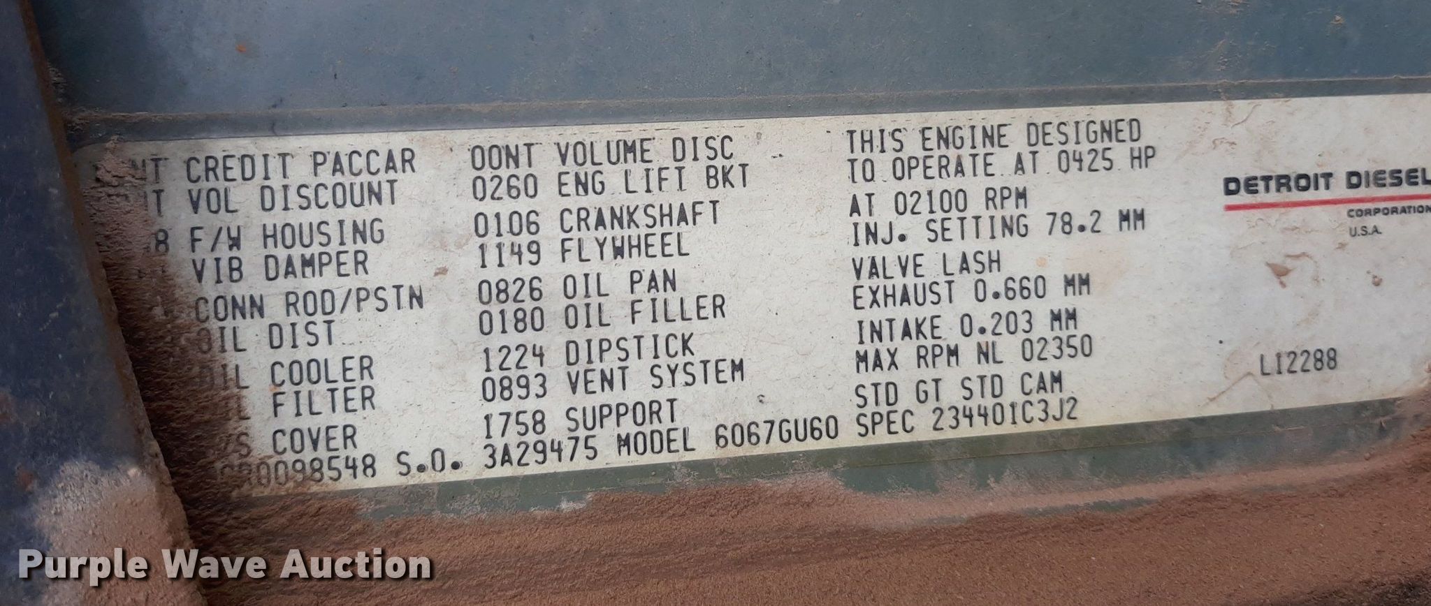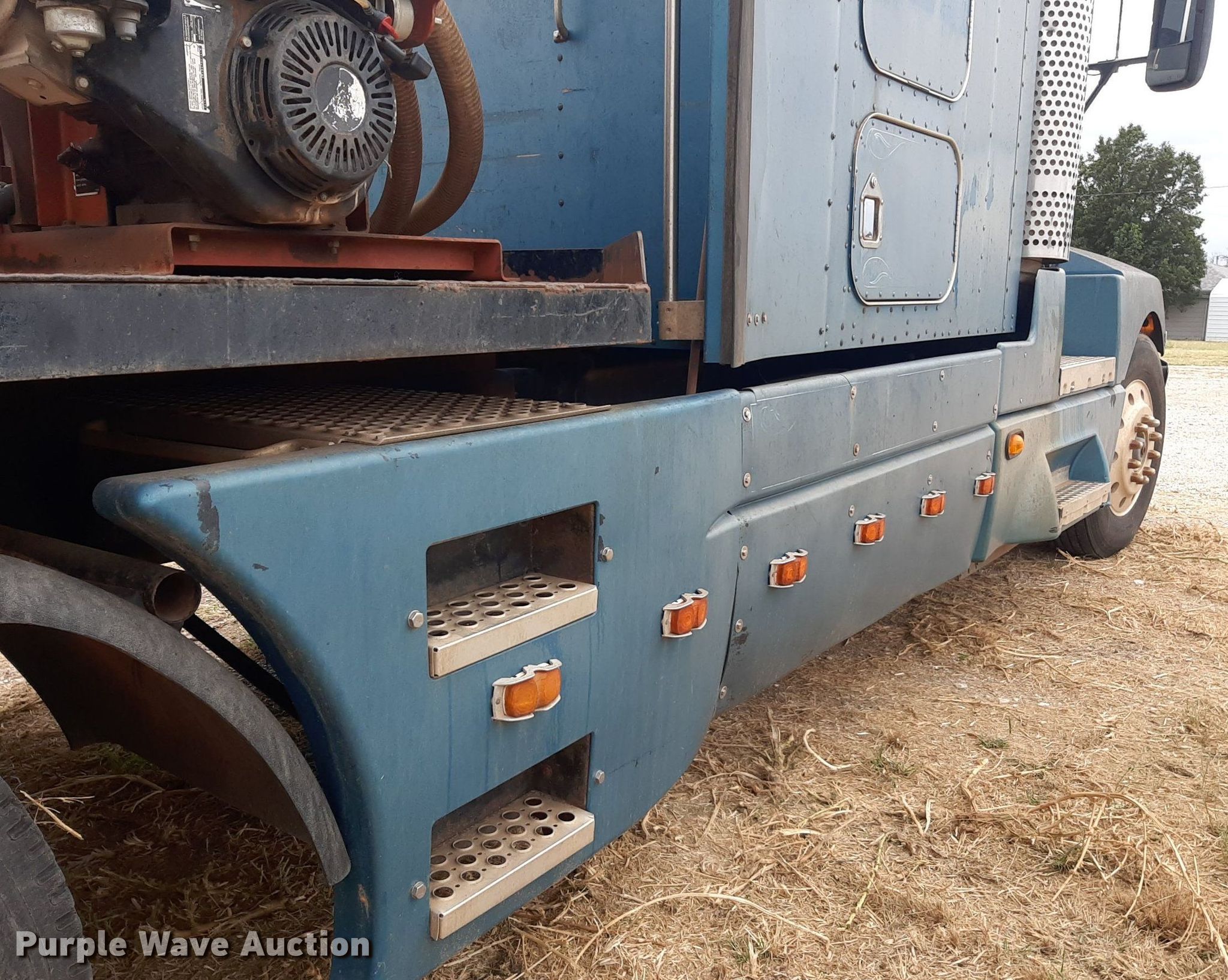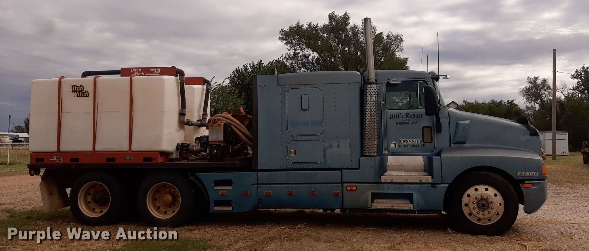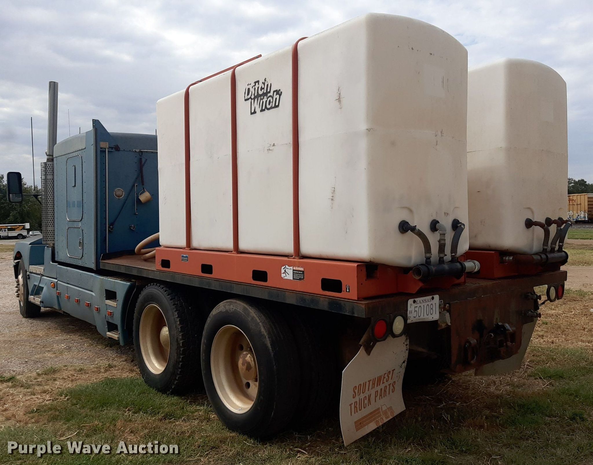 1993 Kenworth T600B flatbed truck. Miles: 722,778 on odometer, VIN: 1XKADR9X5PS592740. Engine Detroit Diesel, Displacement: 12.7L, Cylinders: 6, Fuel type: Diesel. Transmission Manual, Speed: 10. Chassis Axles: Tandem, Differential lock: Inter-axle, Suspension: Air, Brakes: Air, GVWR: 52,000 lbs FAWR: 12,000 lbs, IAWR: 20,000 lbs, RAWR: 20,000 lbs. Interior AC, Heat, Heated mirrors, Cruise control, Sleeper Sleeper length: 64", Beds: Single, Rear climate control. Features Fuel tank: Dual, Ditch Witch FM13 mud mixer, (2) 1,000 gallon poly tanks, MP pump, Honda gas engine. Tires Size: 285/75R24.5. Kansas title. Vehicle has an E-Title in the State of Kansas. A paper title will be distributed to the buyer within 30 days from verification of funds. Bill's Repair. 410 Hopkins St. Kiowa, KS 67070