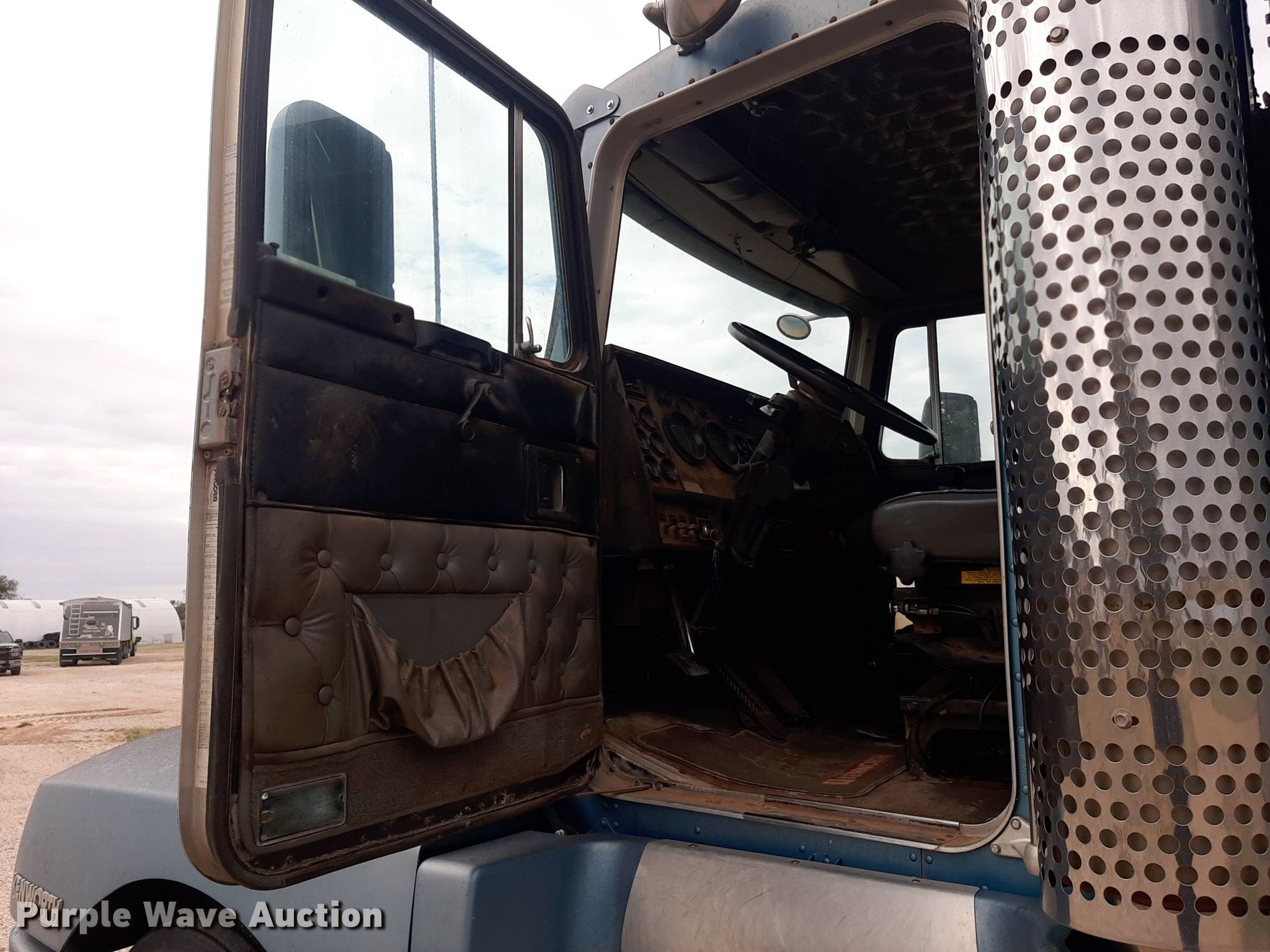 This 1993 Kenworth T600B flatbed truck will sell to the highest bidder regardless of price.