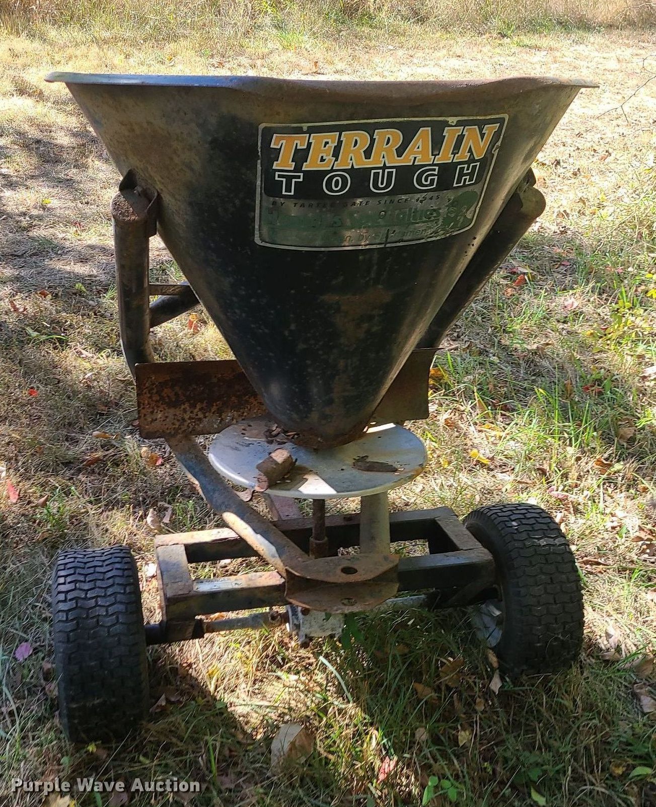 Land Pride DH1560 tandem disk. Hitch: 3 point, Disk diameter: 18", Width: 5'. Applicator Hitch: 3 point, Capacity: 110 gallon. Terrain Tough towable spreader Unknown operating condition. Gladwin Machinery. 16203 Northwest Mo-45. Kansas City, MO 64152