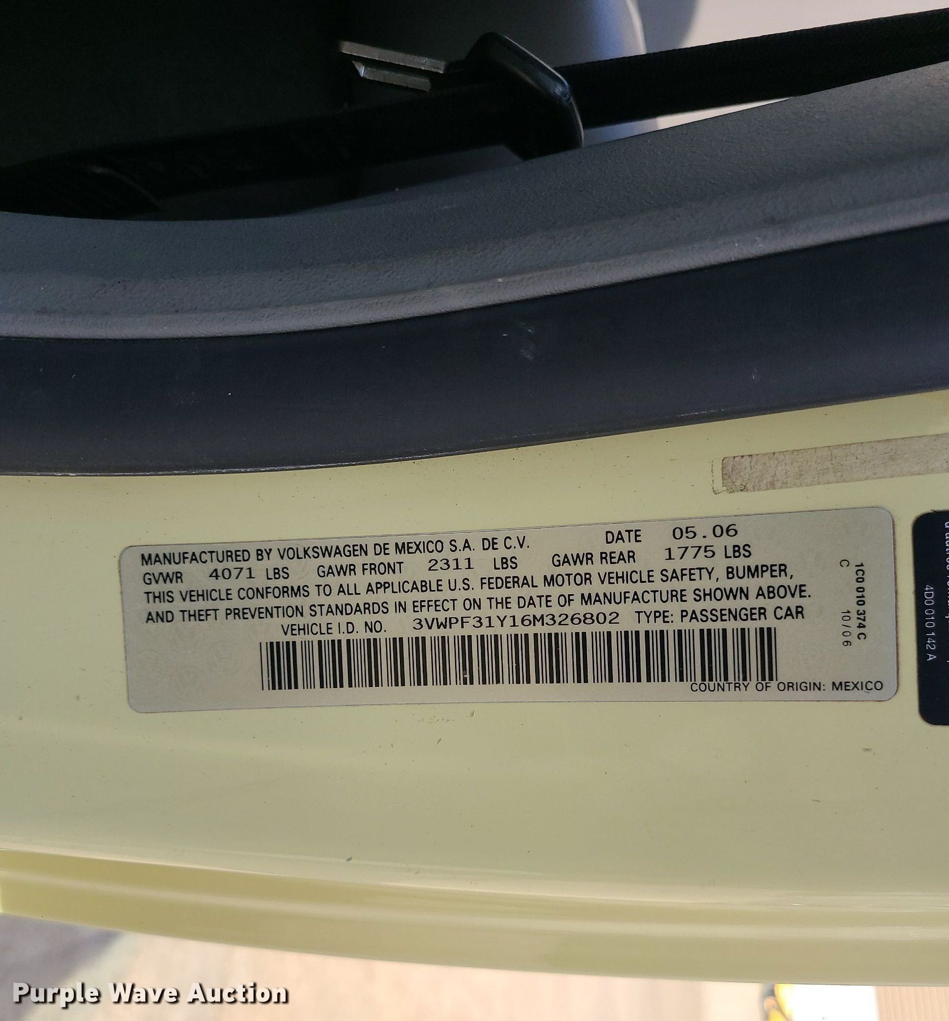 - VIN: 3VWPF31Y16M326802