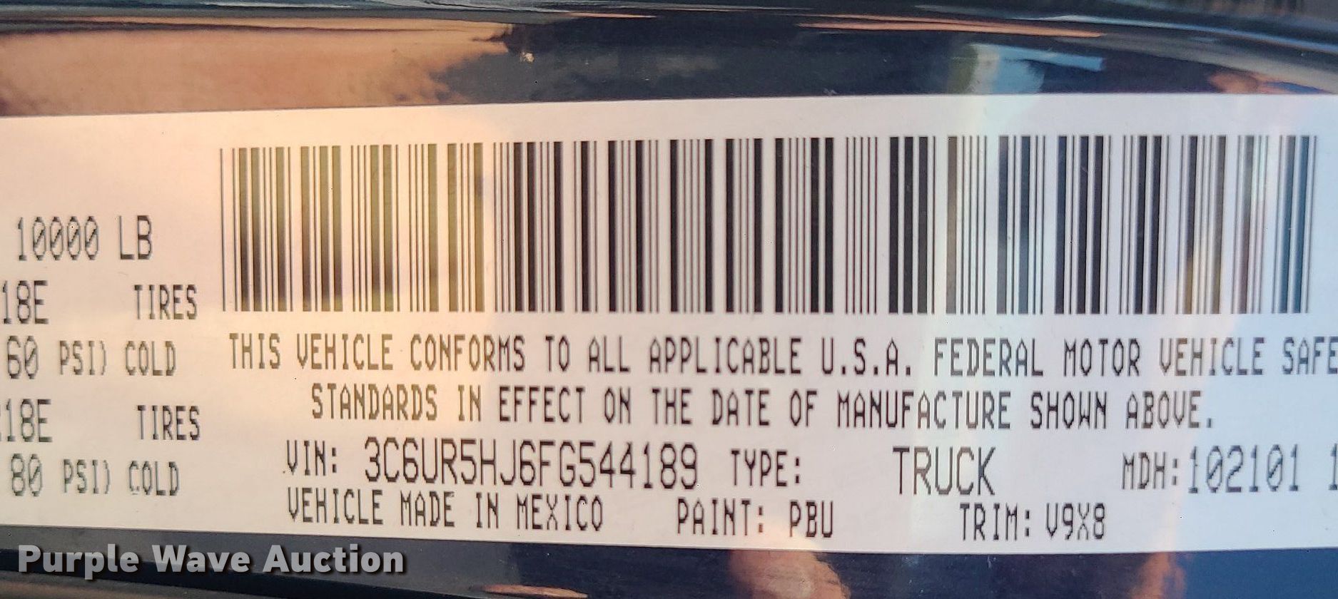 - VIN: 3C6UR5HJ6FG544189