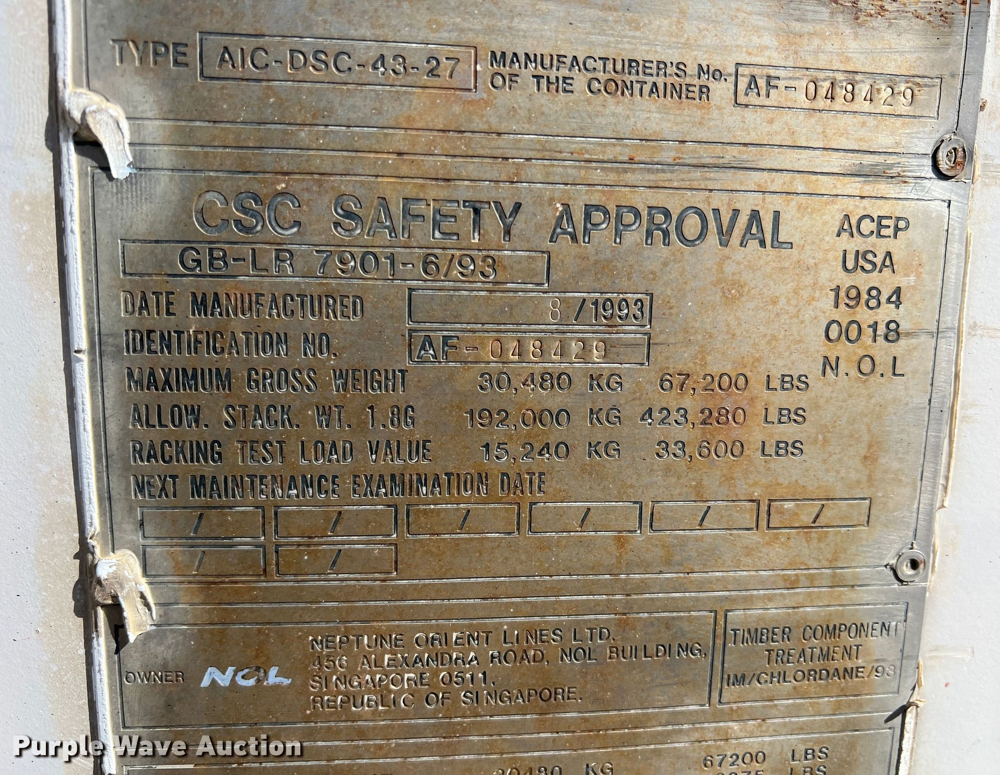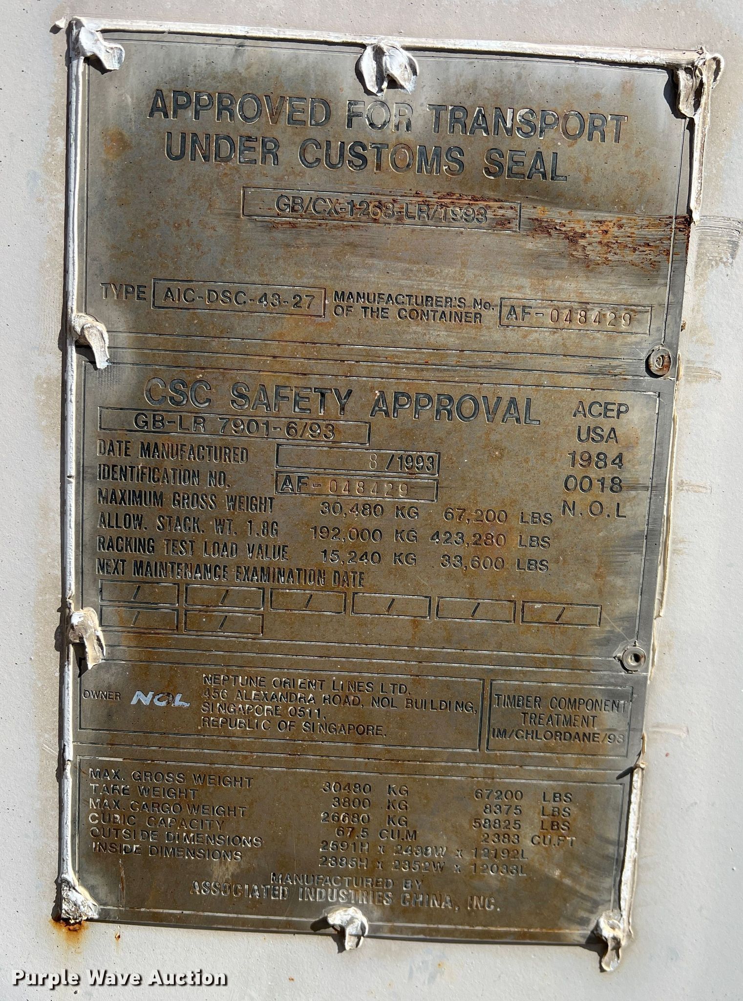 Purple Wave is selling a used Storage or Shipping Container in Texas. This item is a Associated Industries shipping container with the following: 40' L x 8' W, Contents not included