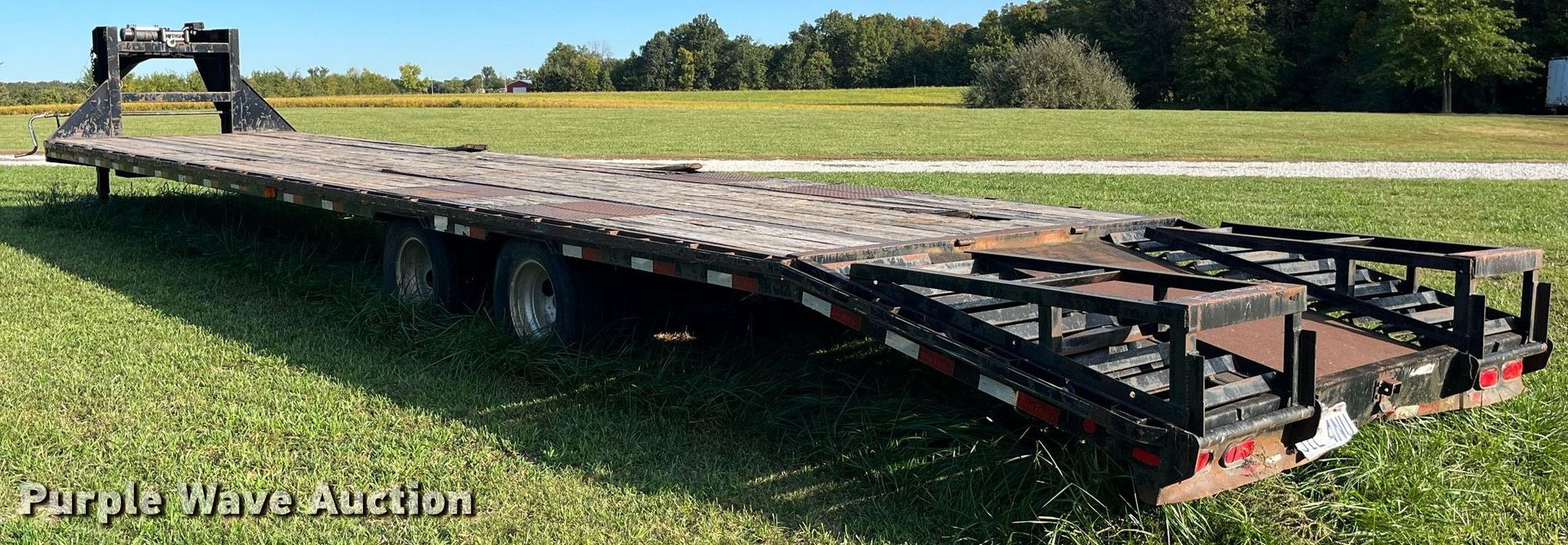 2013 Big Tex equipment trailer. VIN: 16VGX3520D2664058. Dimensions Overall: 48' 10" L x 102" W, Deck: 35' L x 97.5" W, Tail length: 5', Ramps: Manual Length: 51". Features Deck type: Wood, Winch Badland ZXR12000, Capacity: 12,000 lbs, Hydraulic controls: Remote control. Chassis Hitch: Gooseneck, Ball hitch: 2 5/16", Landing gear: Dual, Suspension: Spring, Brakes: Electric, Axles: Spread, GVWR: 22,500 lbs, GAWR: 10,000 lbs. Tires Steel wheels, Size: ST235/85R16. Missouri title. Title distribution may be delayed up to 14 days from verification of funds. 3290 County Rd 1865. Jacksonville, MO 65260