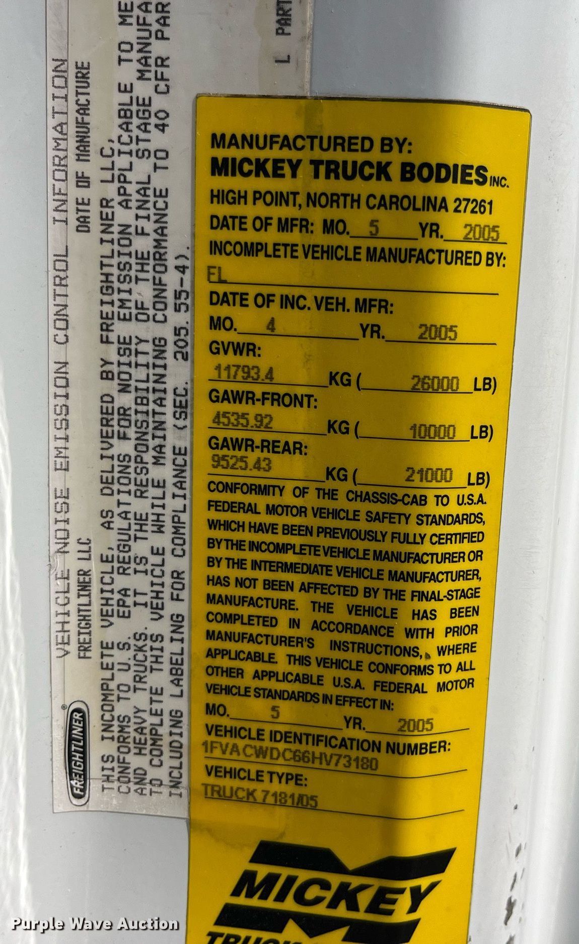 2006 Freightliner Business Class M2 delivery truck. Miles: 347,822 on odometer, VIN: 1FVACWDC66HV73180. Engine Caterpillar C7, Serial: SAP07719, Displacement: 7.2L, Cylinders: 6, Fuel type: Diesel. Transmission Manual, Speed: 6. Chassis Axles: Single, Suspension: Spring, Brakes: Air, GVWR: 26,000 lbs. Interior AC, Heat, Cruise control. Features Box bed Mickey A0-A, Serial: 7181/05, 262" L x 97" W x 90" H. Tires Size: 11R22.5. Missouri title. Title distribution may be delayed up to 14 days from verification of funds. Sportsmans Hut. 22141 State Highway W. Ridgeway, MO 64481