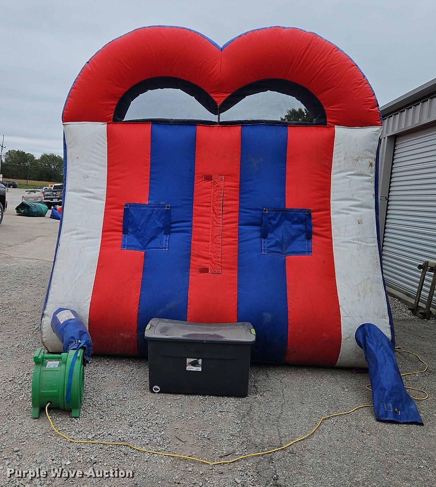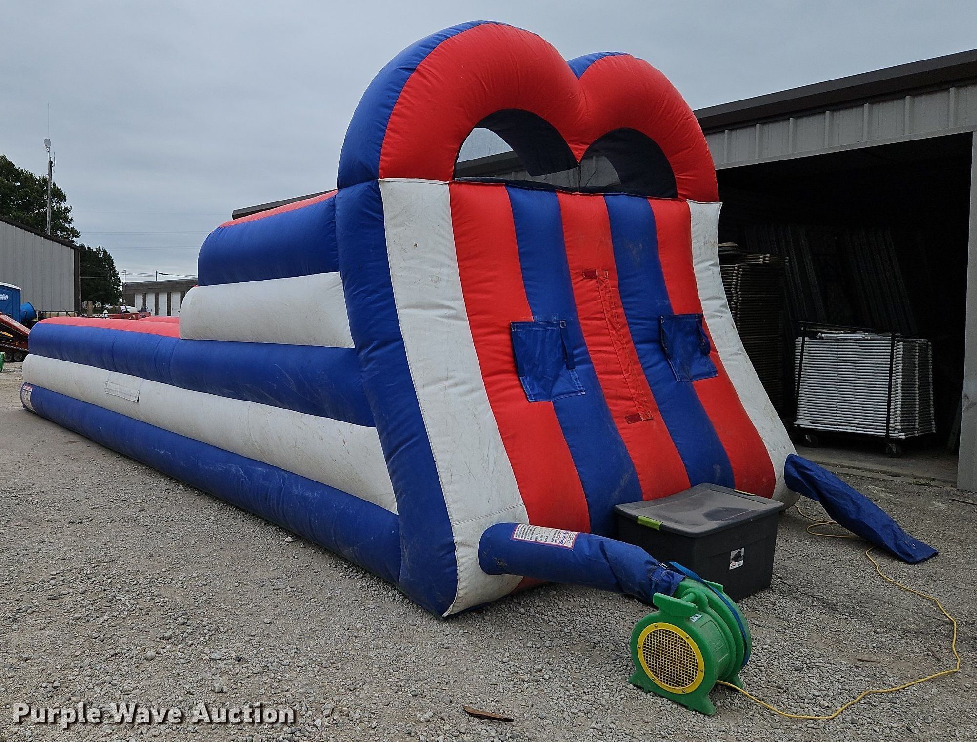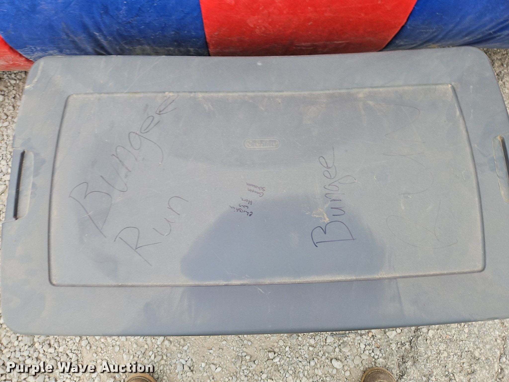 Purple Wave is selling a used Sporting Goods in Kansas. This item is a Space Walk bungee run with the following: 32' L x 10' W x 11' H, Fan included