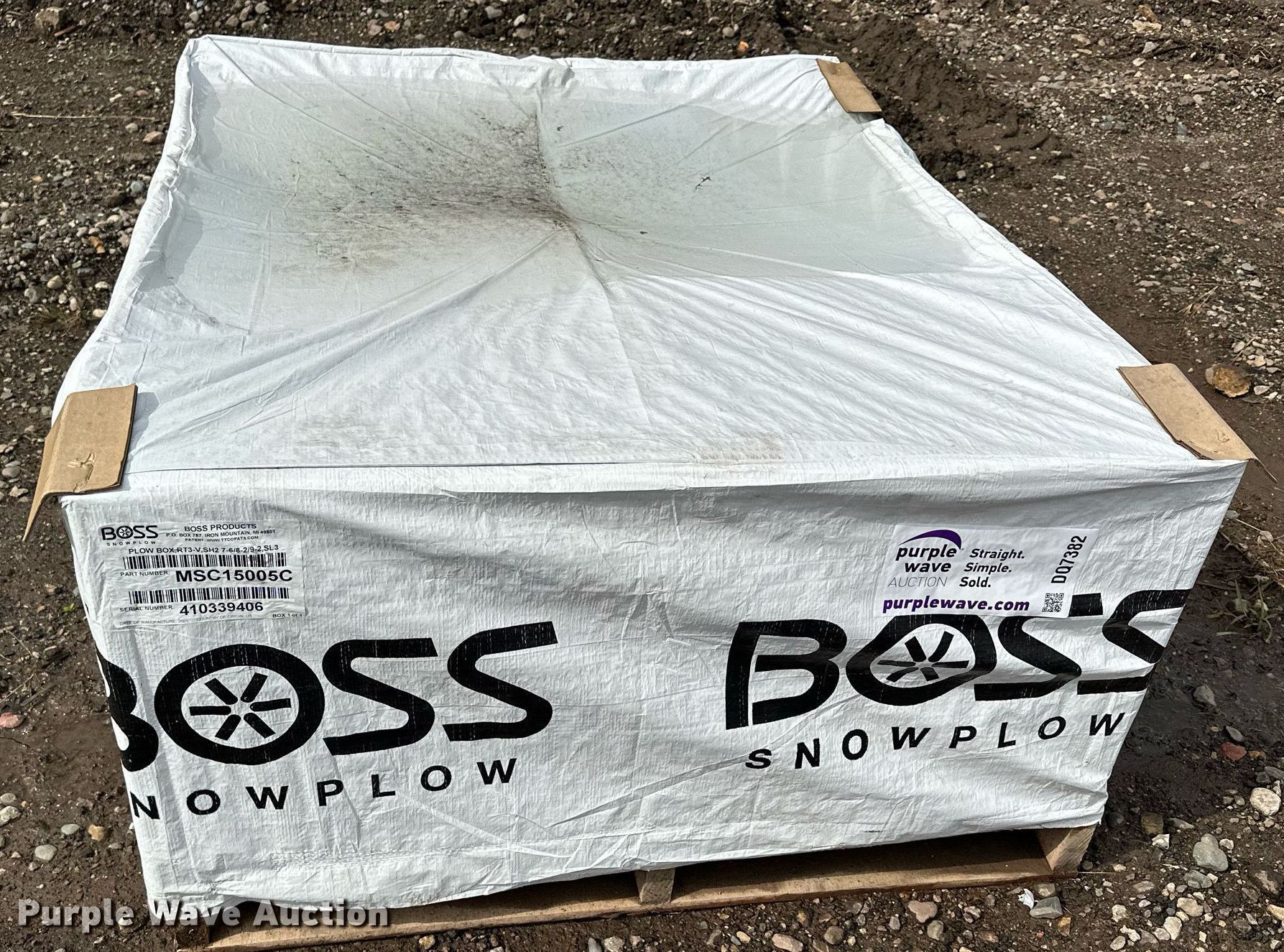 Purple Wave is selling a used Automotive Parts or Acces. in Minnesota. This item is a Boss Power V-XT snow plow with the following: Serial: 410339406, Width: 8' 2", Wiring harness, Fits 2017 and Ford F250, F350, Mounting bracket, Unused