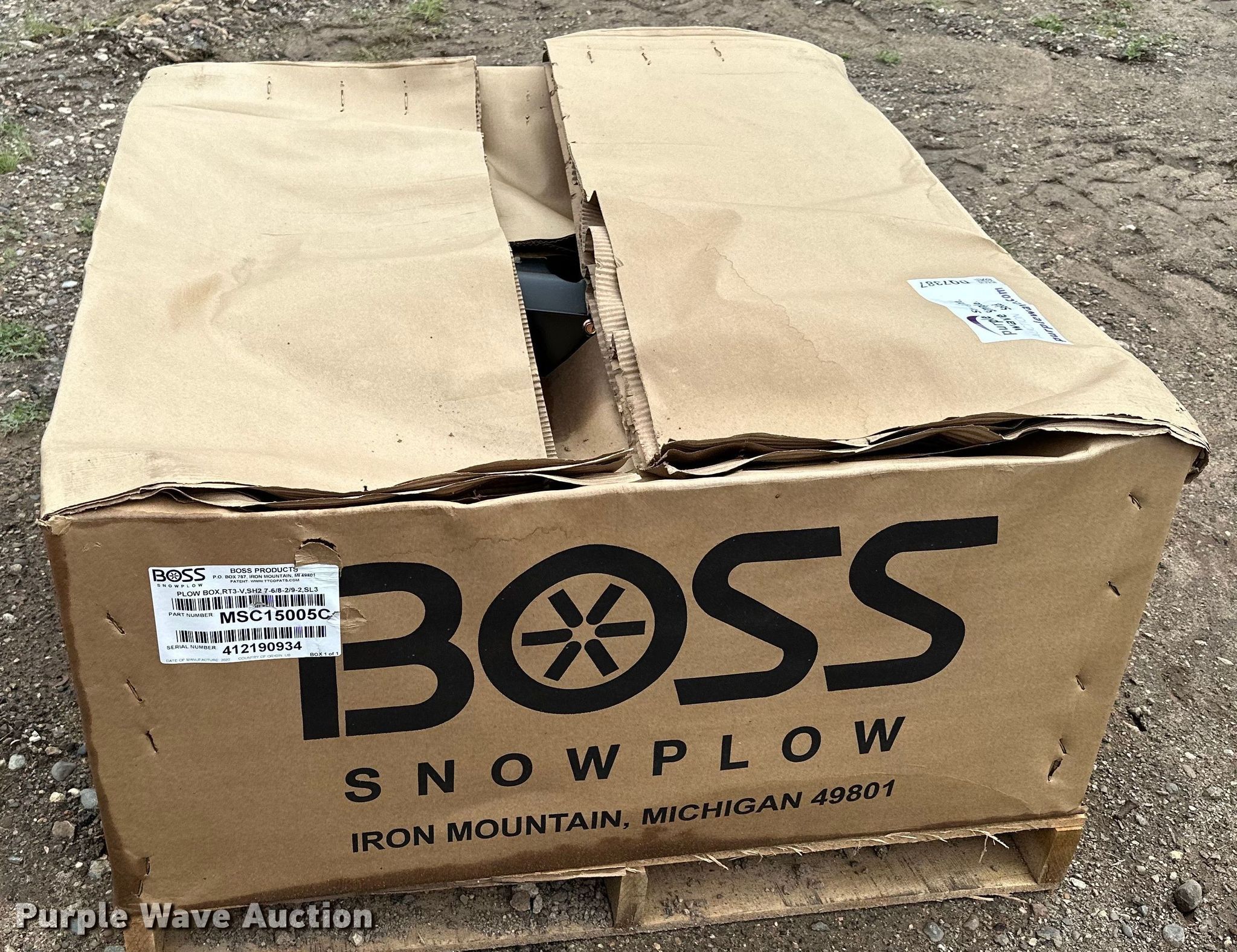 Purple Wave is selling a used Automotive Parts or Acces. in Minnesota. This item is a Boss Power V-XT snow plow with the following: Serial: 412190934, Width: 9' 2", Wiring harness, Fits 2019 and newer Dodge 2500 pickup trucks, Mounting bracket, Unused