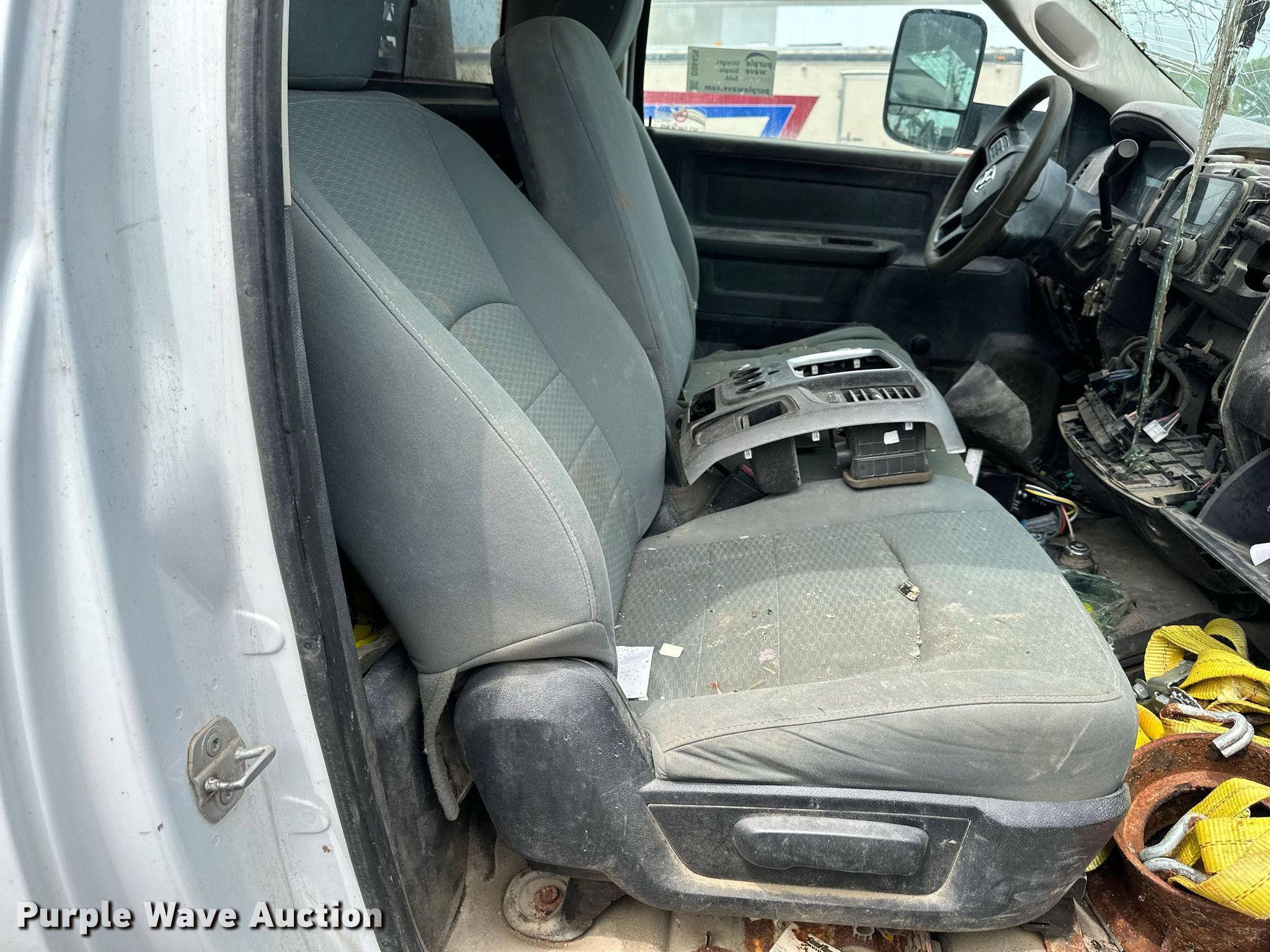 2013 Dodge Ram 3500 flatbed pickup truck. Miles: 105,409 on odometer, VIN: 3C7WRTAL0DG590358, Unit #: 1028. Engine Displacement: 6.7L L6 OHV, Cylinders: 6, Fuel type: Diesel. Transmission Automatic, Four wheel drive. Interior AC, Heat, Cruise control. Features Flatbed 9' L x 90" W. Tires Size: 235/80R17. Notes Windshield chipped or cracked, Dead battery, Roll over damage, Parts may be missing, Non-operational unit. Sunflower Paving Inc./RD Johnson Excavating. 4123 Northeast Seward Avenue. Topeka, KS 66616